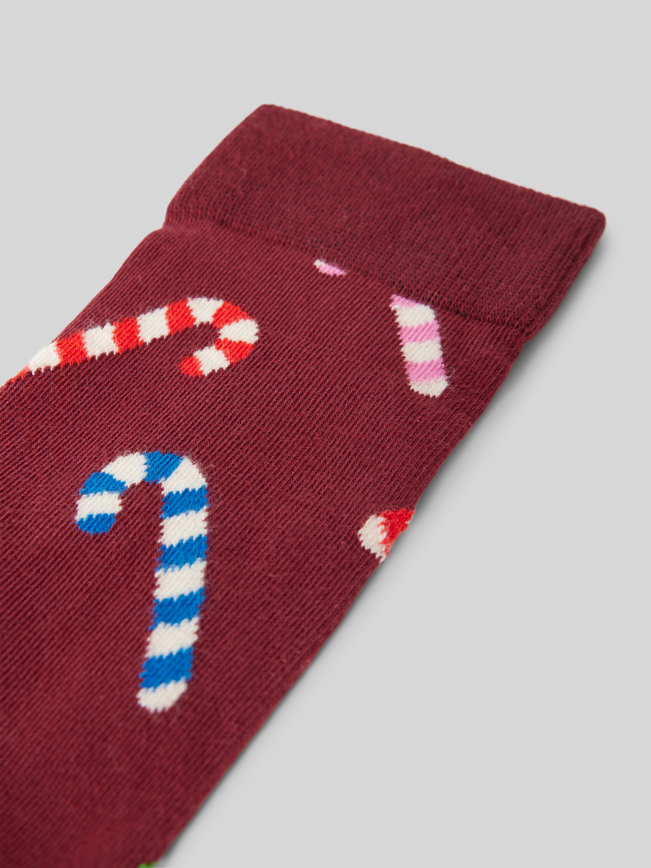 Happy SocksSocken mit Motiv-Stitchings Modell 'Candy Cane' in bordeaux