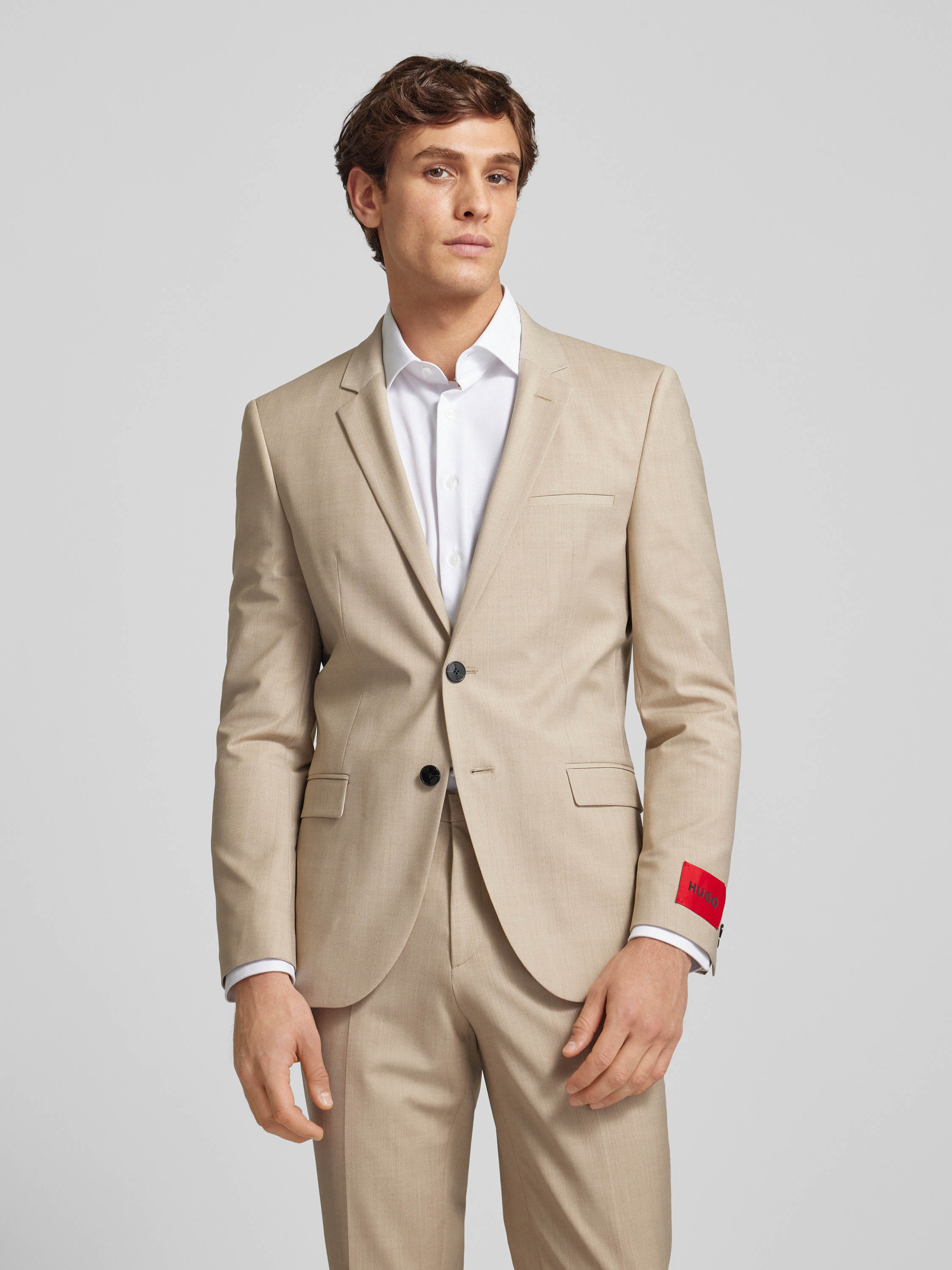 Das HUGO Sakko verbindet klassischen Stil mit einem modernen Touch, dank seines Material-Mixes mit Schurwoll-Anteil. Der Regular Fit und der Reverskragen ergänzen das unifarbene Design, während praktische Pattentaschen und eine Brustleistentasche funktionalen Nutzen bieten. Ein dezentes Label-Patch rundet das Erscheinungsbild ab.