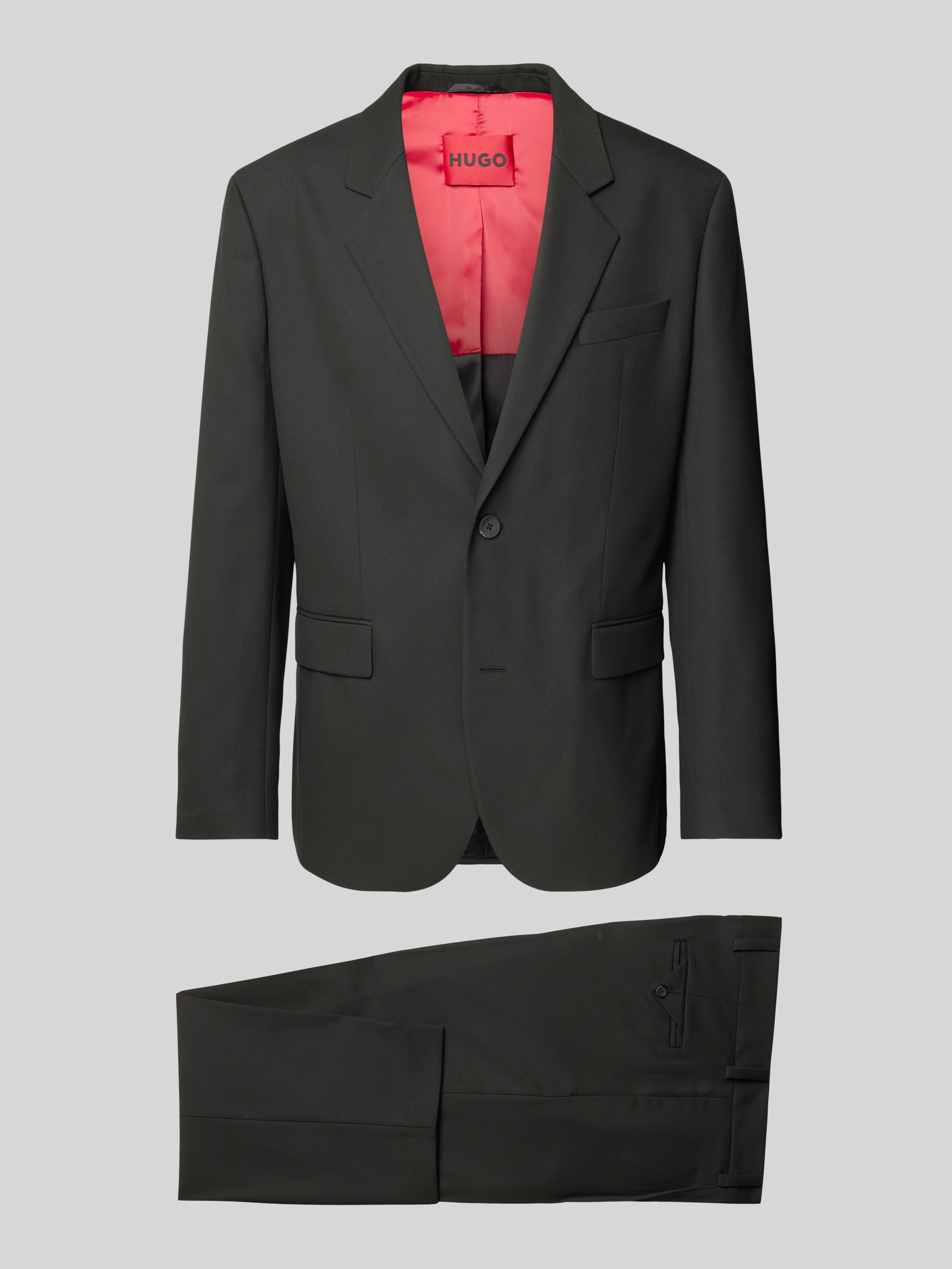Der Herren Anzug von HUGO, Modell 'Karlo', verbindet zeitlosen Stil mit Komfort. Der Regular Fit und der Material-Mix mit Viskose-Anteil sorgen für angenehmes Tragegefühl, während der Reverskragen und die Pattentaschen dem Look eine elegante Note verleihen. Praktische Details, wie die vielfältigen Taschen, bieten funktionalen Mehrwert.