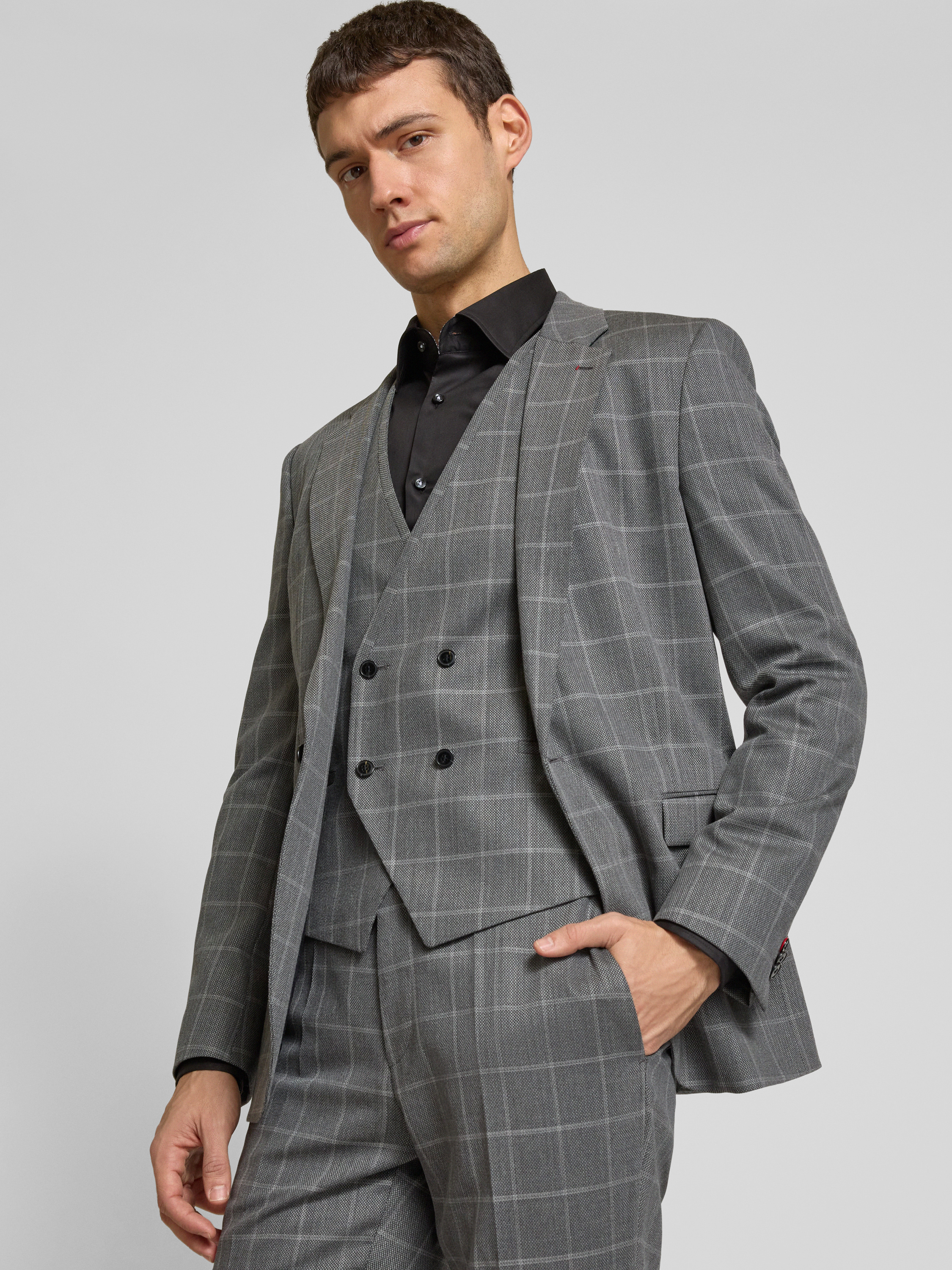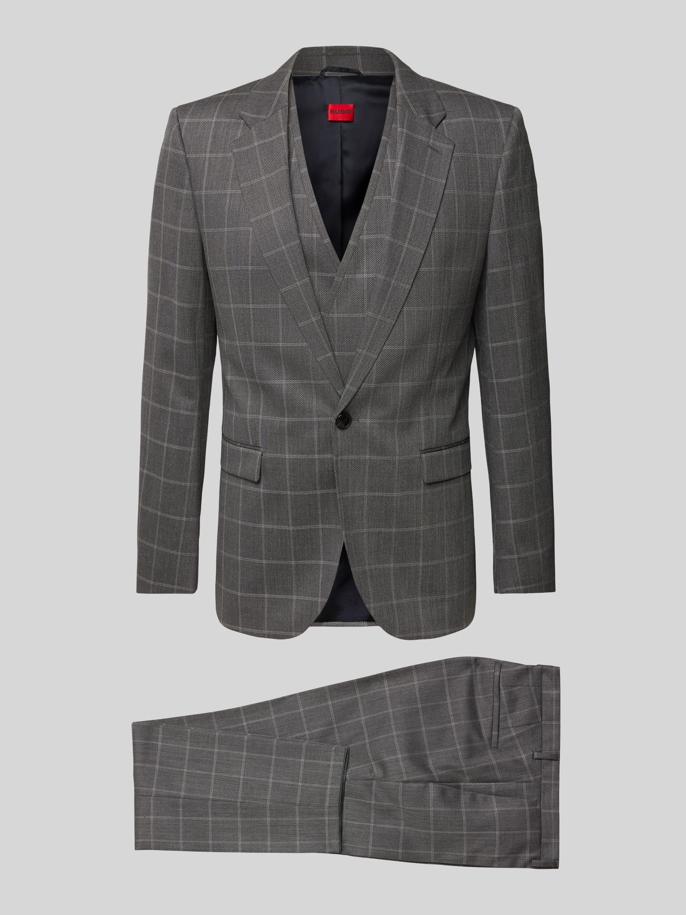 Der HUGO Anzug 'Arti/Hesten' kombiniert Eleganz mit Komfort durch einen hochwertigen Schurwoll-Mix. Der gerade Schnitt des Sakkos mit Reverskragen sorgt für eine klassische Silhouette, während die Weste zusätzliche Vielseitigkeit bietet. Ideal für formelle Anlässe und berufliche Herausforderungen.