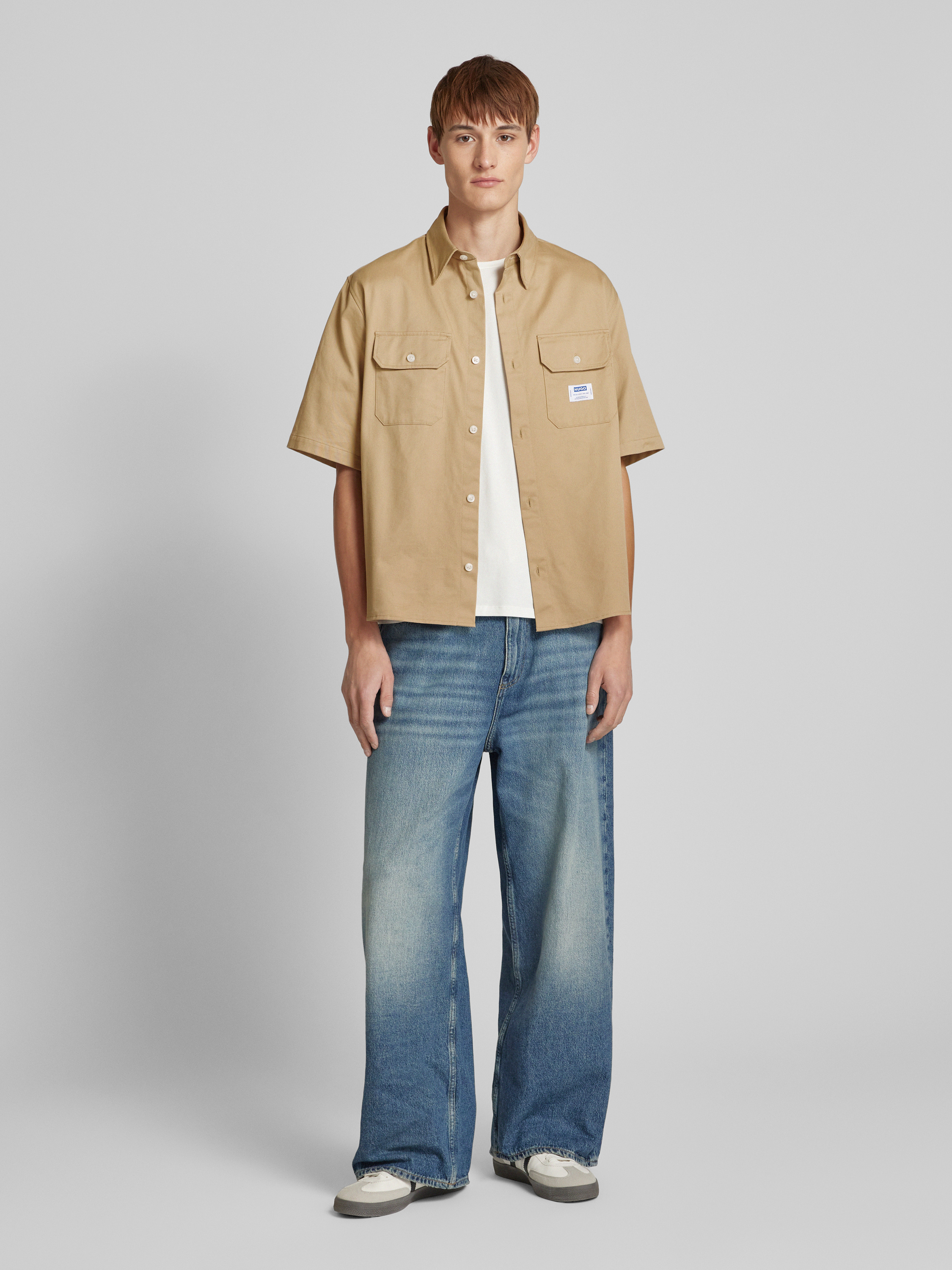 Das Herren Freizeithemd von Hugo Blue, Modell 'Ekyno', aus reiner Baumwolle kombiniert bequemen Wide Fit mit einem klassischen Umlegekragen. Mit Brusttaschen und einem subtilen Label-Patch eignet es sich ideal für entspannte Tage. Die atmungsaktive Baumwolle sorgt für angenehmen Tragekomfort.
