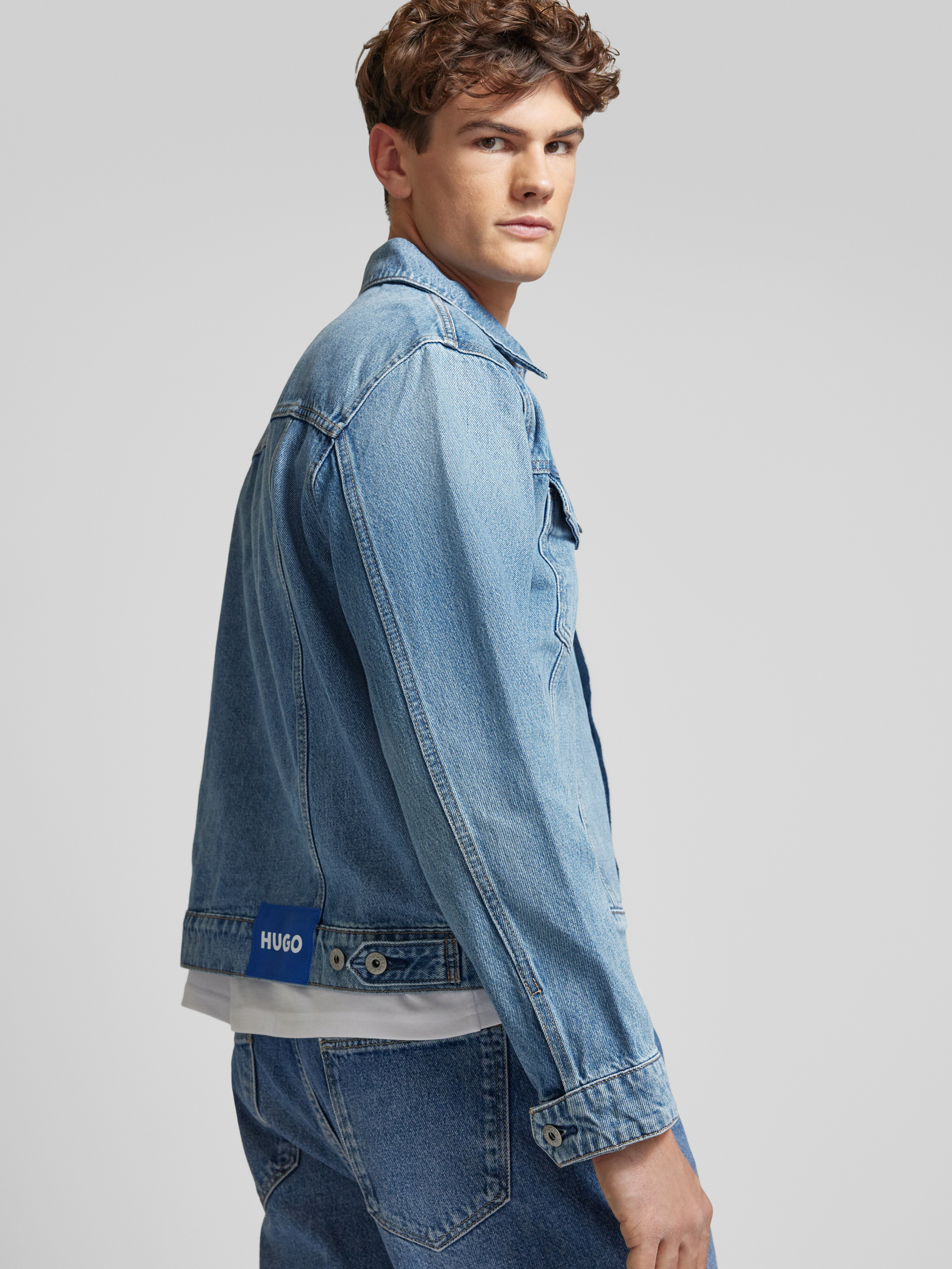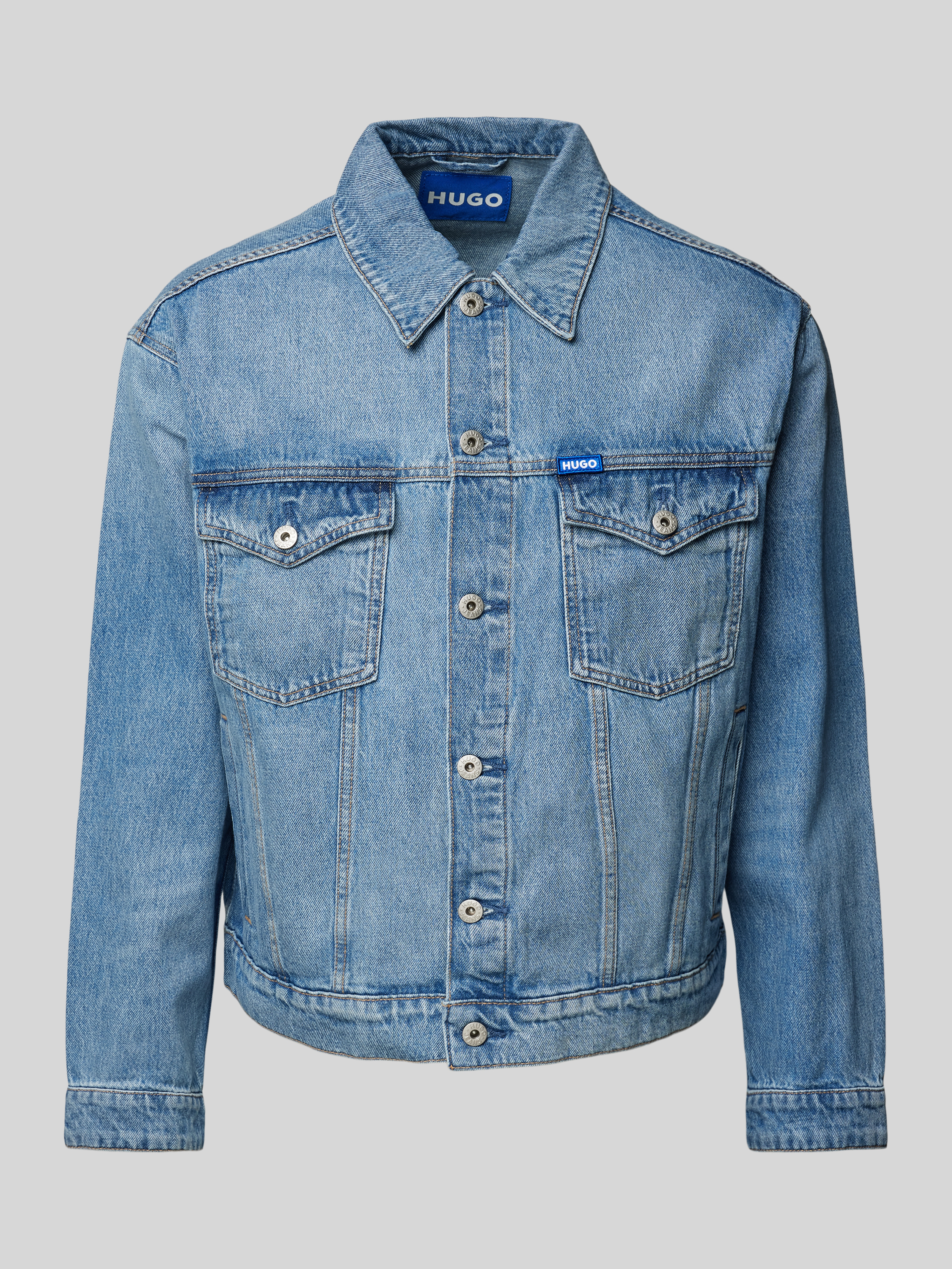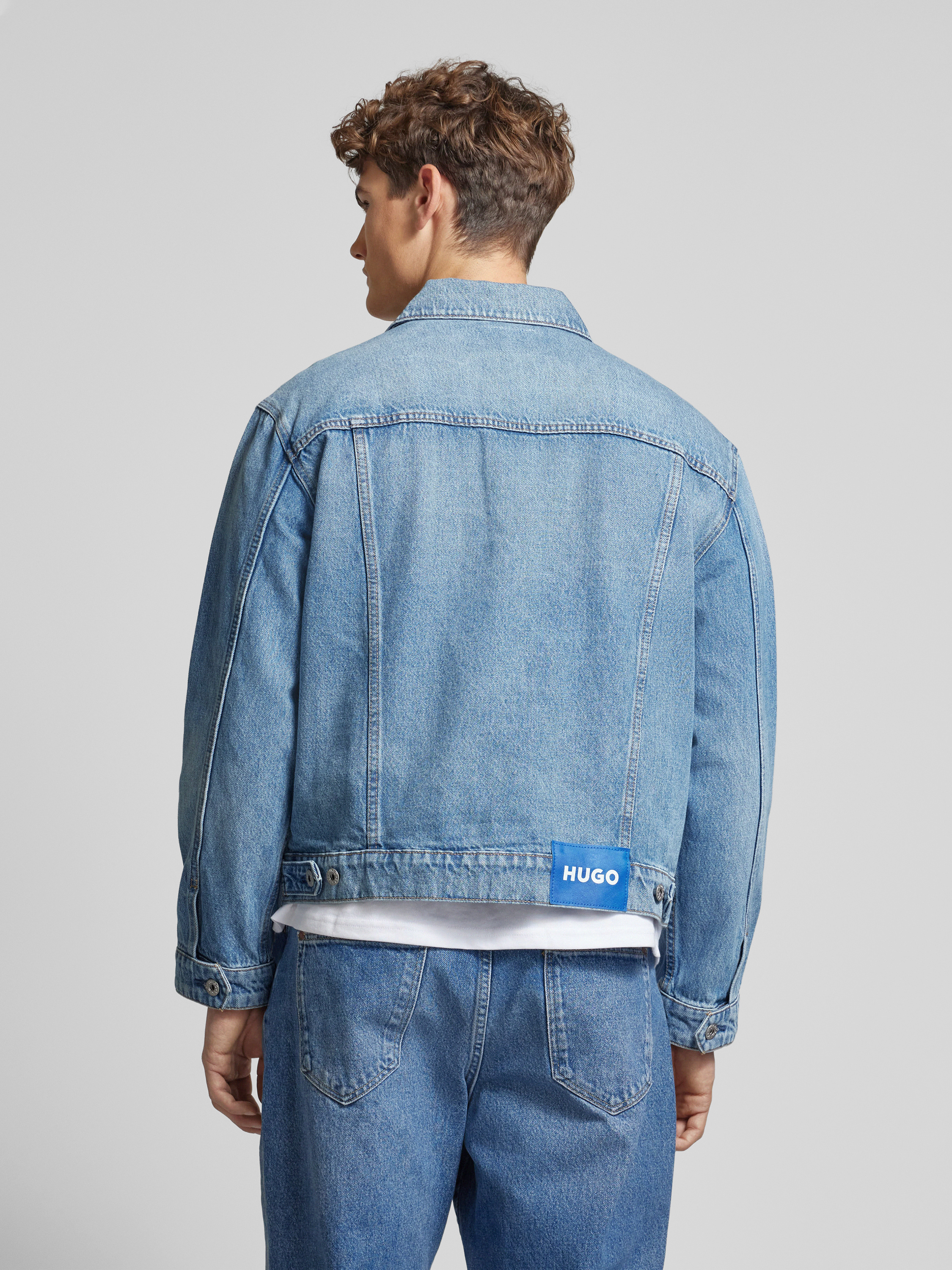 Hugo BlueJeansjacke mit Label-Badge Modell 'Dex' in hellblau