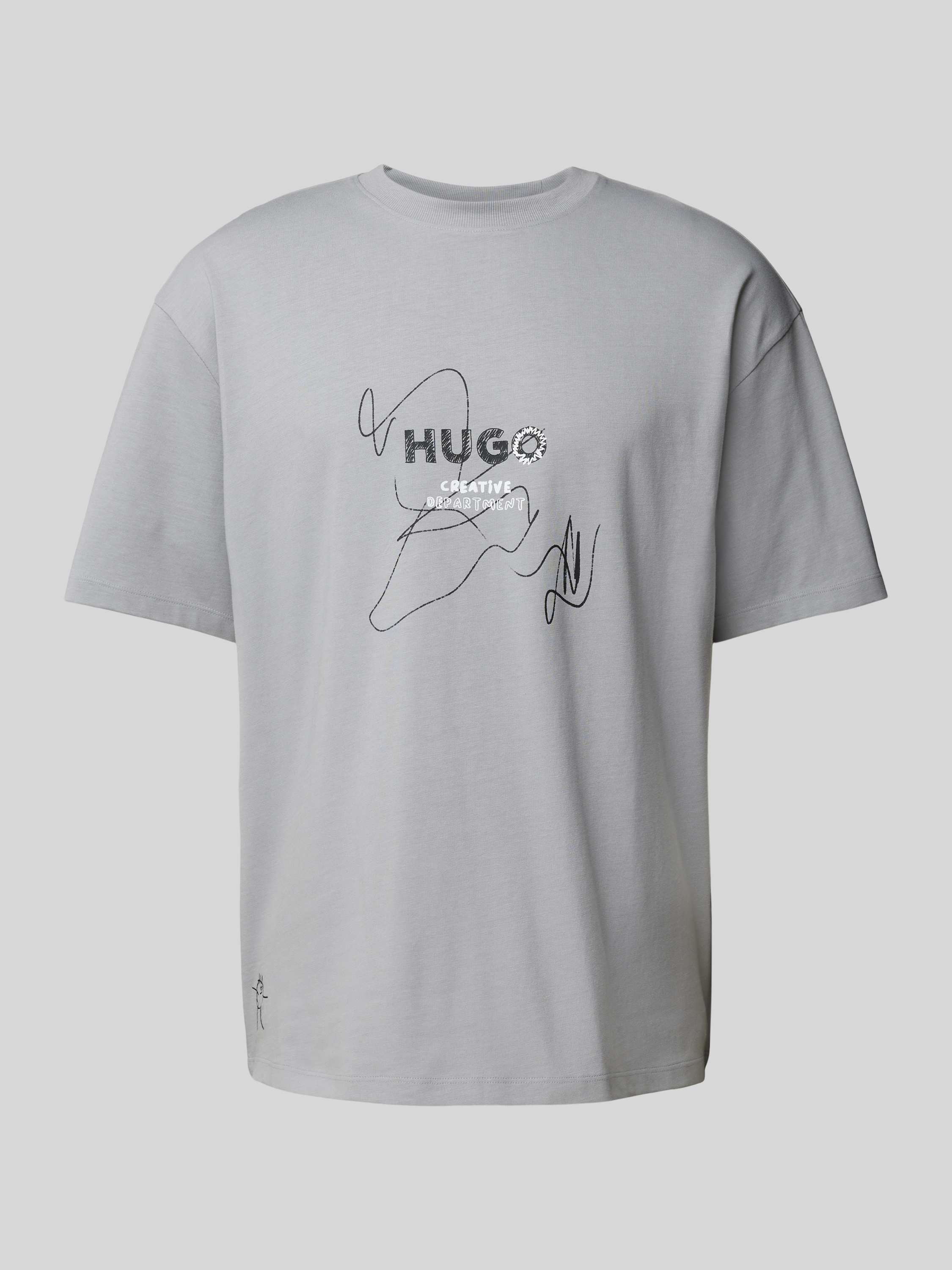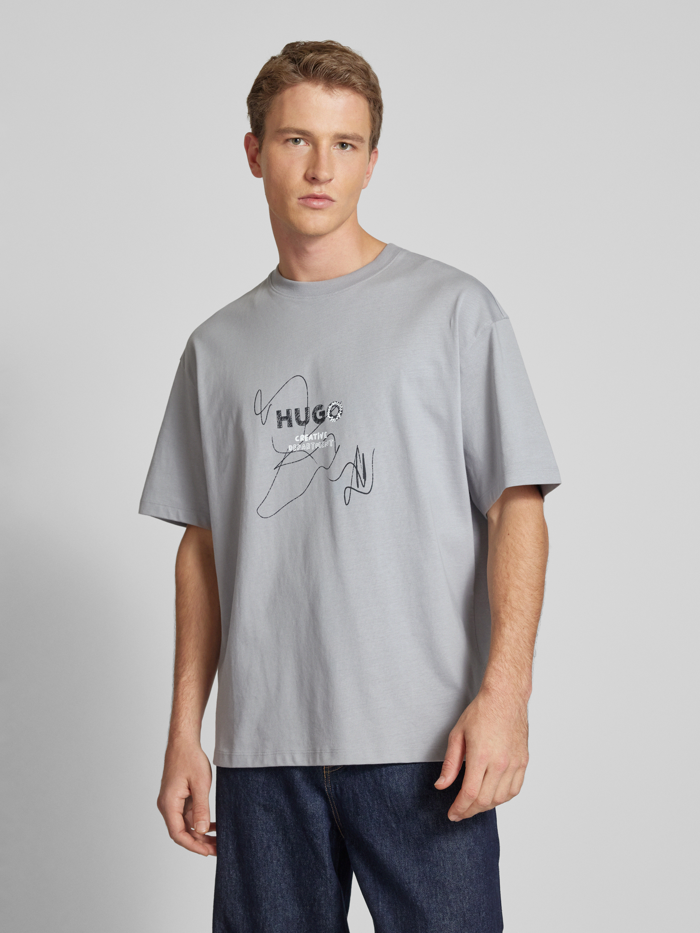 Hugo BlueOversized T-Shirt aus Viskose Modell 'Nabion' in hellgrau