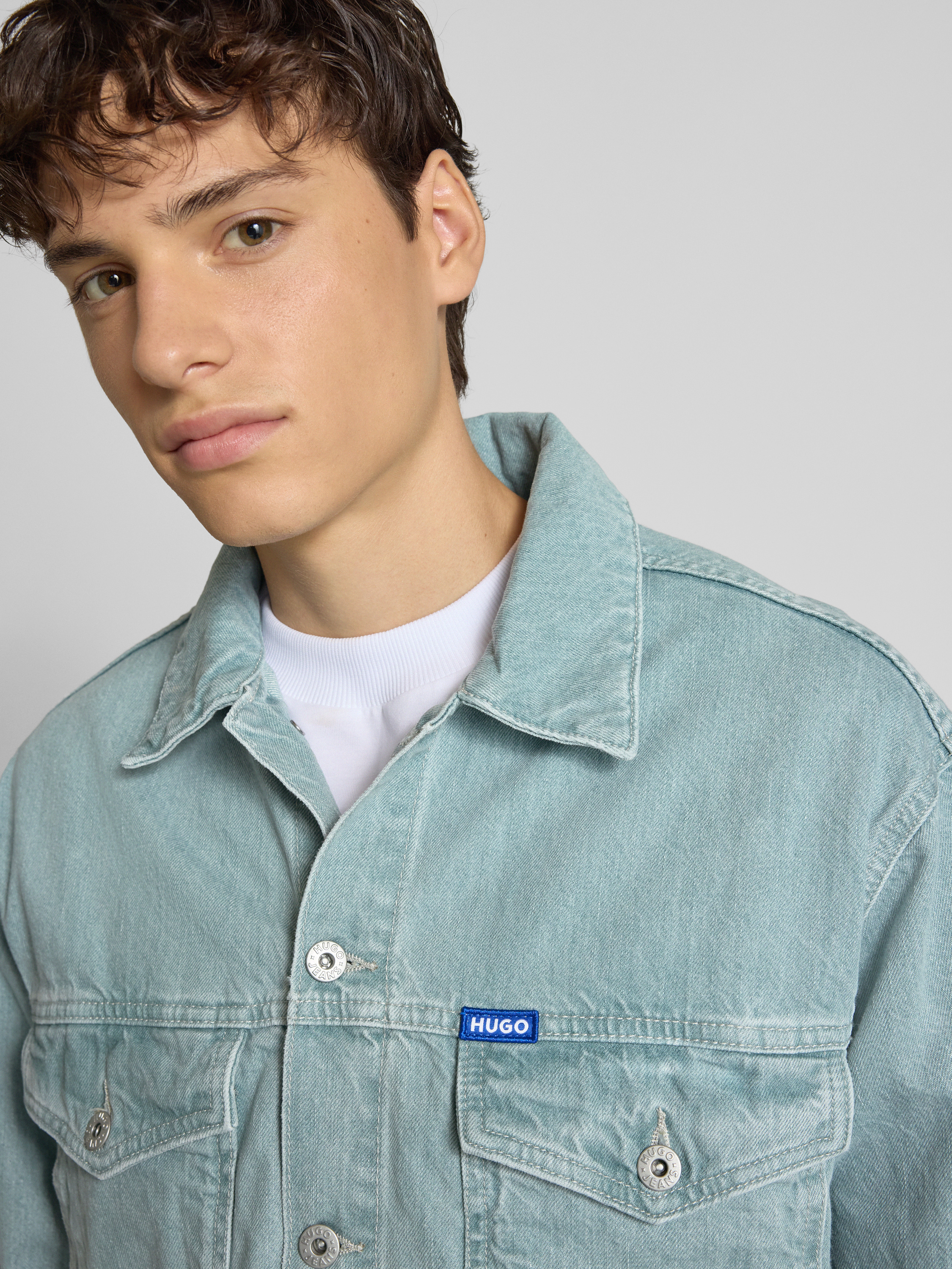 Die Regular Fit Jeansjacke 'Dex' von Hugo Blue präsentiert sich in reiner Baumwolle und bietet mit ihrem Umlegekragen sowie den praktischen Brusttaschen eine lässige, vielseitige Note. Die Passform eignet sich ideal für einen komfortablen und dennoch stilvollen Auftritt. Ein dezentes Label-Stitching rundet das Design ab.