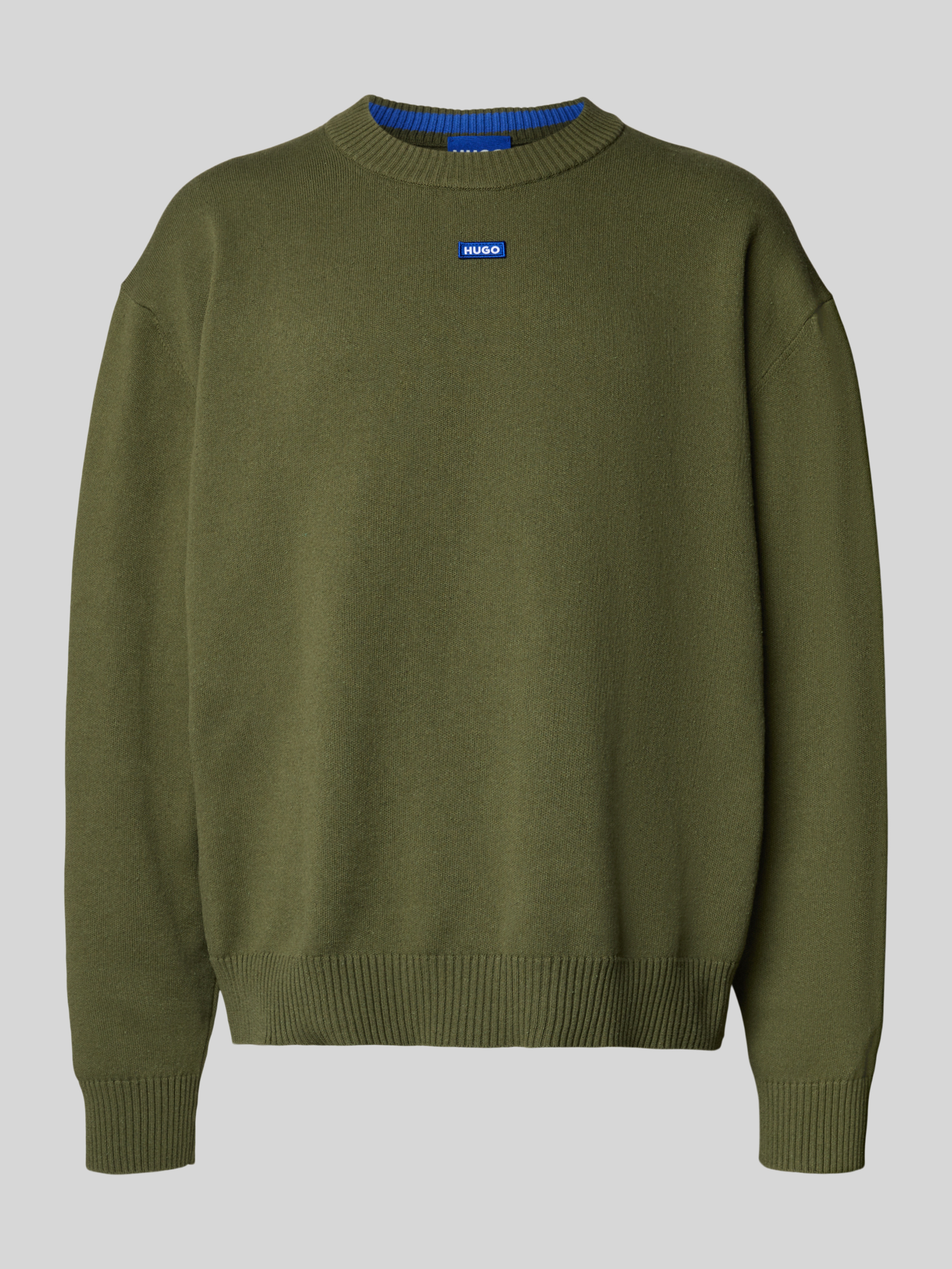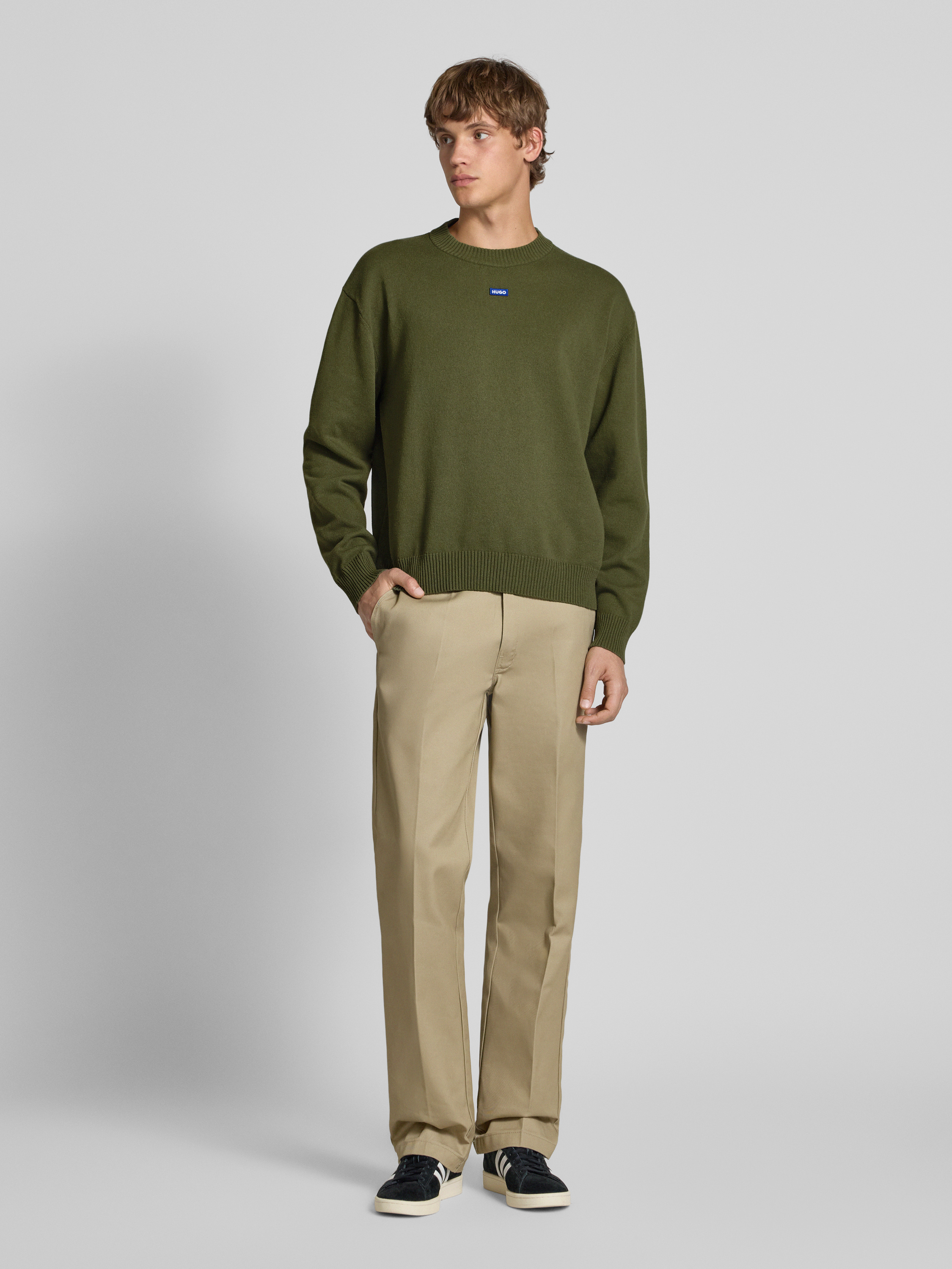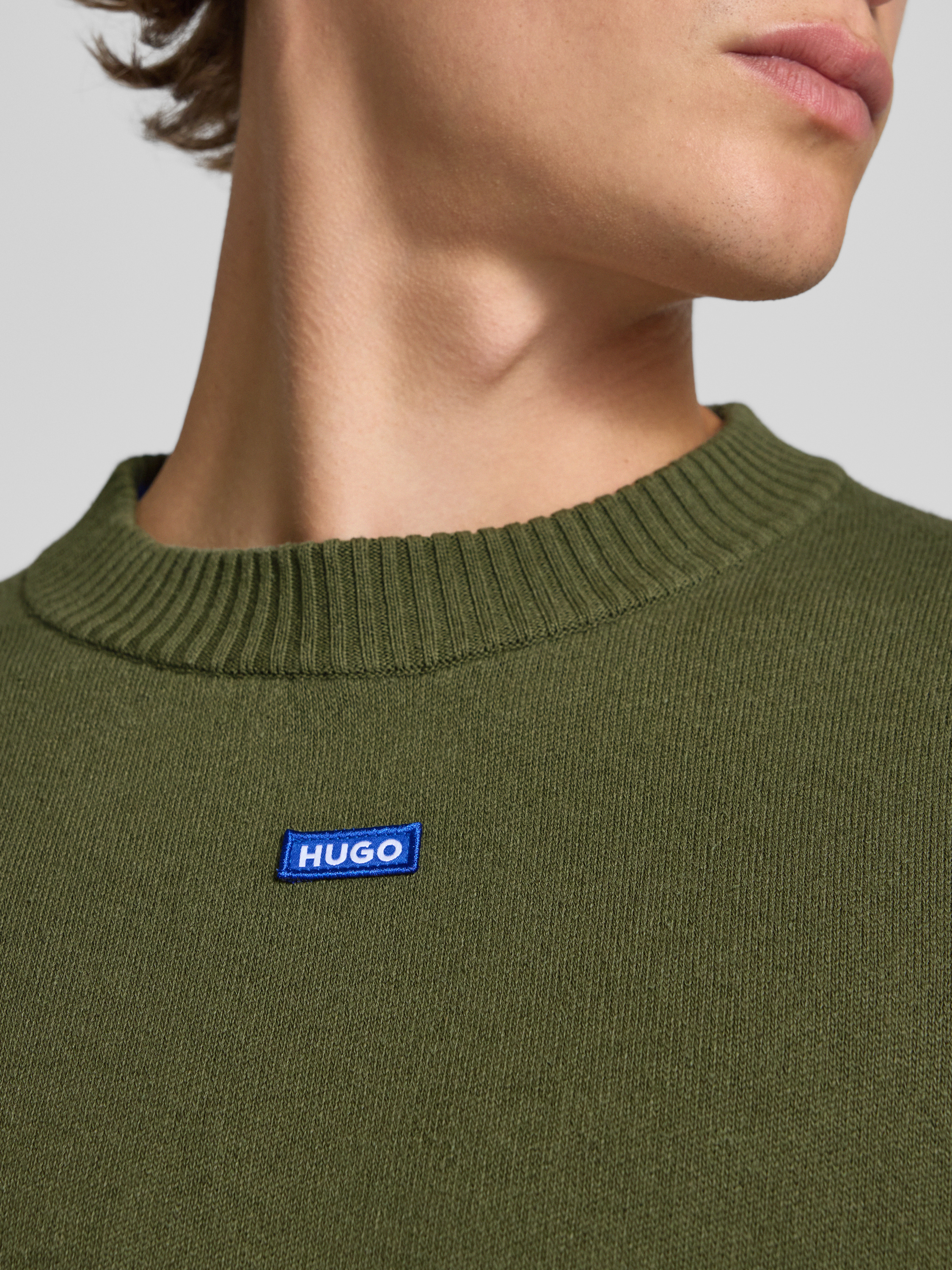 Hugo BlueRegular Fit Strickpullover aus Baumwoll-Mix Modell 'SAN CASEY' in oliv