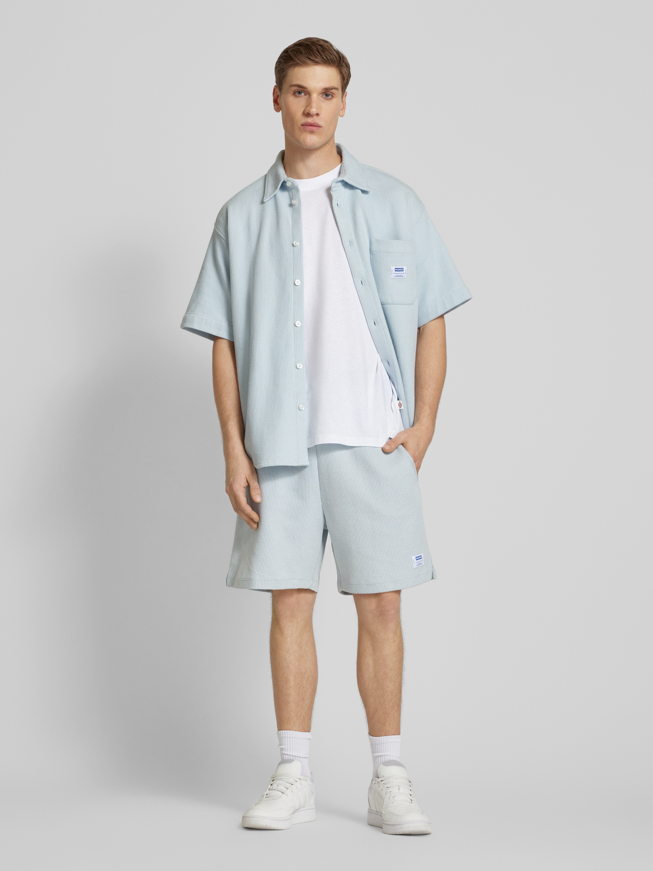 Hugo BlueRegular Fit Sweatshorts mit Strukturmuster Modell 'Nuwafflo' in hellblau