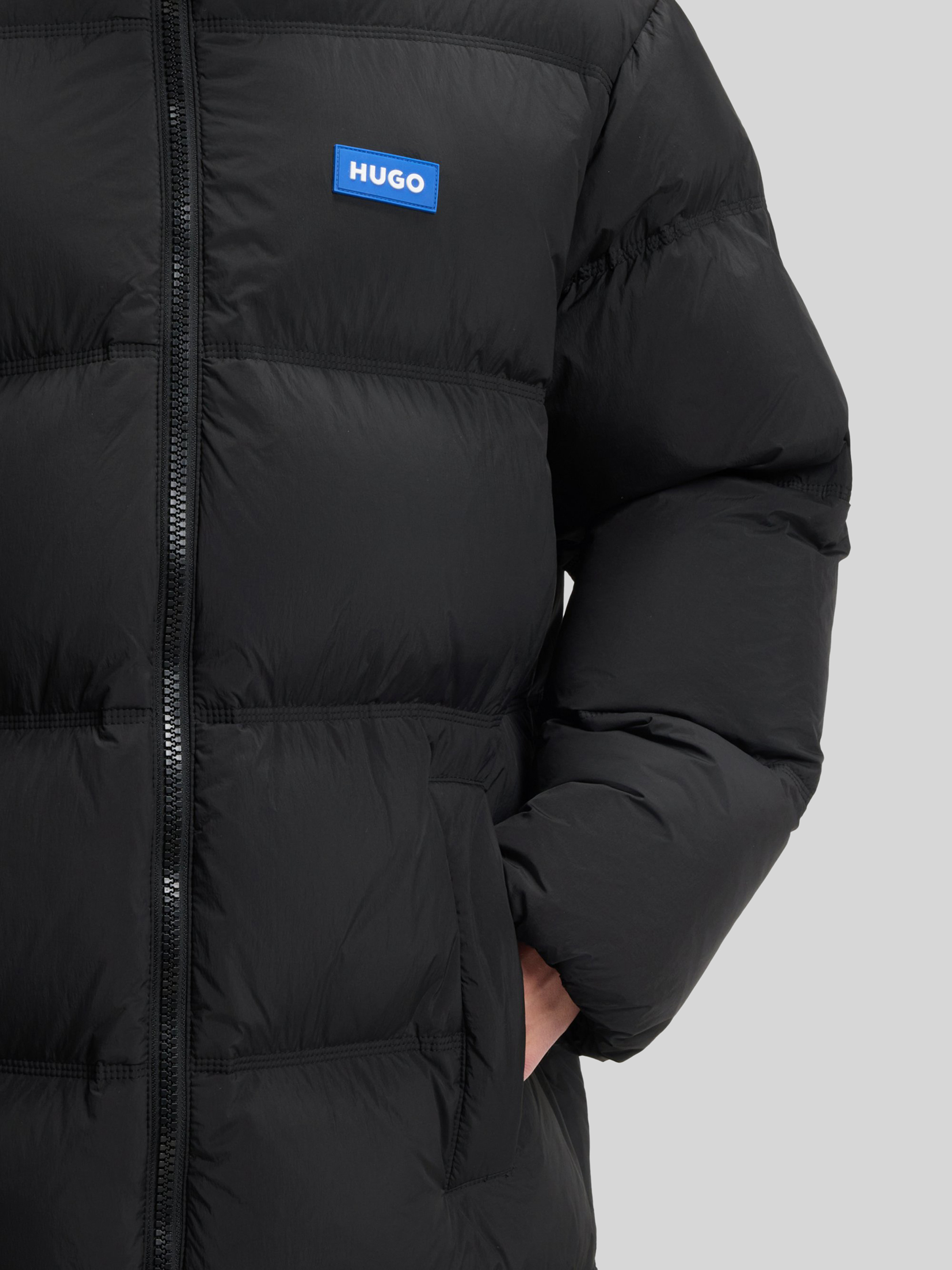 Der Herren Steppmantel von Hugo Blue, Modell Bodi, zeigt sich in unifarbener Optik und entspanntem Relaxed-Fit. Durch die verstellbare Kapuze mit Stehkragen entsteht ein angenehmer Schutz bei wechselhaftem Wetter, während langärmelige Verarbeitung auch an kühleren Tagen Komfort schenkt. Ein Label-Patch rundet das schlichte Design dezent ab.