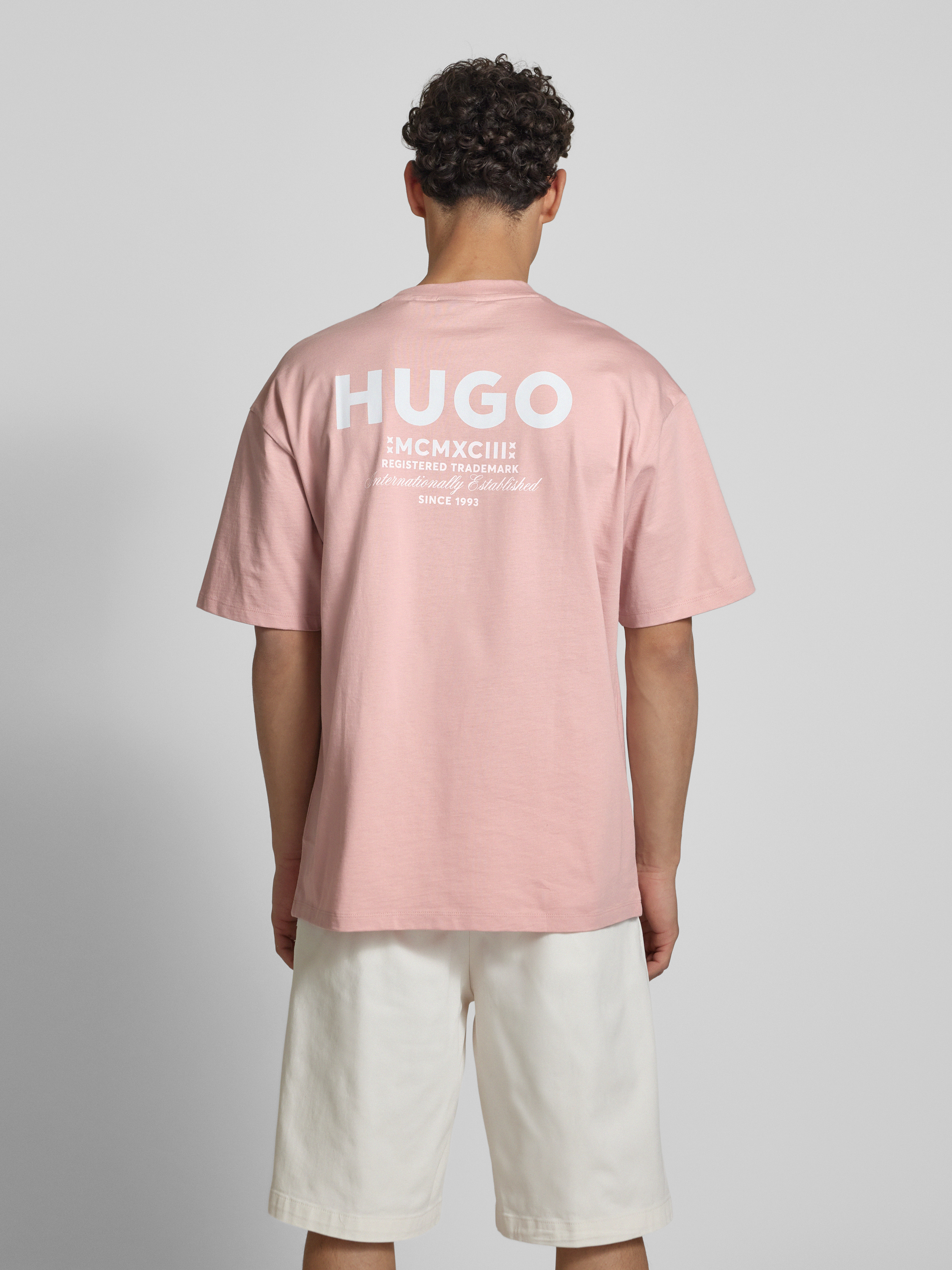 Das Herren T-Shirt von Hugo Blue, Modell 'Nalono', besteht aus reiner Baumwolle und bietet durch den Regular Fit eine angenehme Passform. Der gerippte Rundhalsausschnitt und der markante Label-Print verleihen dem T-Shirt einen lässigen Look. Ideal für den Alltag geeignet.