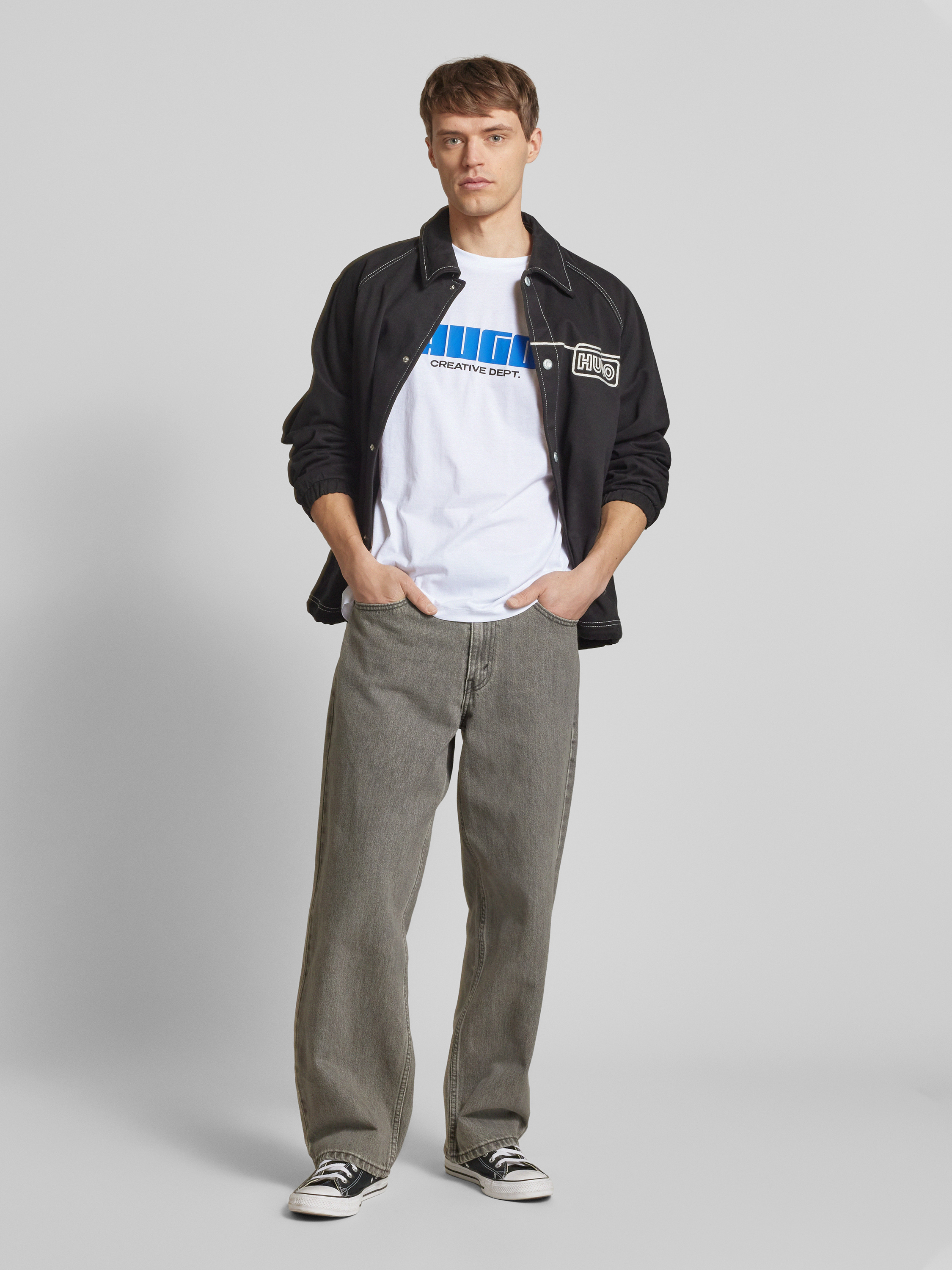 Das Herren T-Shirt von HUGO, Modell 'Newromi', kombiniert einen geraden Schnitt mit einem klassischen Rundhalsausschnitt, was eine bequeme Passform gewährleistet. Der dezente Label-Print verleiht dem Shirt eine stilvolle Note, die sich mühelos in verschiedene Outfits integrieren lässt. Ein vielseitiges Kleidungsstück für den Alltag.