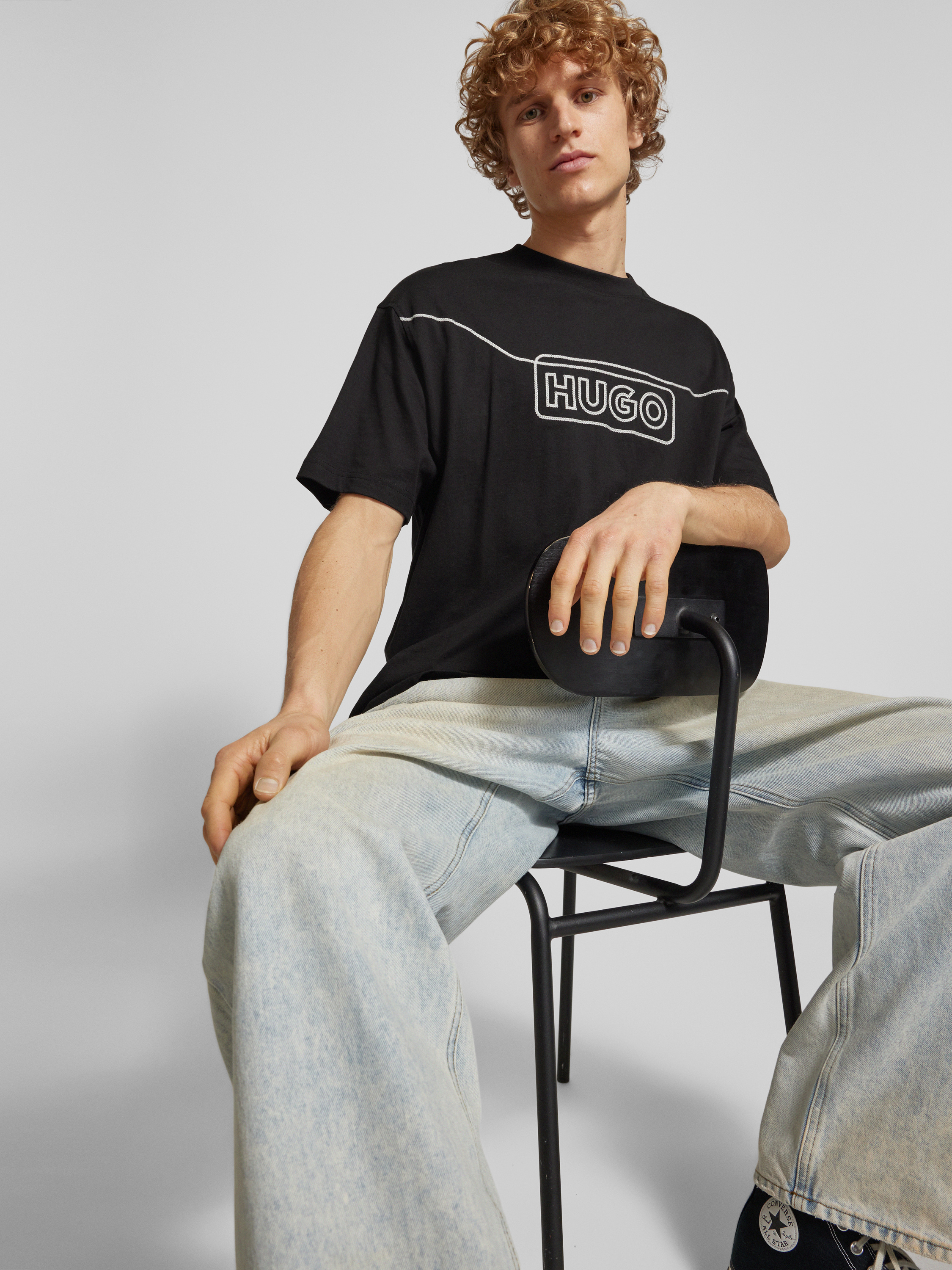 Hugo BlueT-Shirt mit Label-Stitching Modell 'Noideryo' in anthrazit