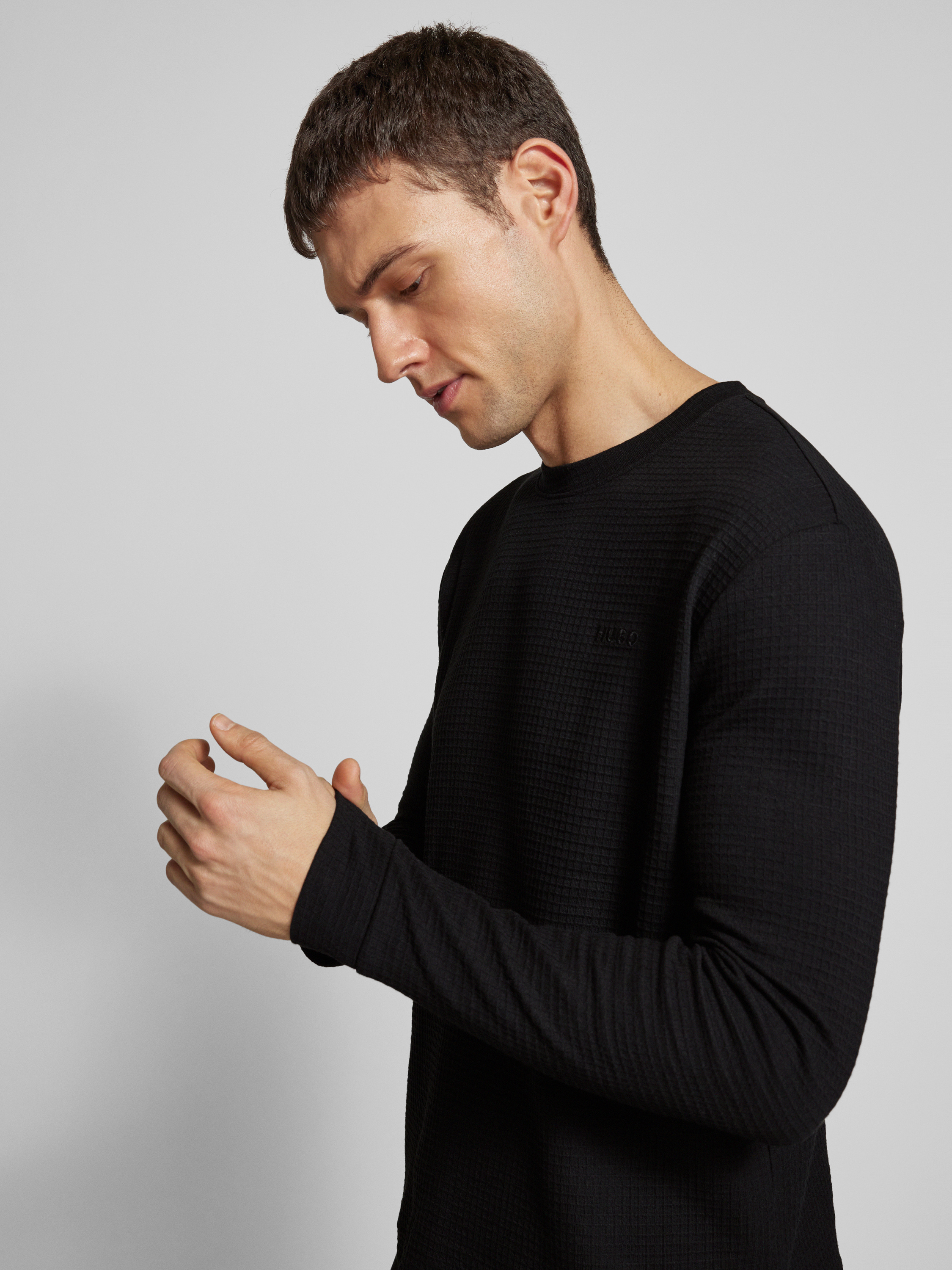 Das Longsleeve mit Rundhalsausschnitt Modell 'Austin' von HUGO kombiniert einen geraden Schnitt mit einem angenehmen Baumwoll-Mix, was ein komfortables Tragegefühl ermöglicht. Der klassische Rundhalsausschnitt ergänzt das Design, während elastische Abschlüsse einen flexiblen Sitz gewährleisten. Ideal für lässige und stilvolle Alltagslooks.