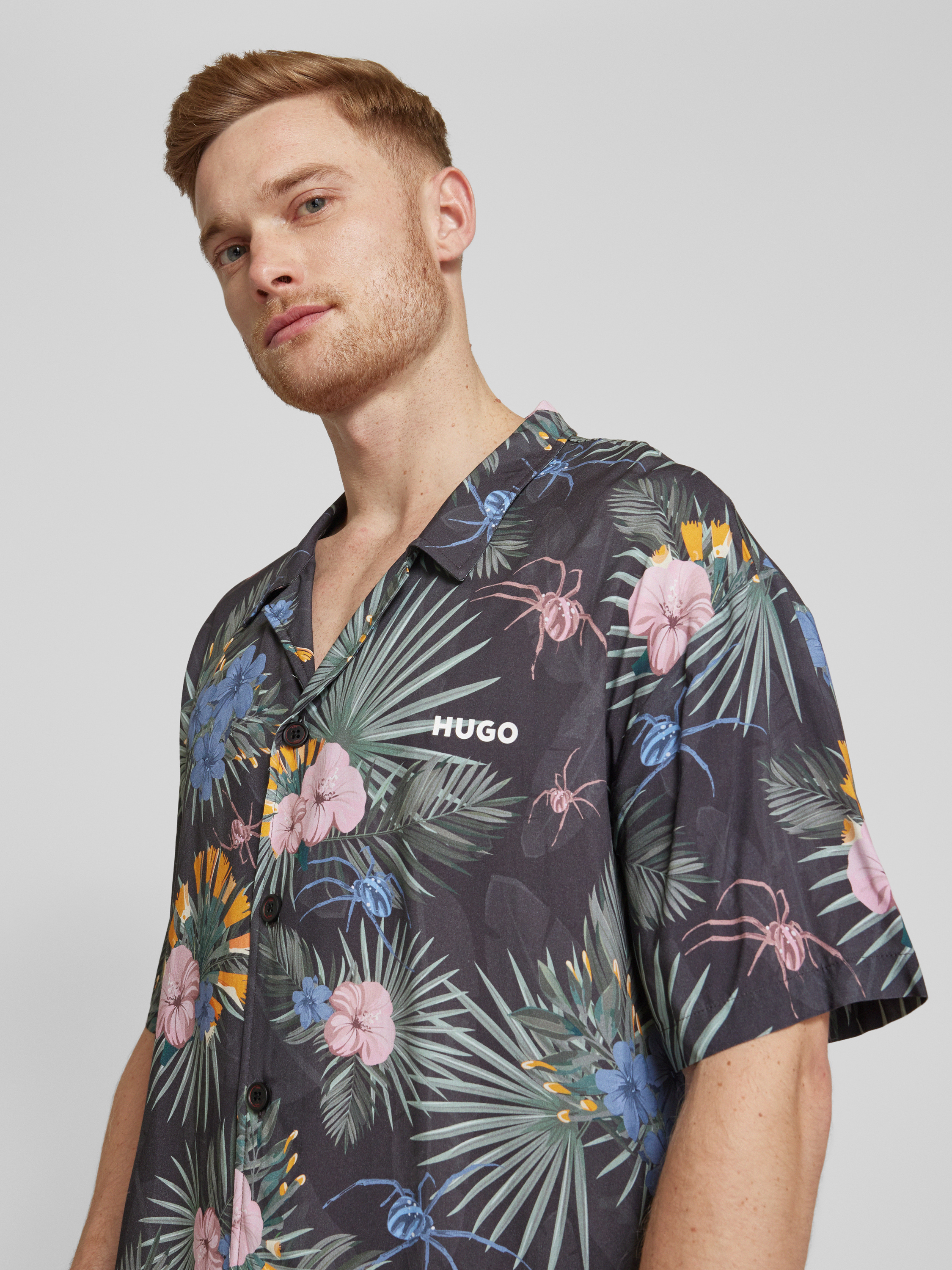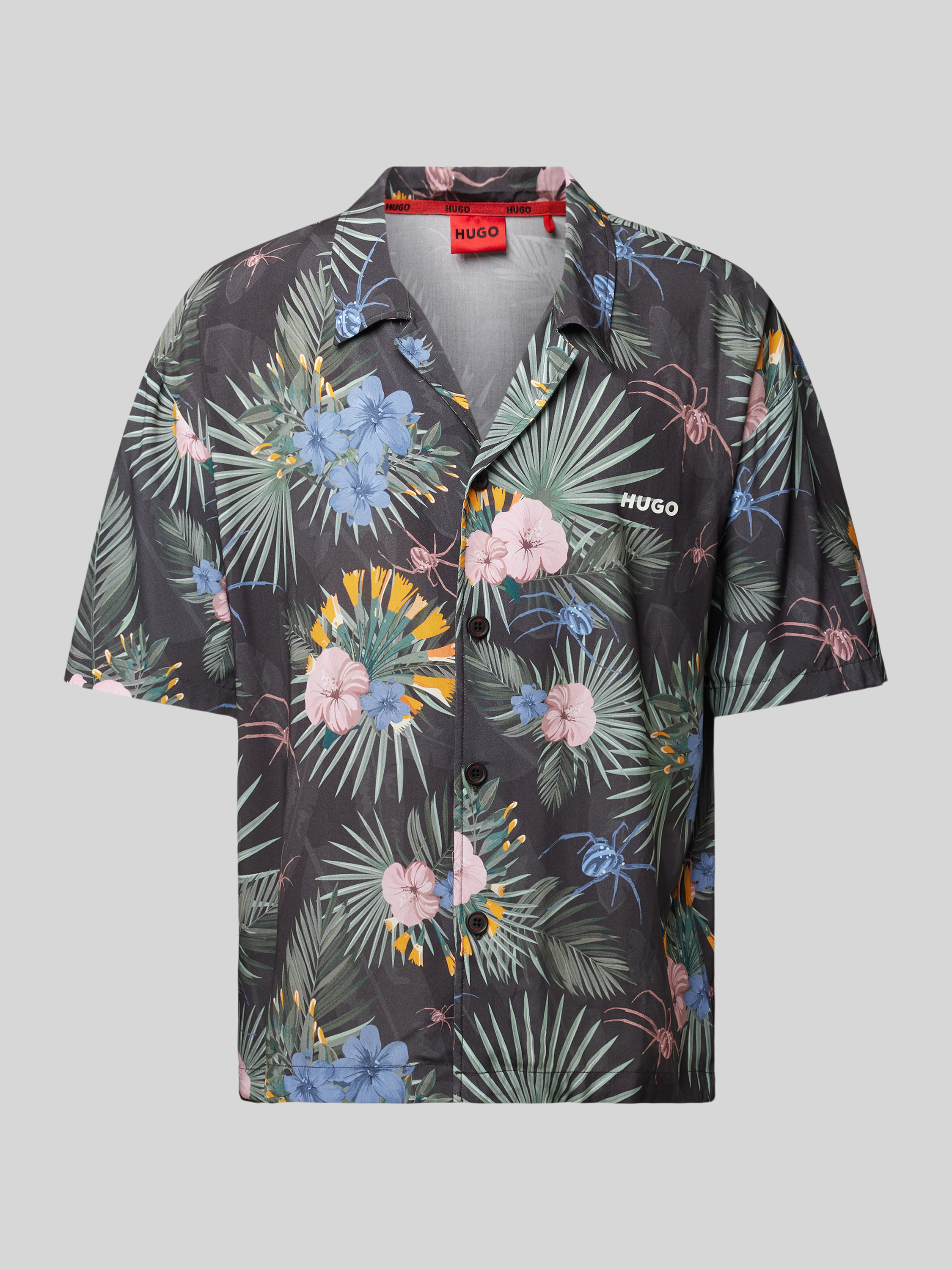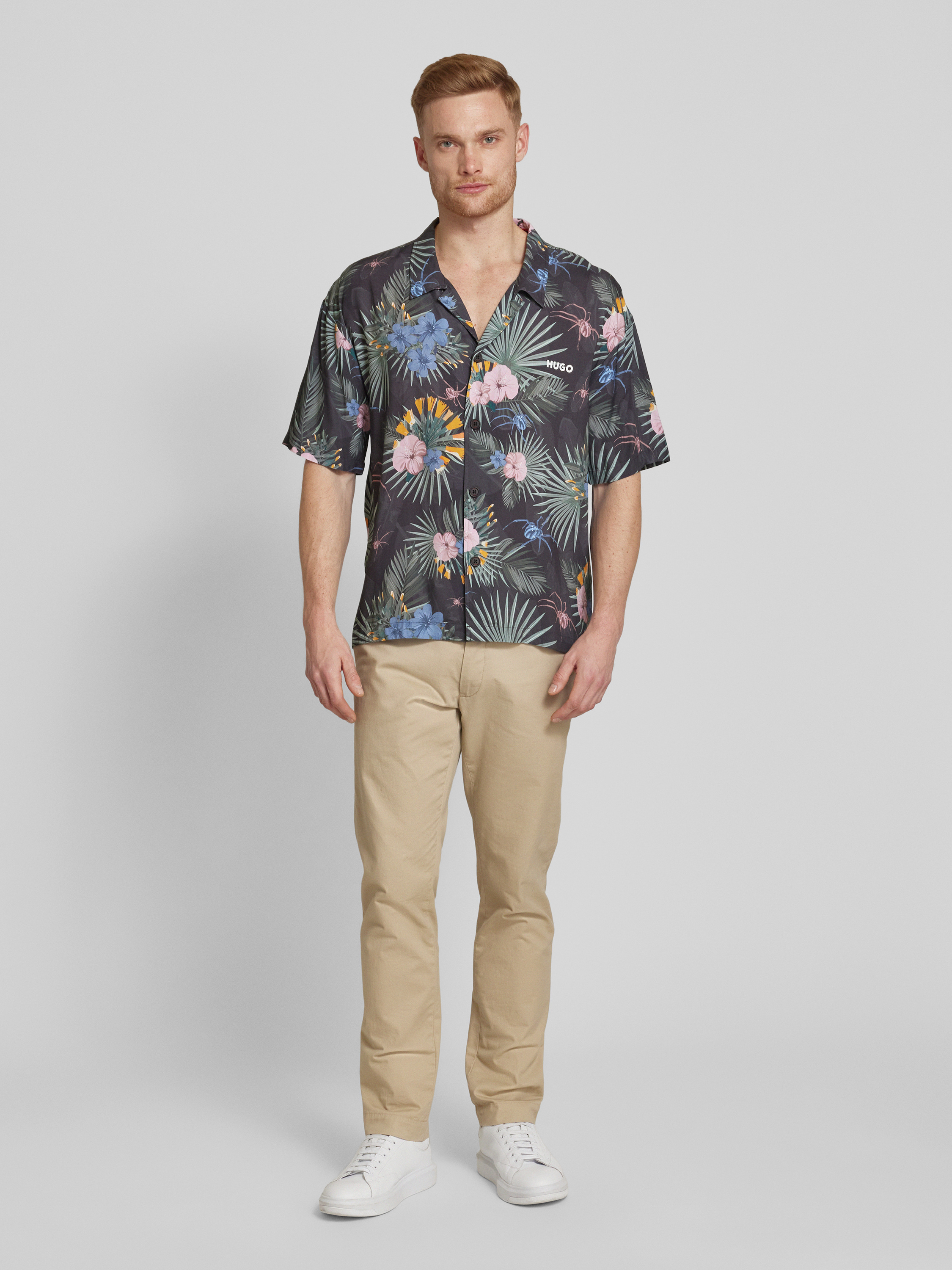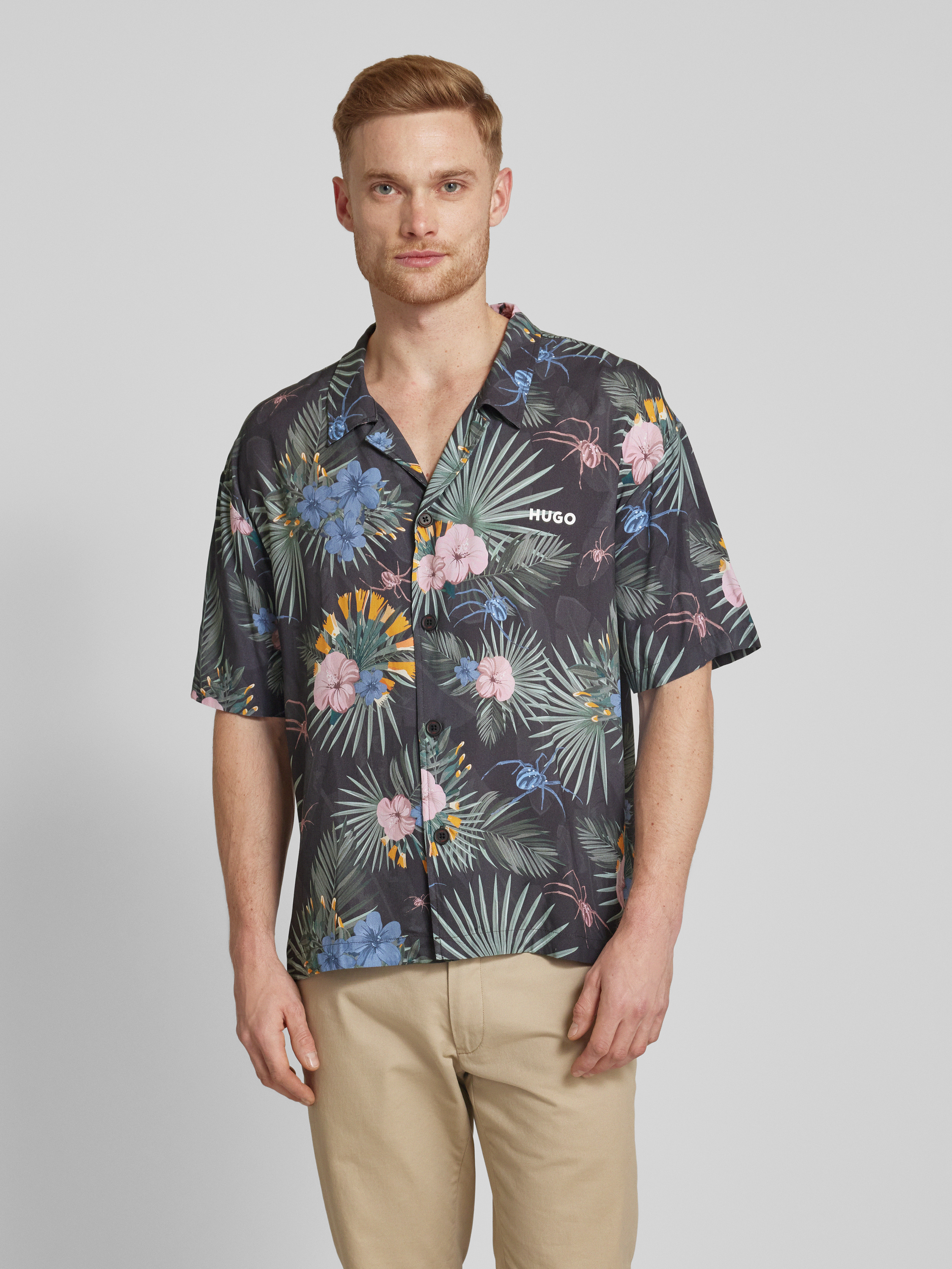 Das Herren Freizeithemd von HUGO, Modell 'BEACH', präsentiert sich in einem entspannten Relaxed Fit aus reiner Viskose. Mit seinem Resortkragen und den kurzen Ärmeln eignet es sich ideal für entspannte Sommertage, während die durchgehende Knopfleiste Flexibilität im Styling ermöglicht.