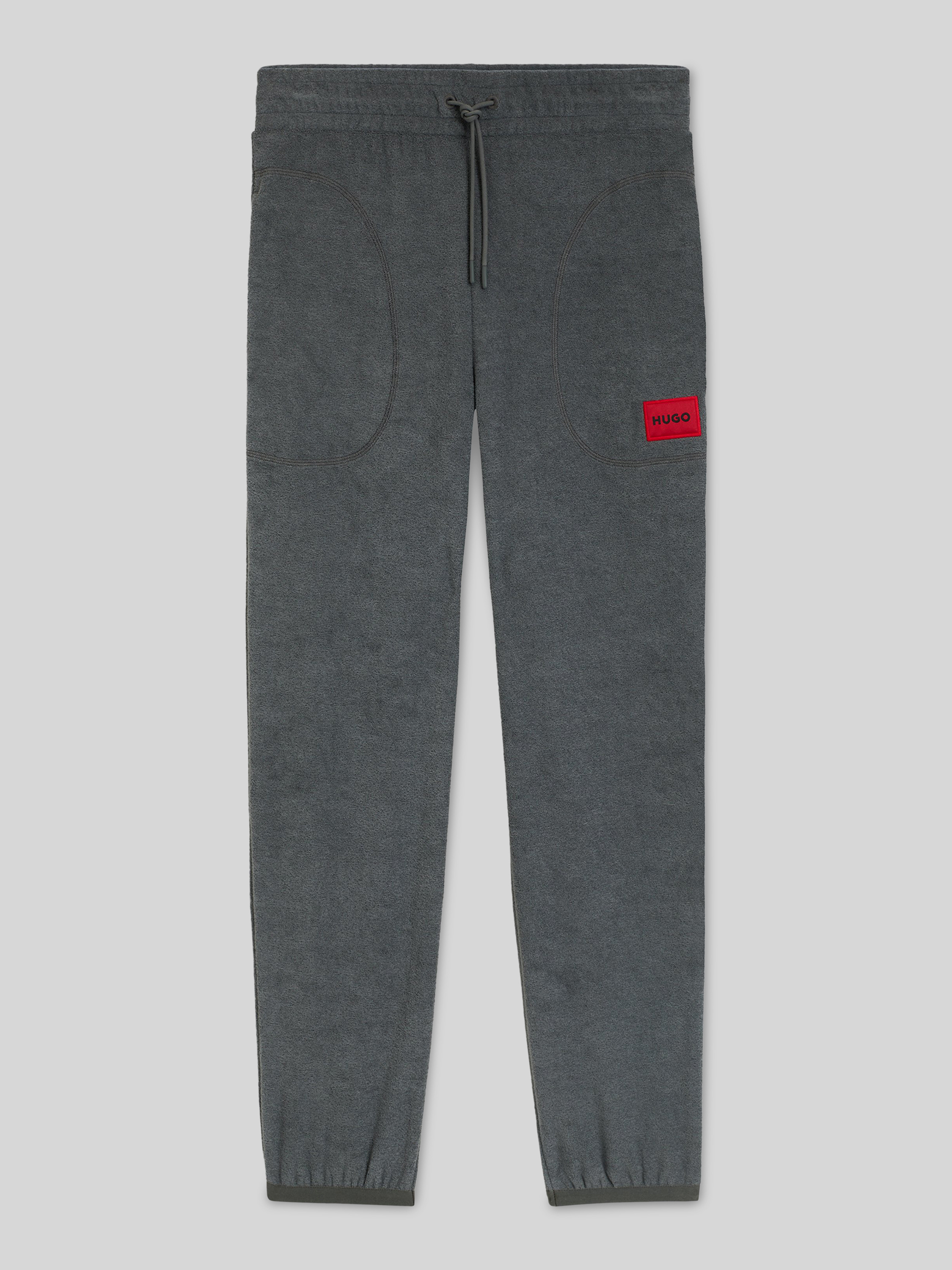 Die Herren-Sweathose von HUGO, Modell TERRY, zeigt sich in entspannter Relaxed-Fit-Silhouette und punktet mit angenehm weicher Fleece-Verarbeitung. Durch den elastischen Tunnelzugbund passt sie sich bequem an verschiedene Bedürfnisse an. Dezente Label-Applikation und seitliche Eingrifftaschen runden das schlichte Design ab.