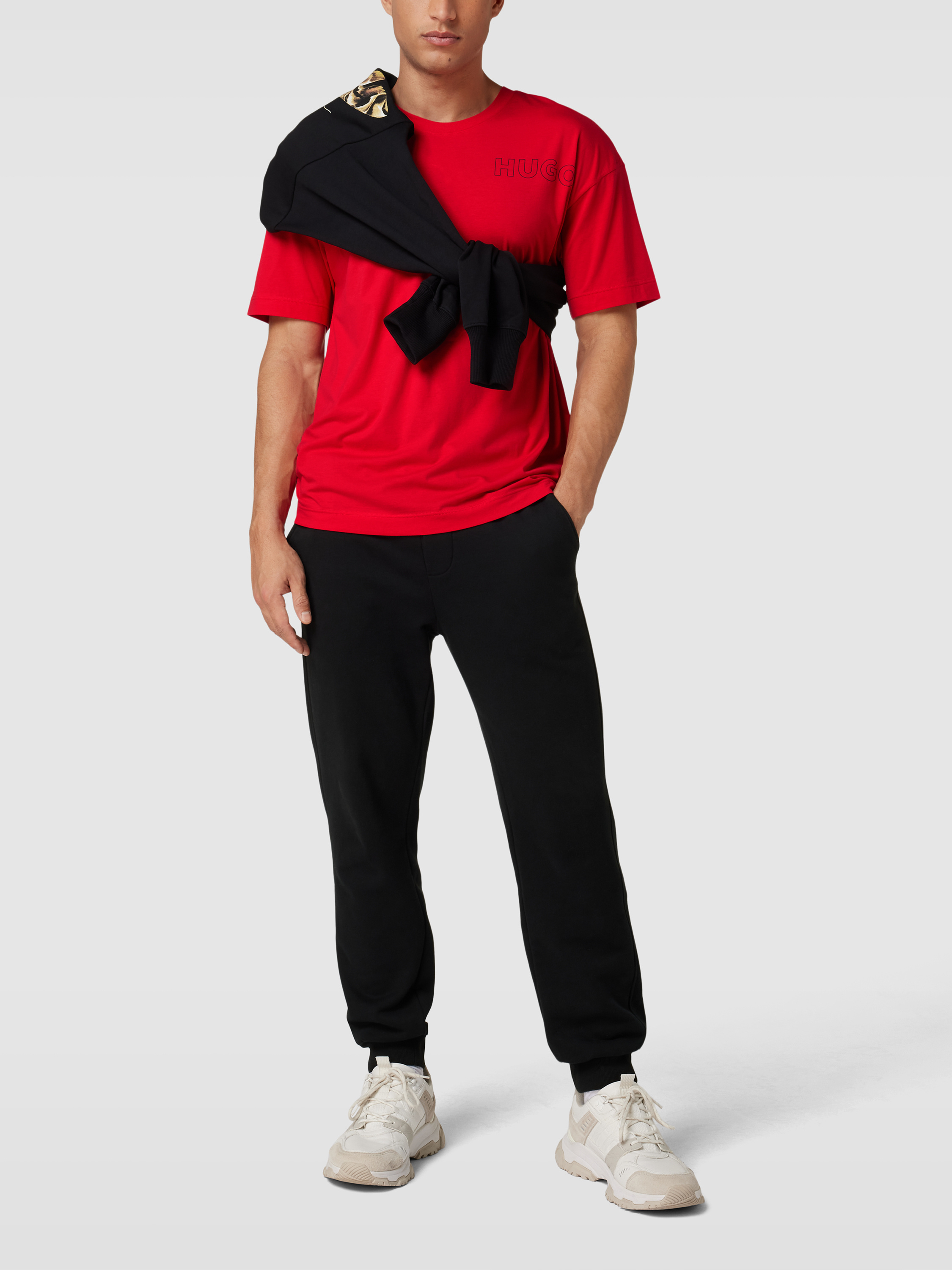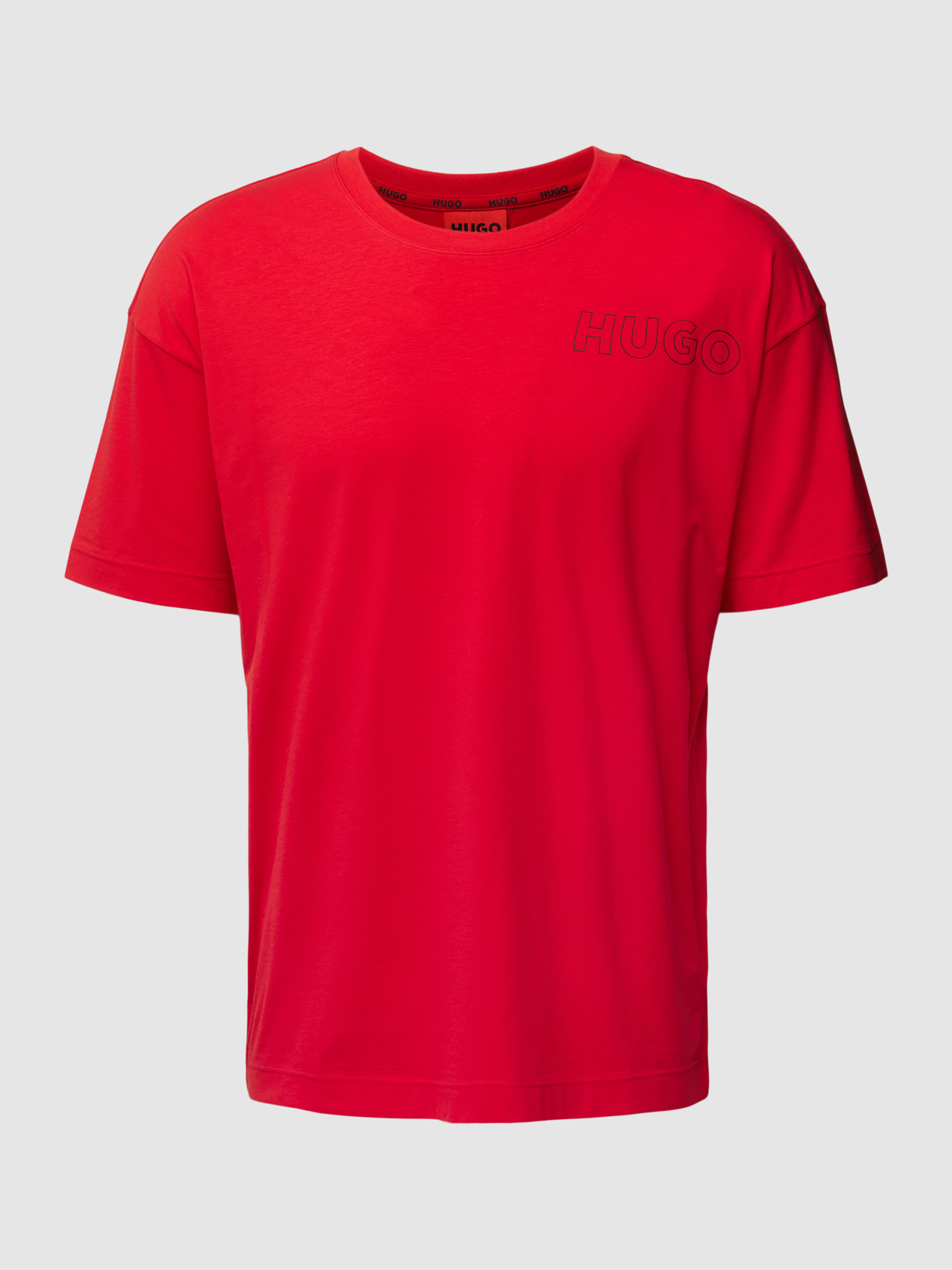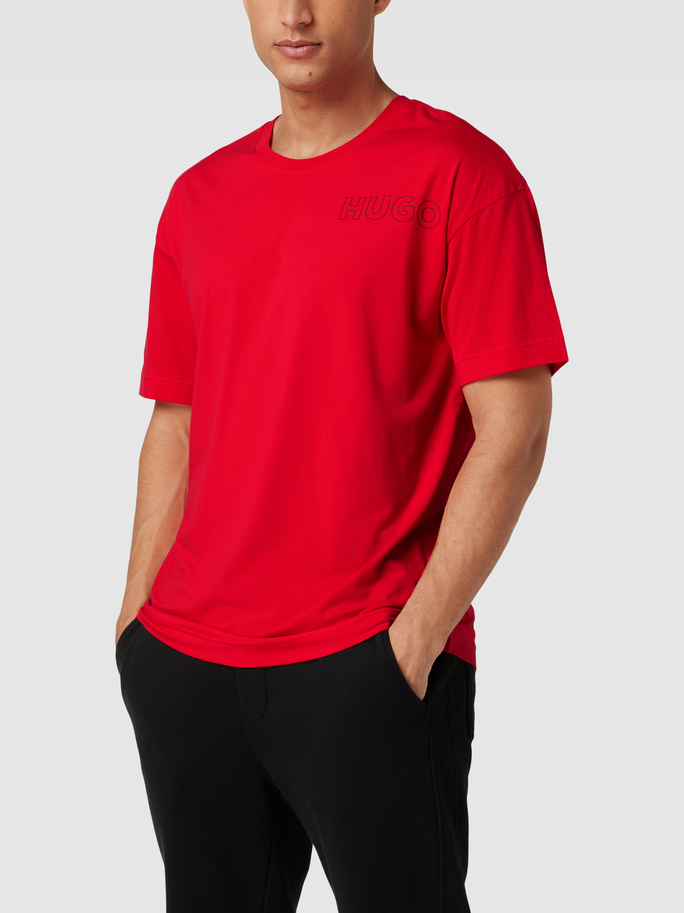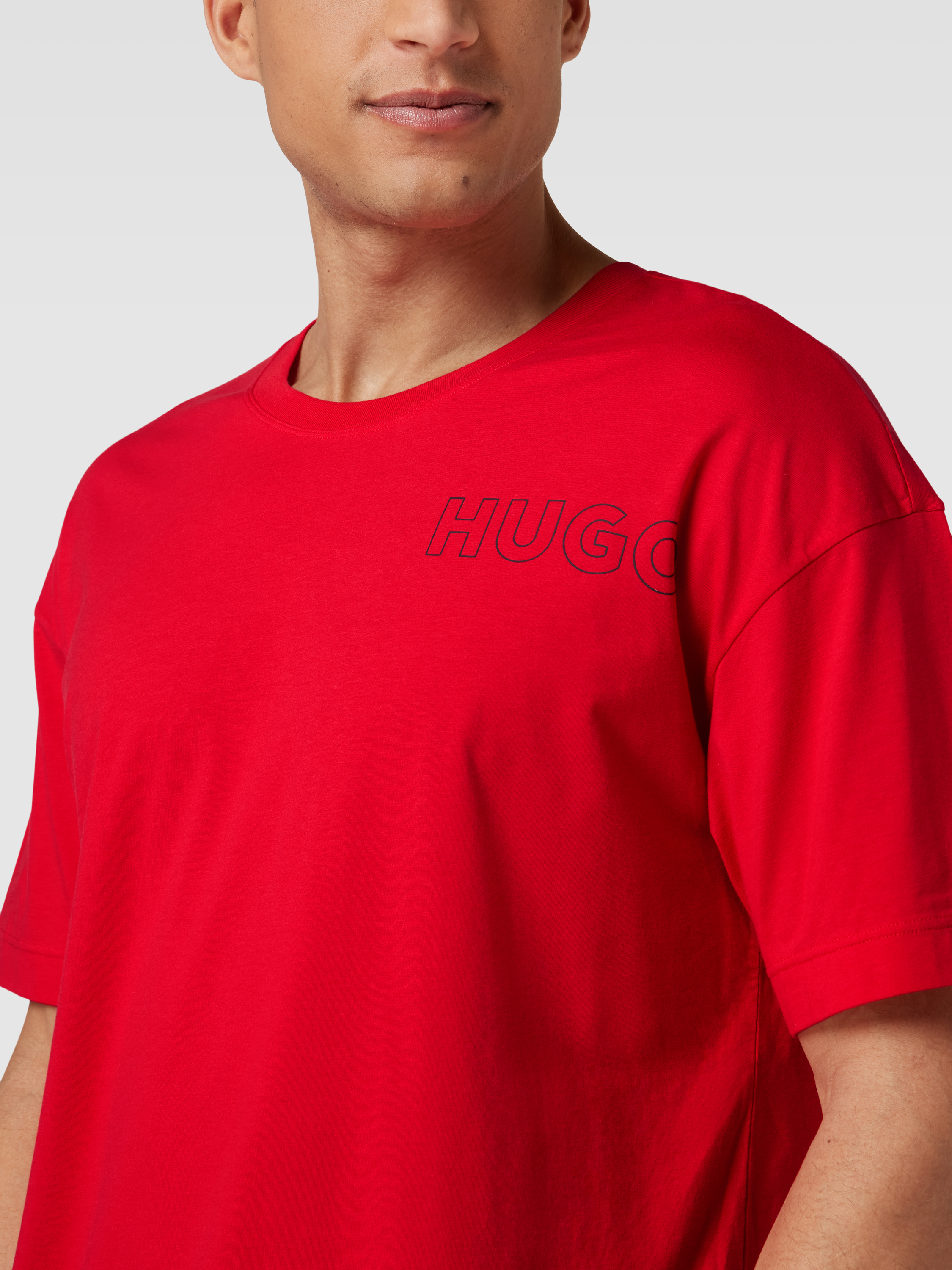 Das T-Shirt von HUGO ist aus einem Baumwoll-Mix mit Modal-Anteil gefertigt und gerade geschnitten. Es zeigt sich mit geripptem Rundhalsausschnitt und Label-Print.