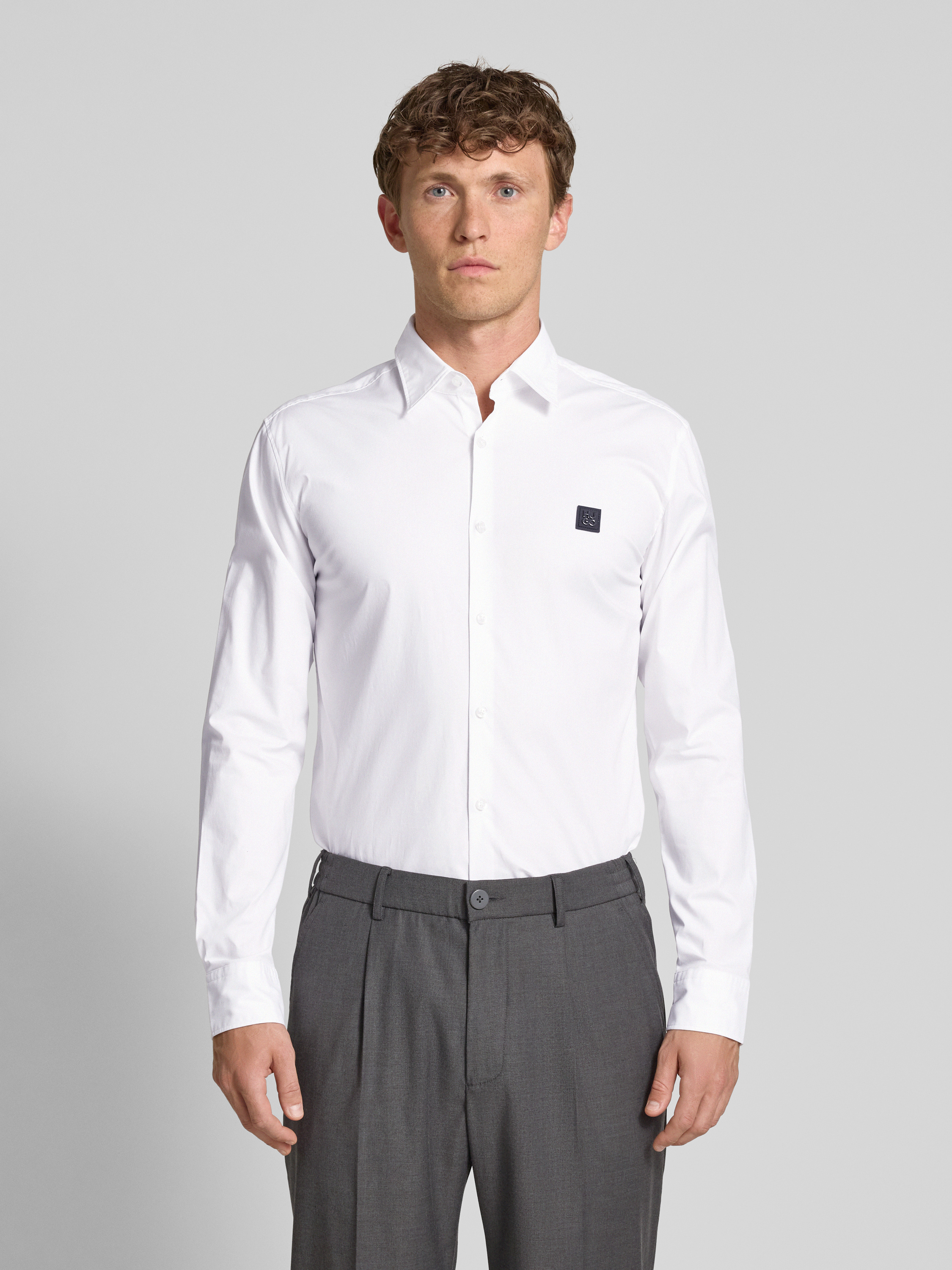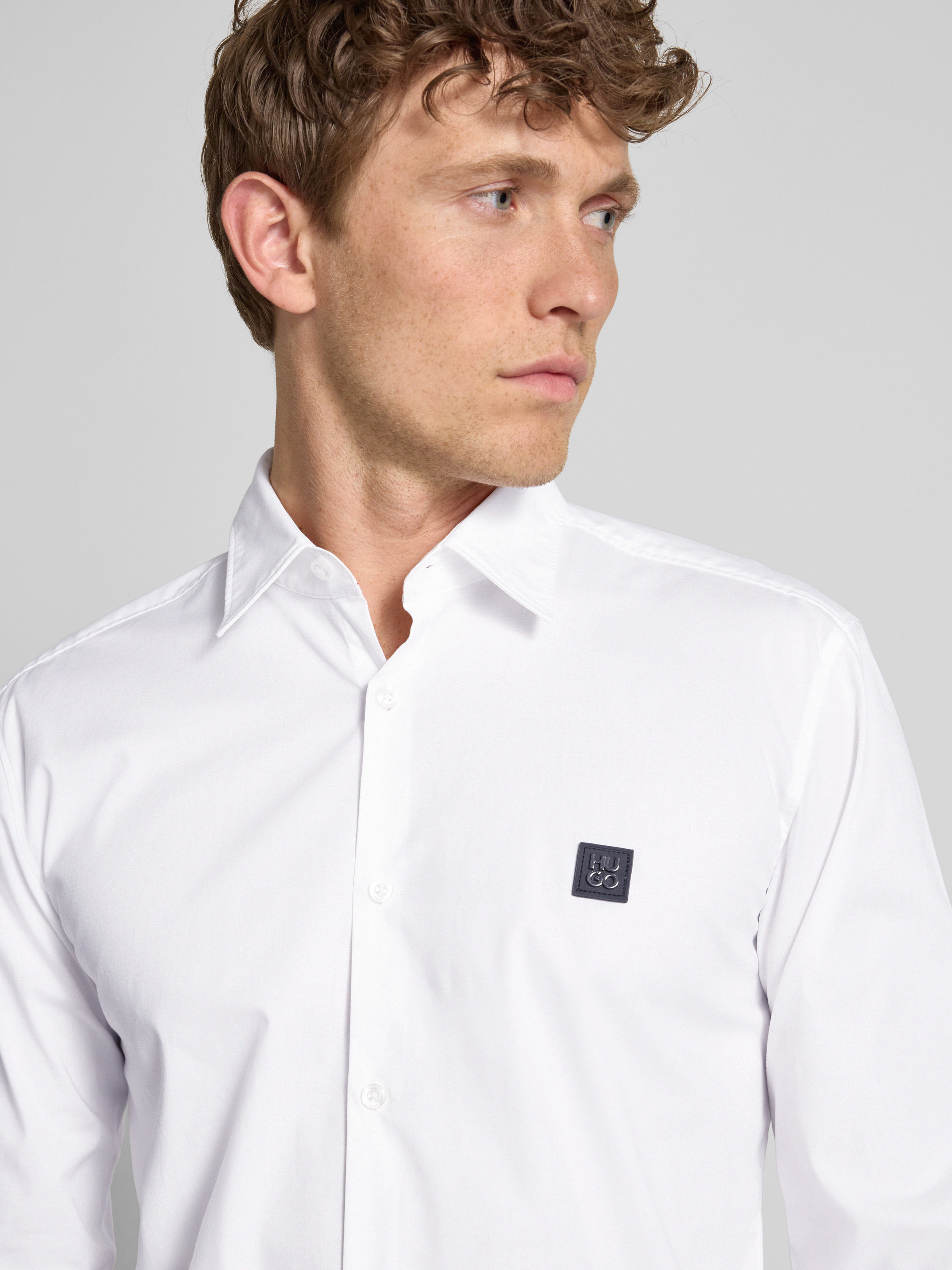 Das Freizeithemd 'Ermo' von HUGO verbindet einen legeren Schnitt mit einem angenehm weichen Baumwoll-Elasthan-Mix, der für Bewegungsfreiheit sorgt. Der klassische Kentkragen ergänzt das Hemd stilvoll, während die dezente Knopfleiste einen zeitlosen Look verleiht. Ideal für entspannte Anlässe.