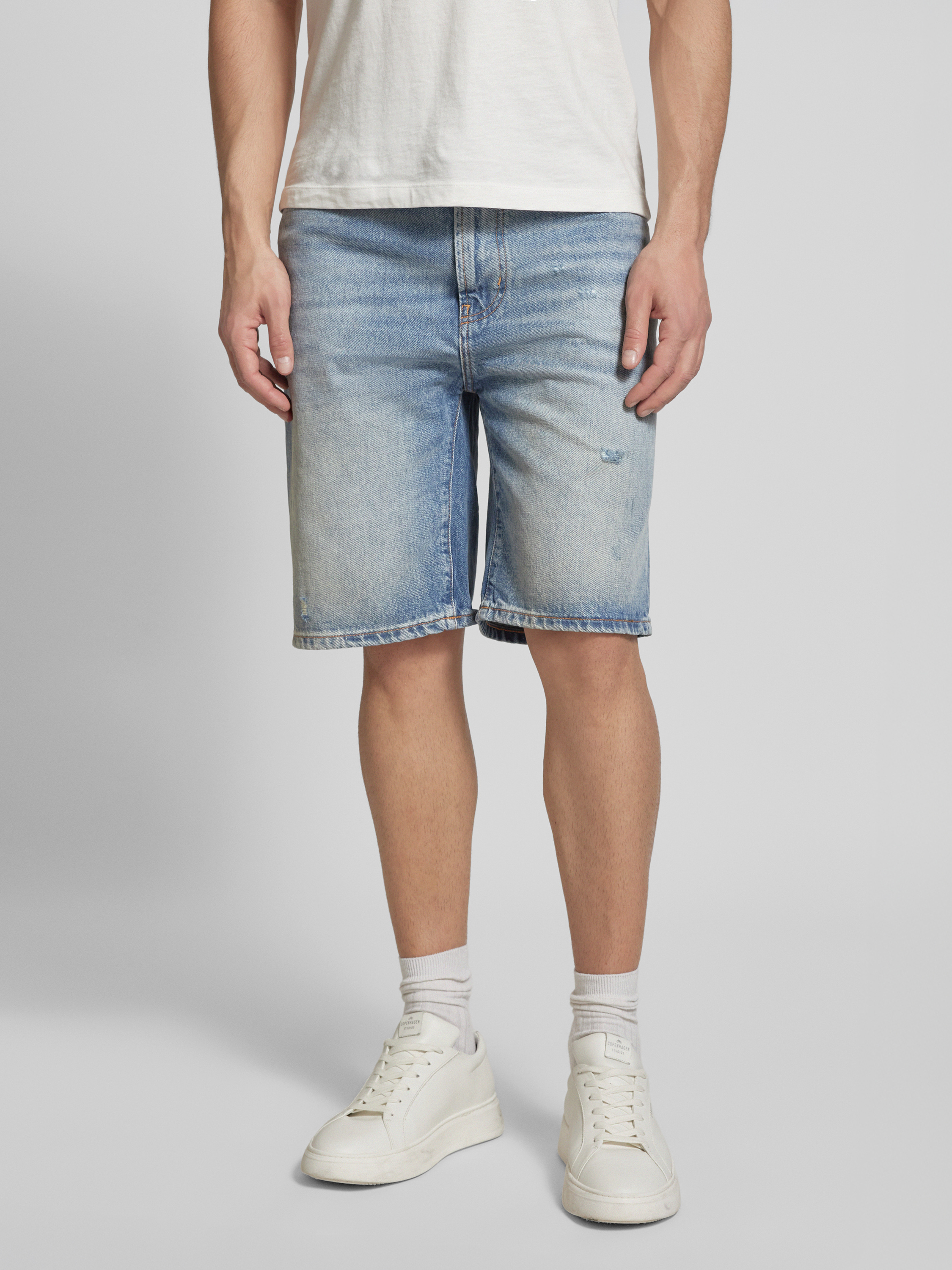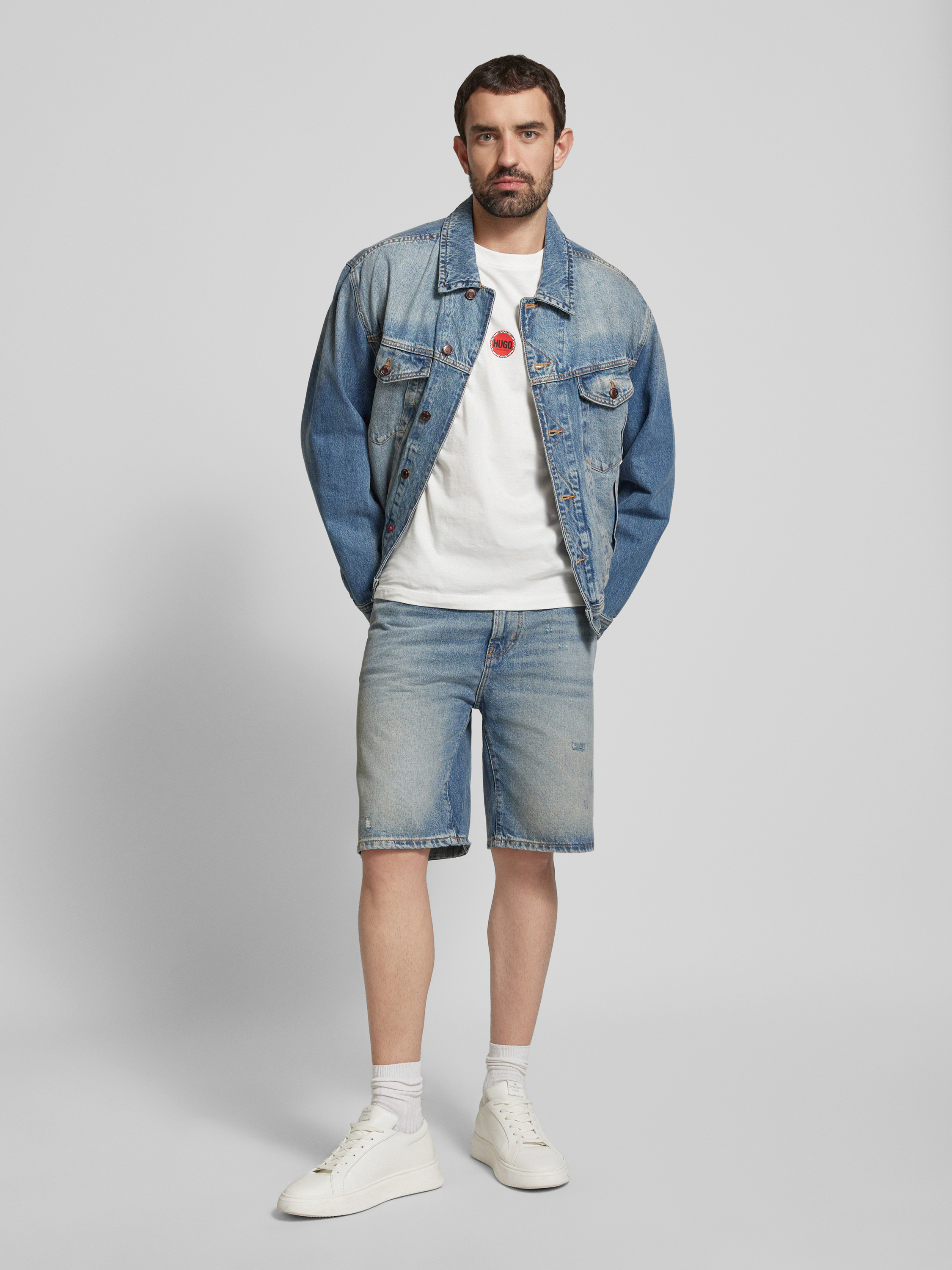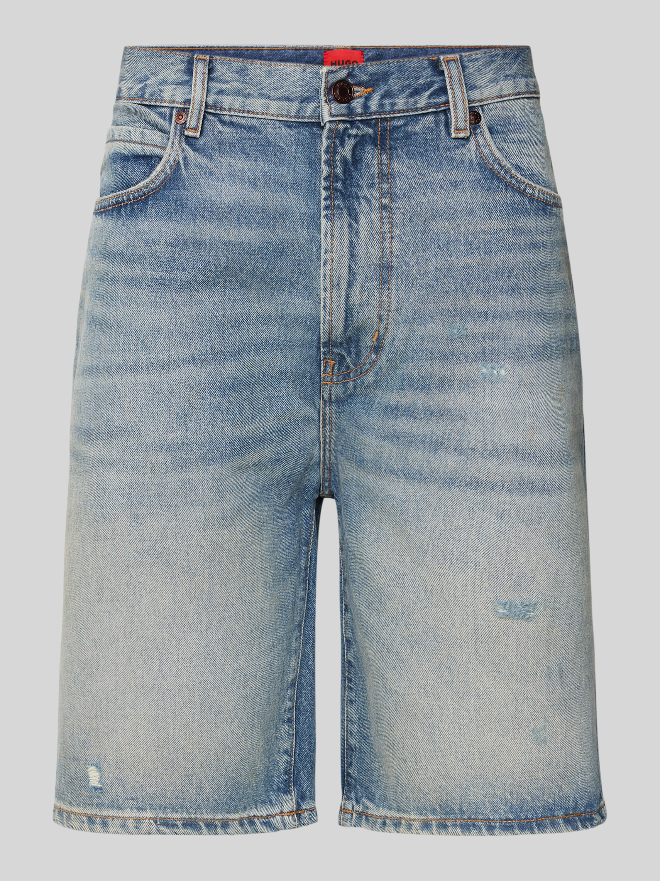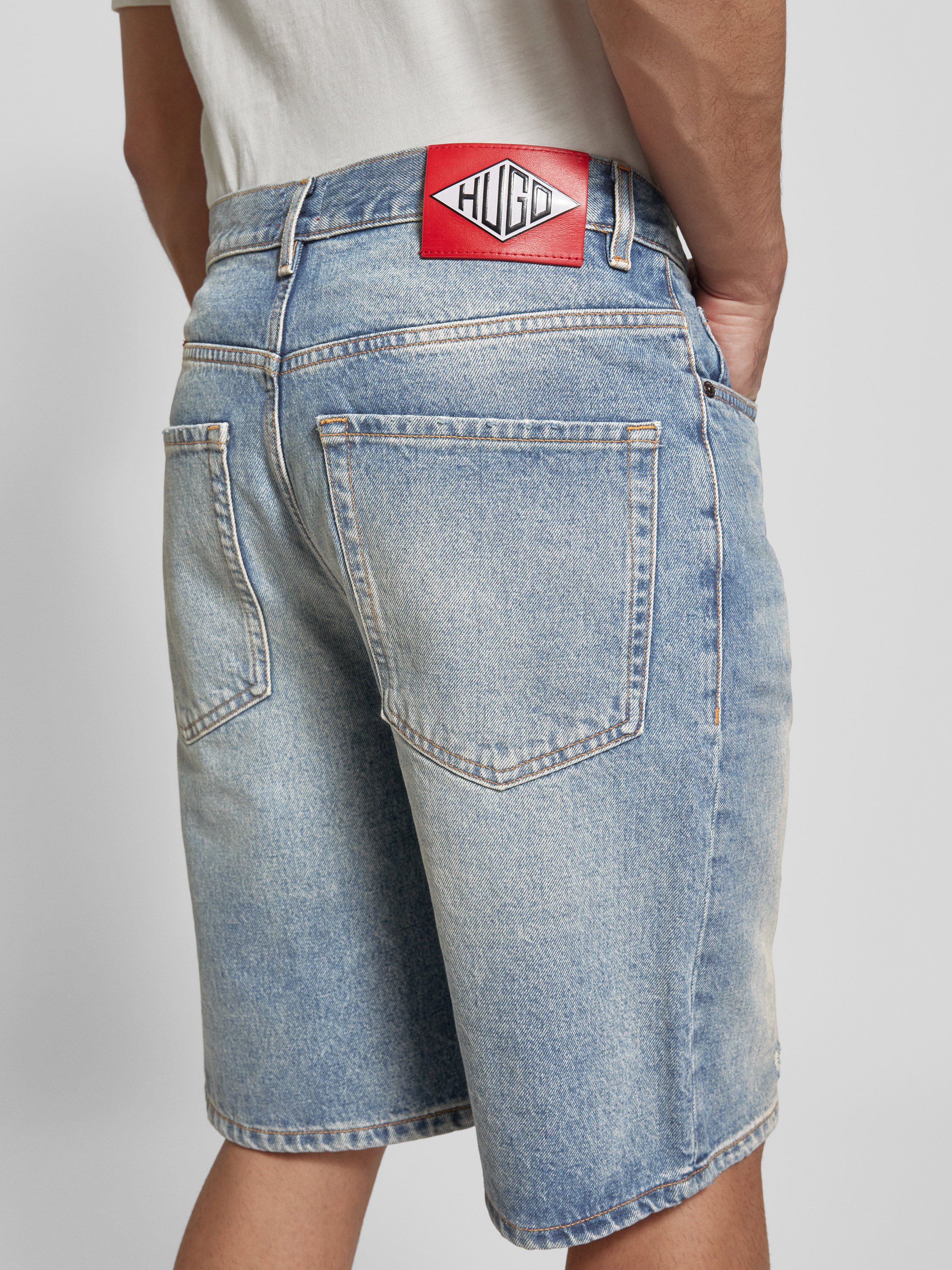 Die Herren Jeansshorts von HUGO bieten dank des geraden Schnitts und der reinen Baumwolle einen angenehmen Tragekomfort. Das 5-Pocket-Design sorgt für praktische Vielseitigkeit. Der dezente Used-Look verleiht dem Kleidungsstück eine moderne Note, die sich ideal für entspannte Anlässe eignet.