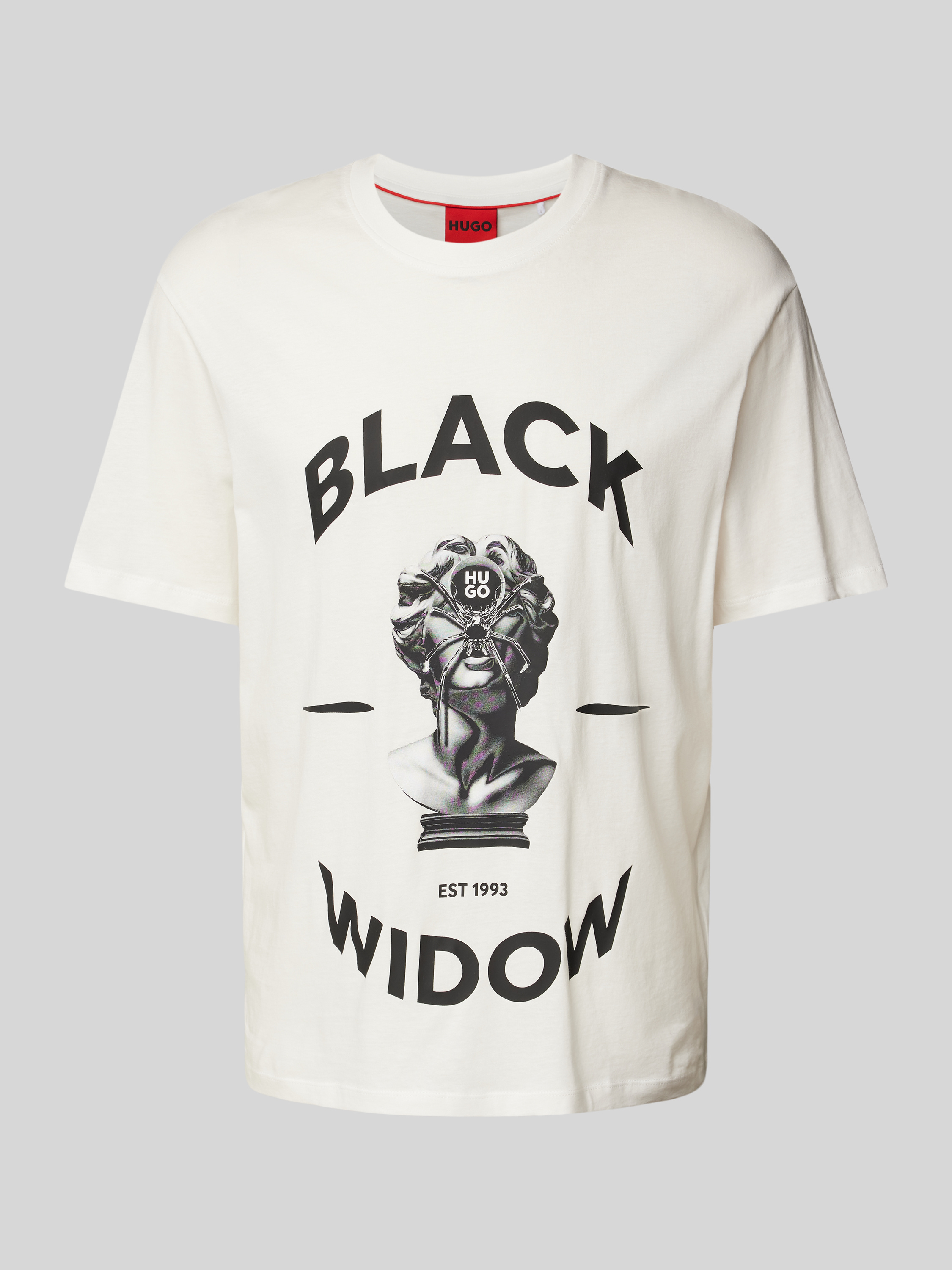 Das Herren T-Shirt von HUGO, Modell 'Dostalgi', zeichnet sich durch seinen entspannten Oversized-Schnitt und den klassischen Rundhalsausschnitt aus. Gefertigt aus reiner Baumwolle, sorgt es für ein angenehmes Tragegefühl und bietet Bewegungsfreiheit. Die überschnittenen Schultern und der dezente Label-Print runden das Design ab.