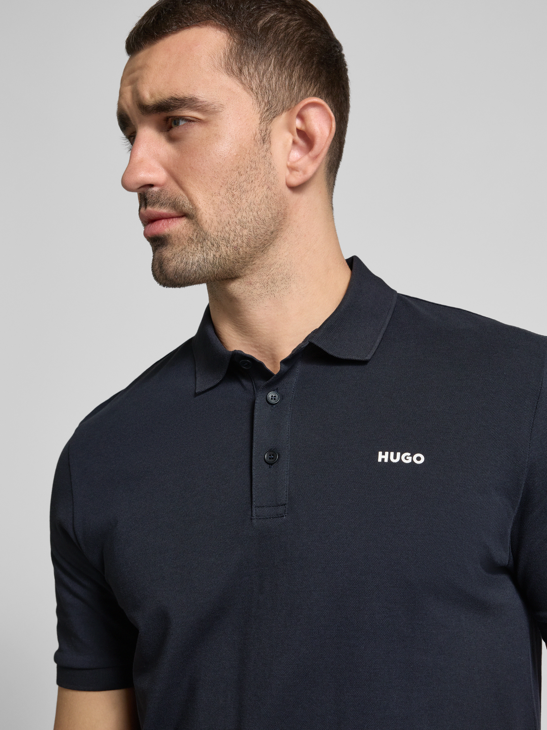 HUGOPoloshirt mit Label-Print Modell 'Donos' in dunkelblau