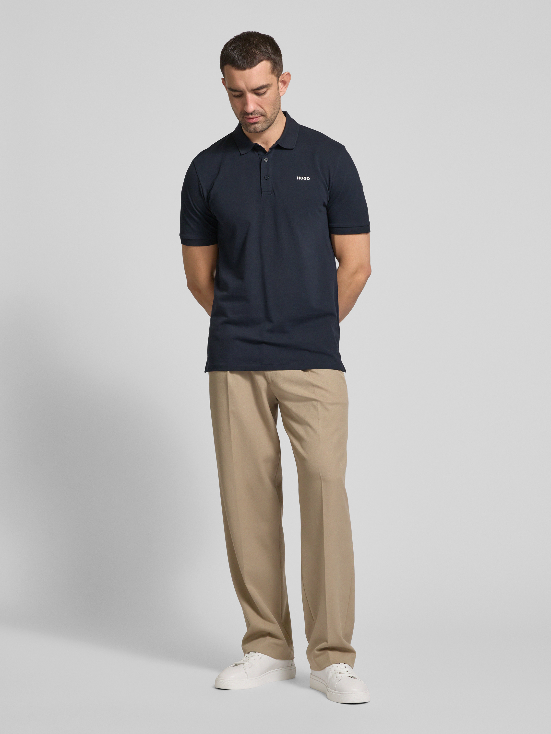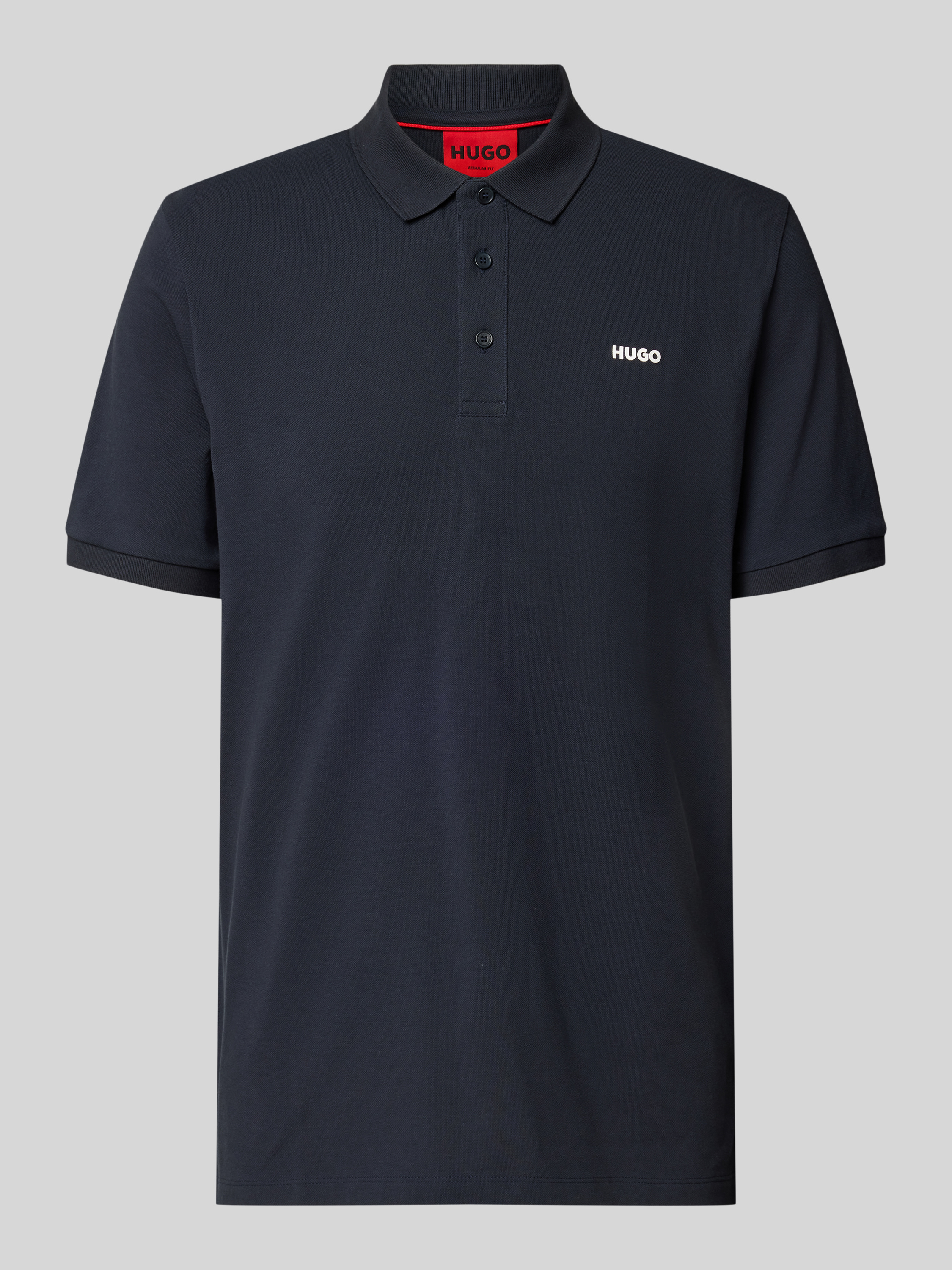 Das Poloshirt Modell 'Donos' von HUGO aus reiner Baumwolle bietet einen komfortablen Regular Fit. Der klassische Polokragen und der dezente Label-Print verleihen dem Shirt eine zeitlose Note, während die gerippten Ärmelabschlüsse für einen angenehmen Sitz sorgen. Ideal für vielseitige Outfits.