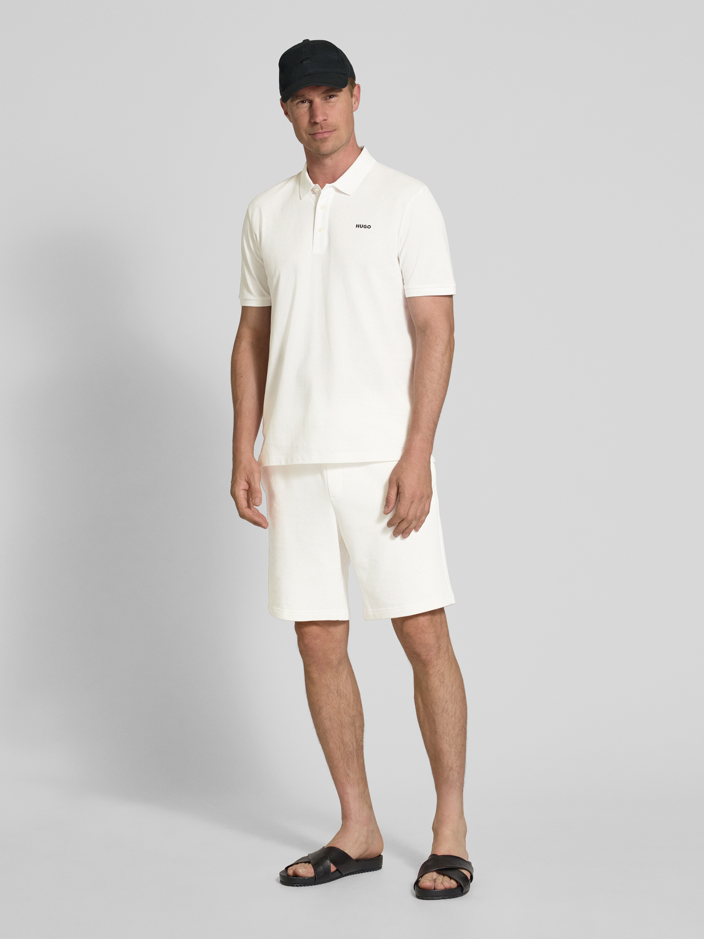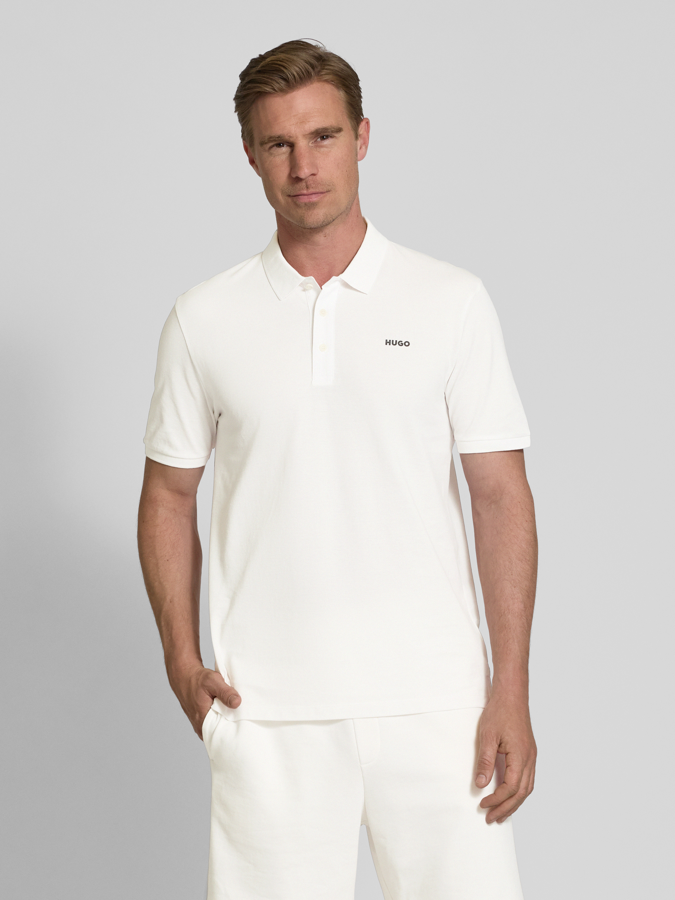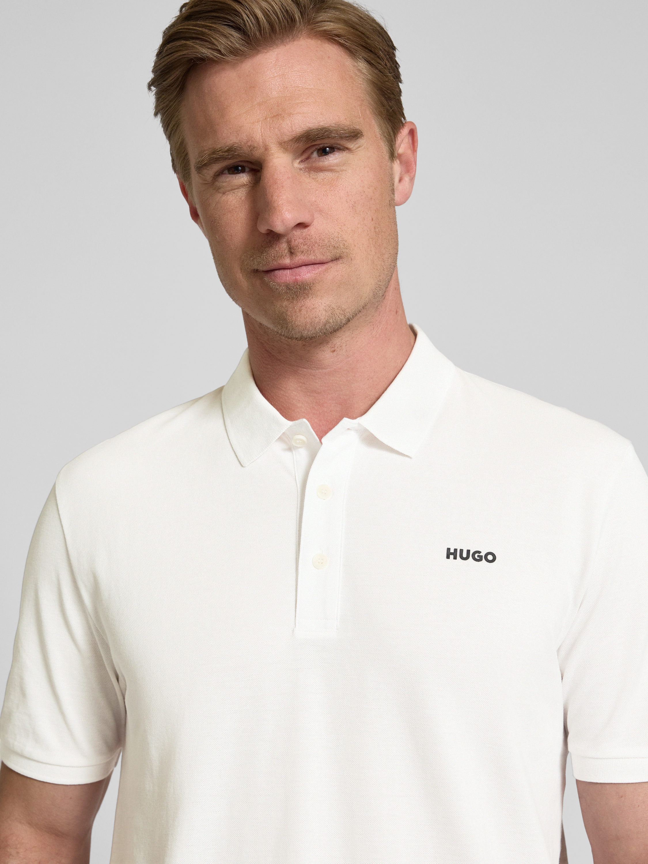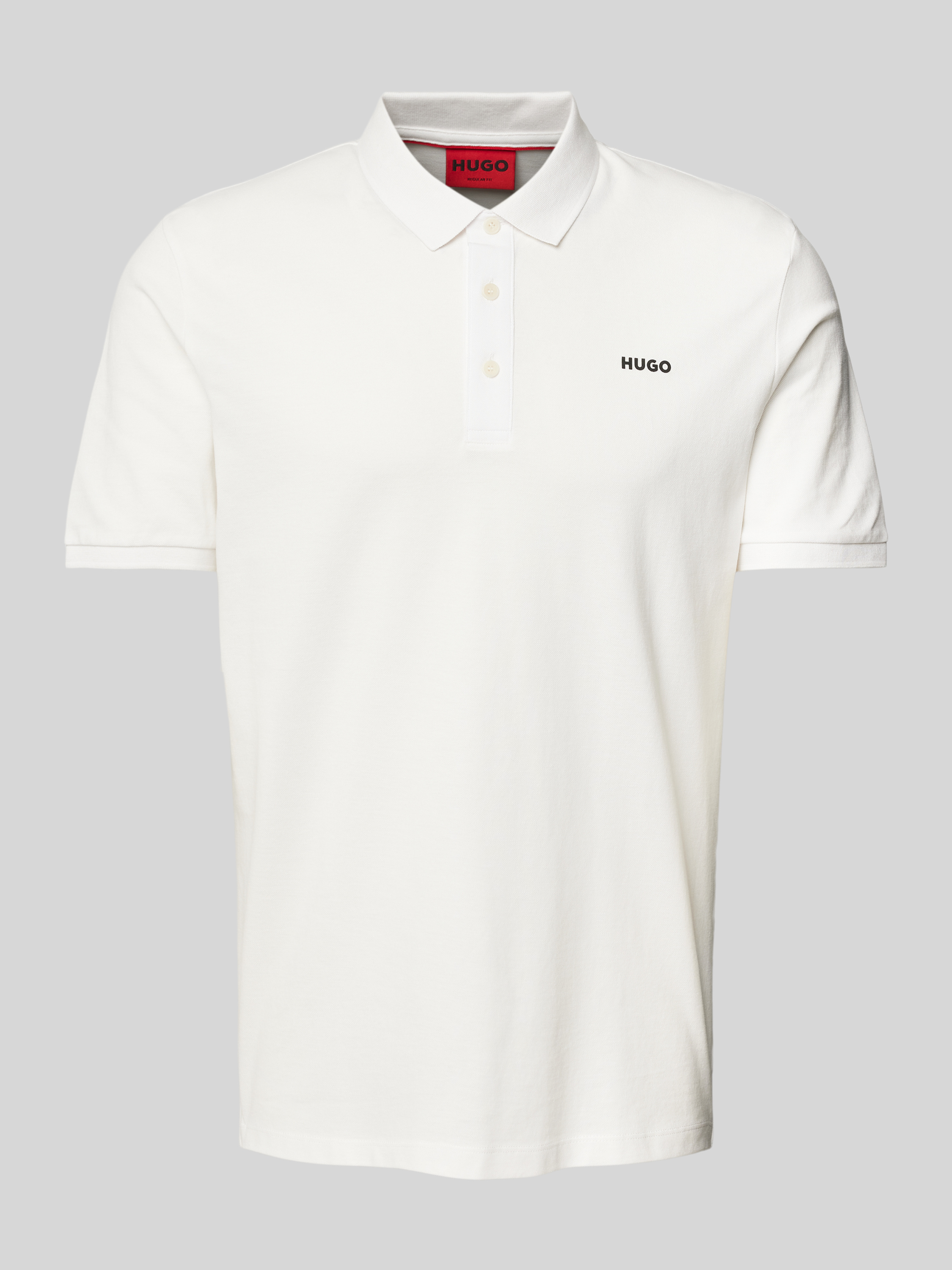 Das Poloshirt 'Donos' von HUGO vereint klassische Eleganz mit modernem Design durch seinen charakteristischen Label-Print. Gefertigt aus reiner Baumwolle, bietet es einen angenehmen Tragekomfort und eine vielseitige Passform. Der Polokragen und die gerippten Ärmelabschlüsse runden den Look stilvoll ab.