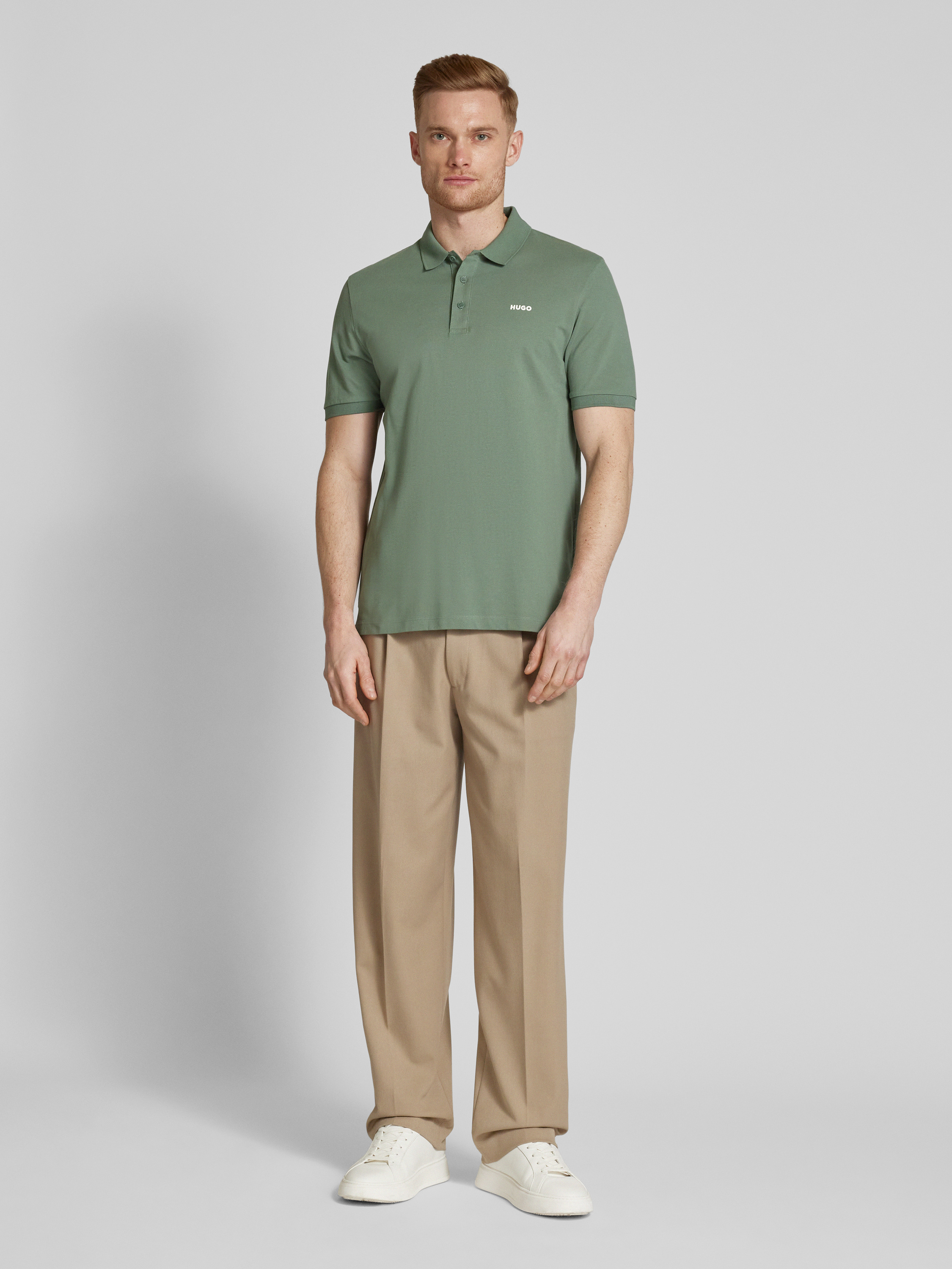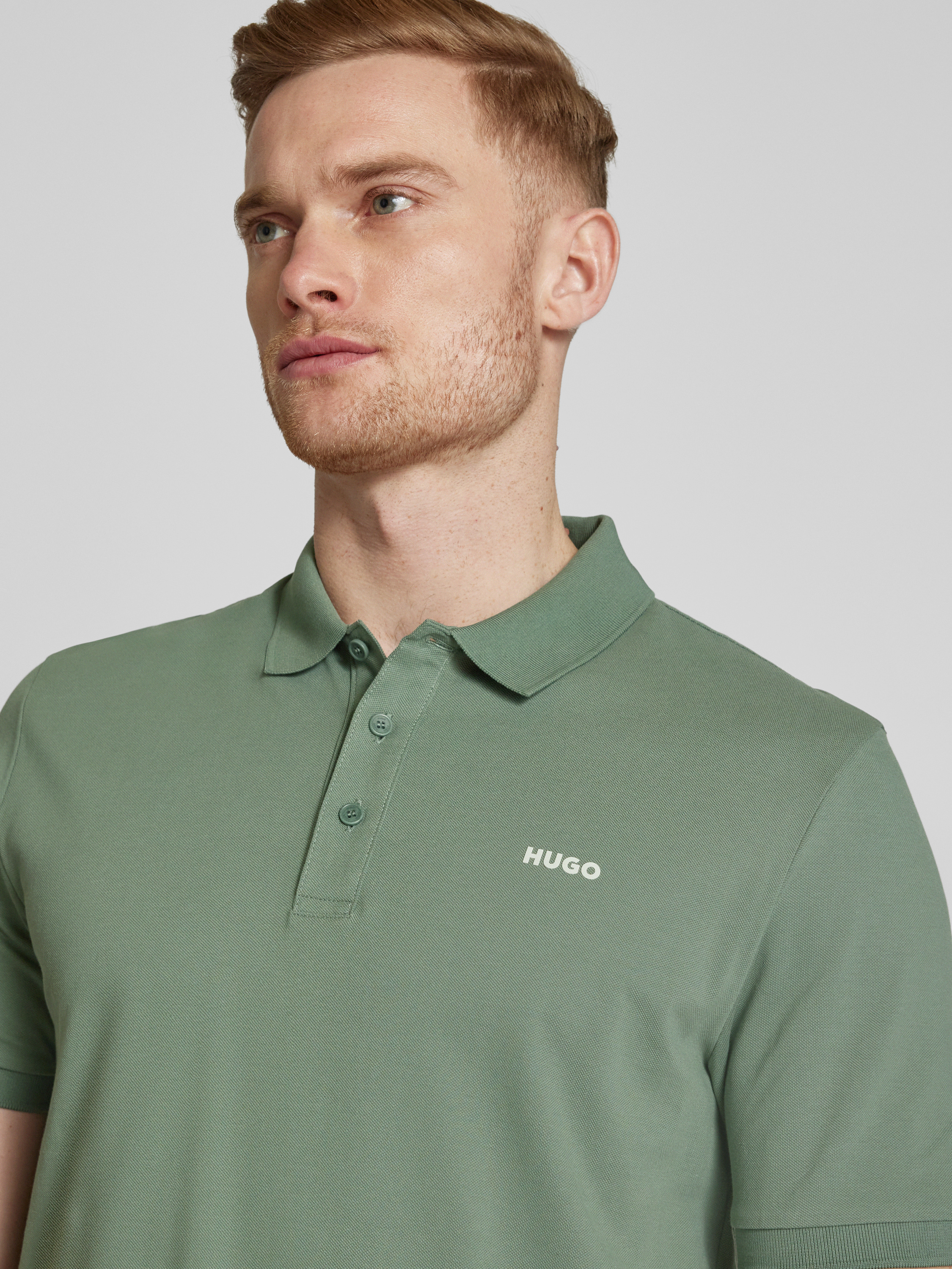 Das Poloshirt Modell 'Donos' von HUGO aus reiner Baumwolle bietet einen komfortablen Regular Fit. Der klassische Polokragen und der dezente Label-Print verleihen dem Shirt eine zeitlose Note, während die gerippten Ärmelabschlüsse für einen angenehmen Sitz sorgen. Ideal für vielseitige Outfits.
