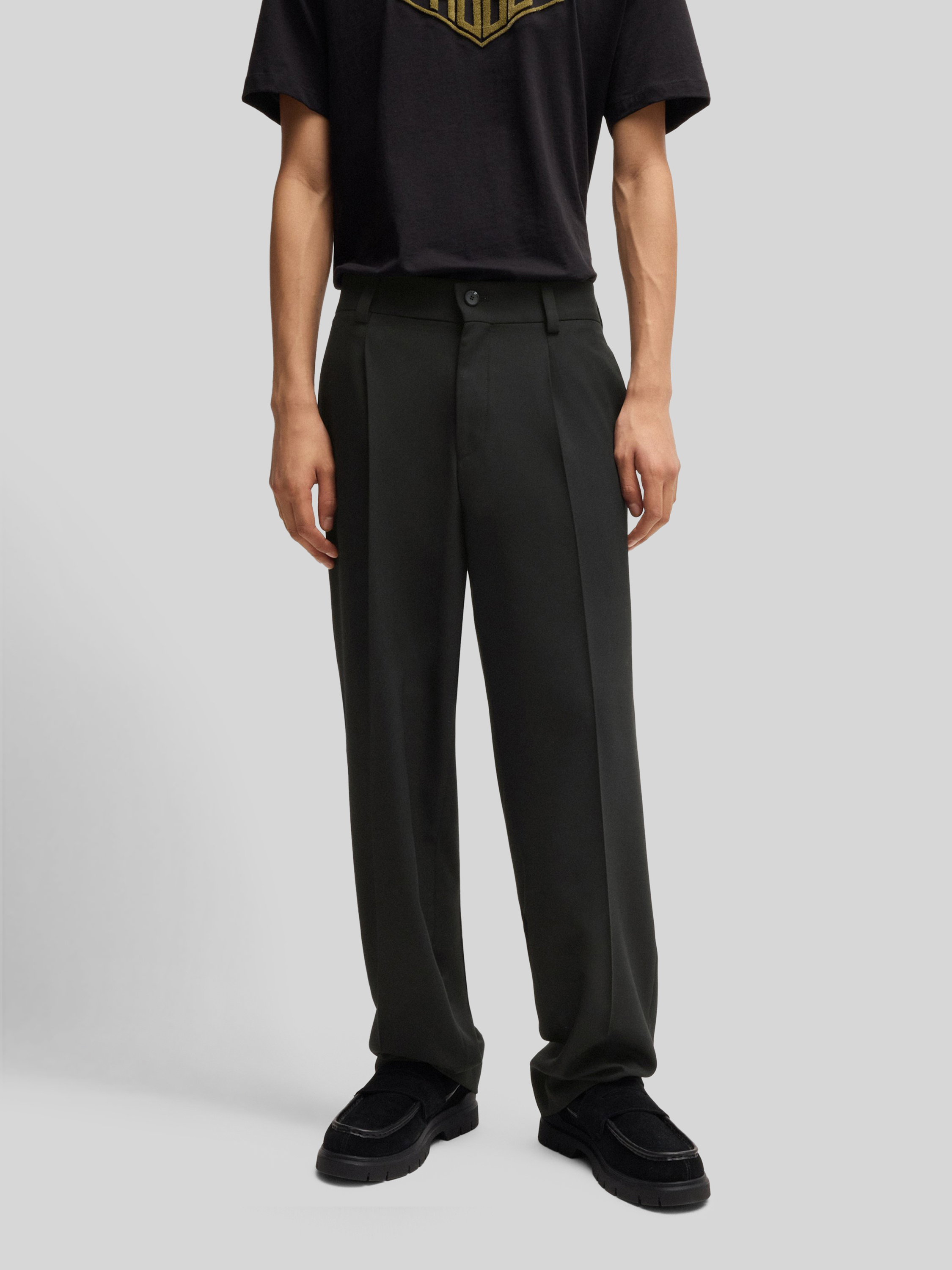 Die Herren Anzughose von HUGO, Modell 'Flips251X', fällt durch ihren Regular-Fit-Schnitt angenehm locker und sorgt so für hohen Komfort im Alltag. Die klassische, unifarbene Optik und die markanten Bügelfalten ermöglichen vielseitige Kombinationen – vom Büro bis zum besonderen Anlass. Dank des leichten Stretch-Twills fühlt sich die Hose flexibel an und bleibt auch bei längeren Tragezeiten formstabil.