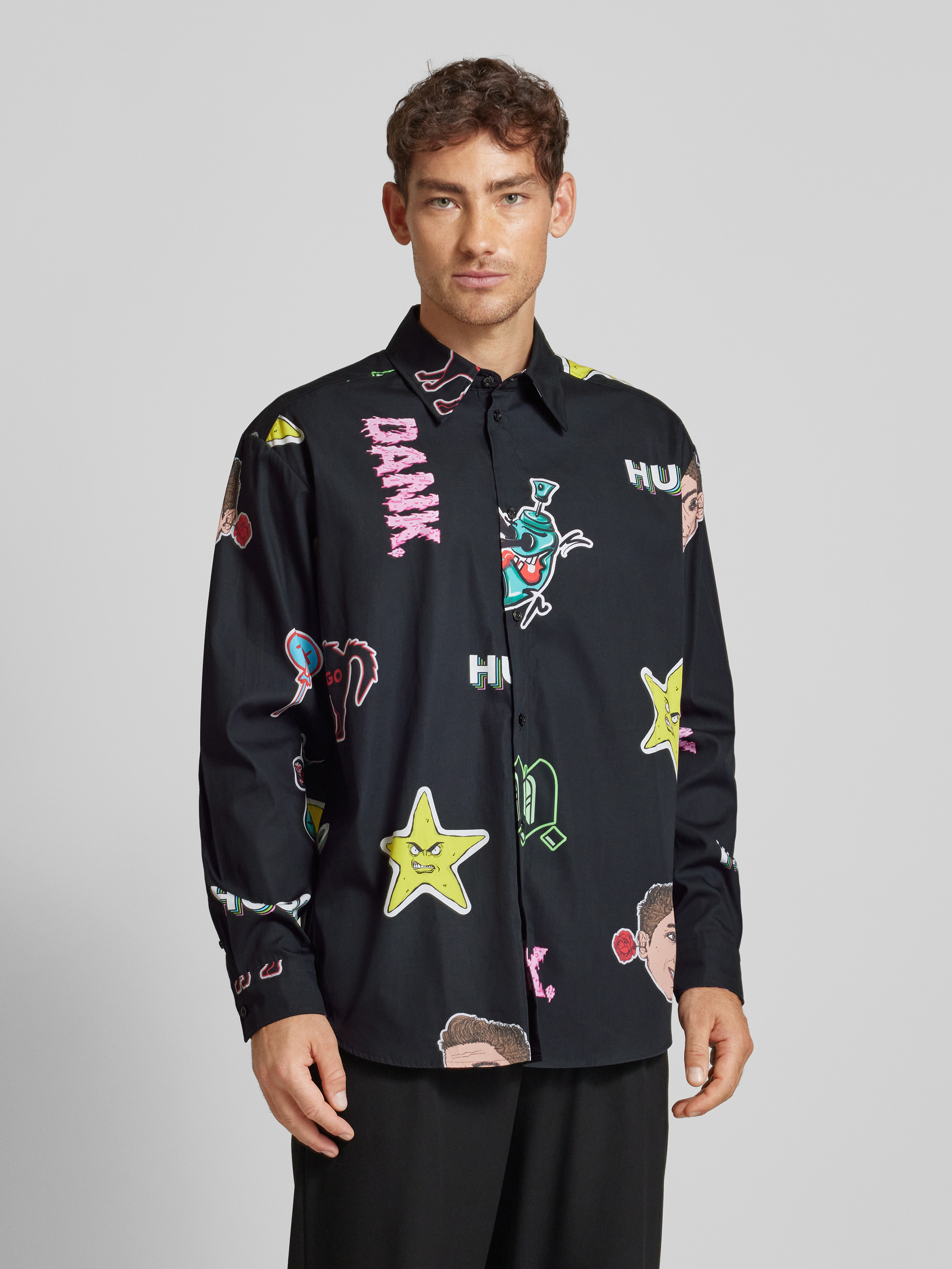 HUGORegular Fit Freizeithemd mit Kentkragen Modell 'Ellisoe' in black