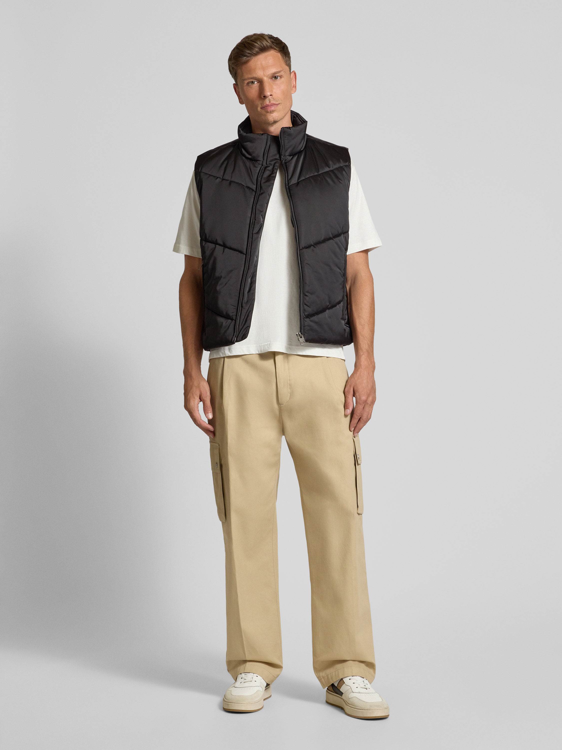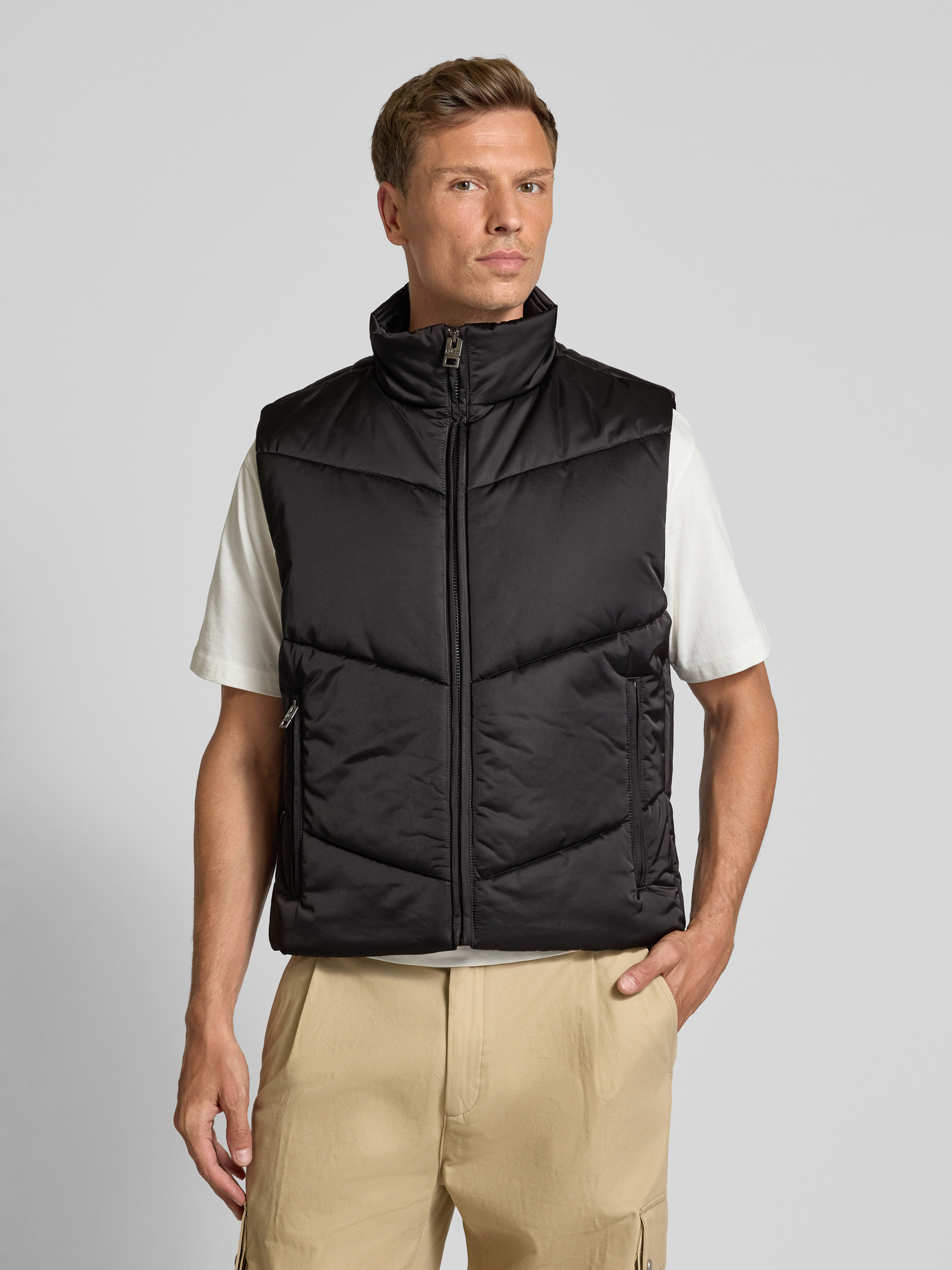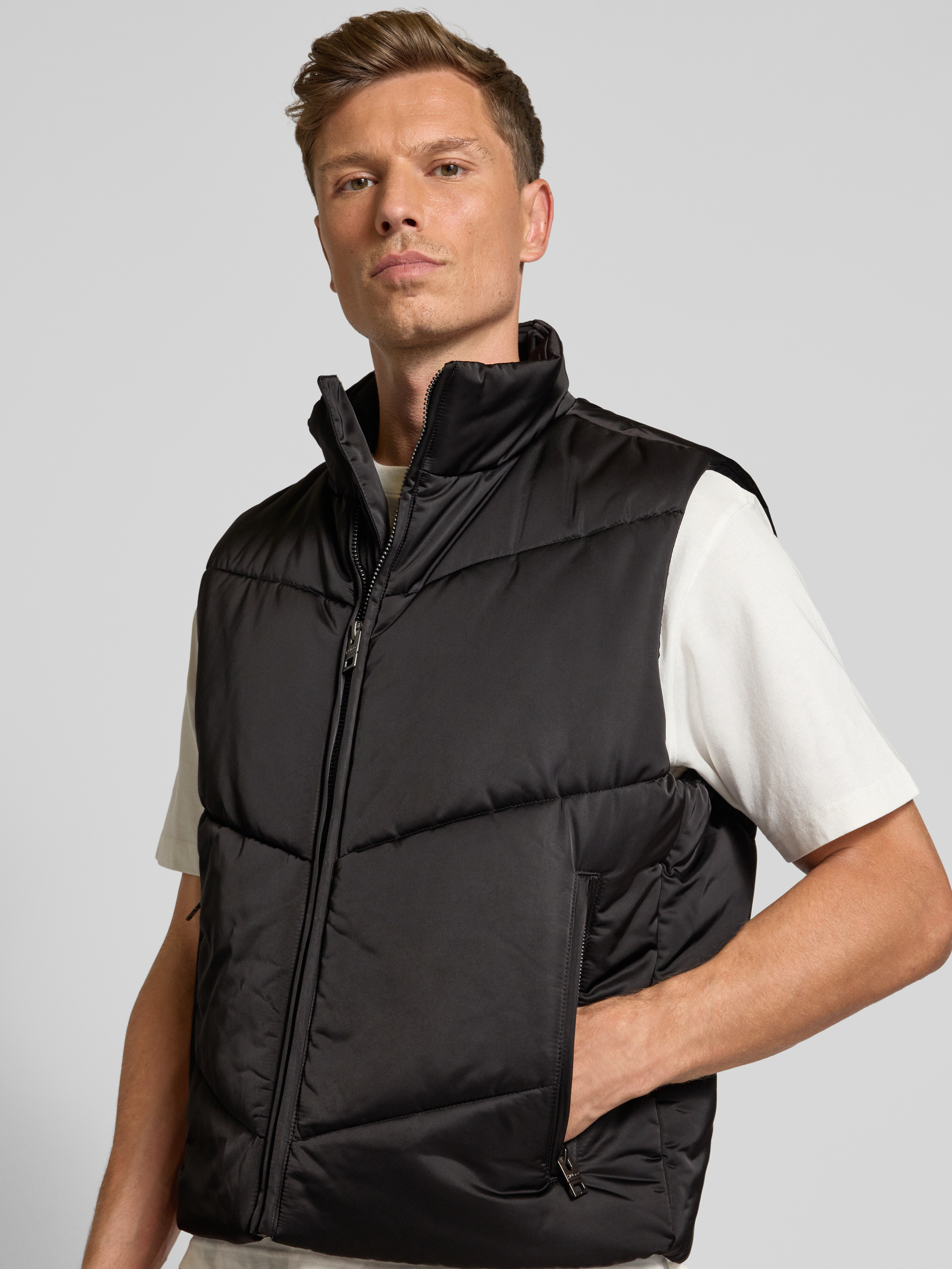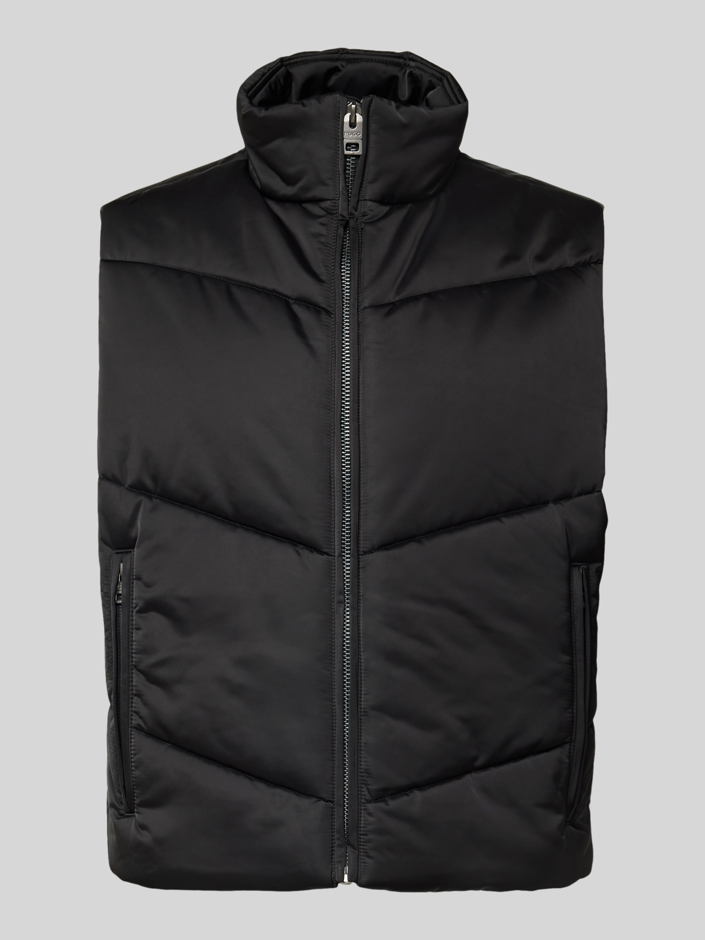 Die Herren Steppweste 'Berolino' von HUGO vereint stilvolle Schlichtheit mit funktionaler Eleganz. Ihr Regular Fit sorgt für eine bequeme Passform, während der wattierte Satin für angenehme Wärme sorgt. Der Stehkragen und die unifarbene Optik runden das Design harmonisch ab.