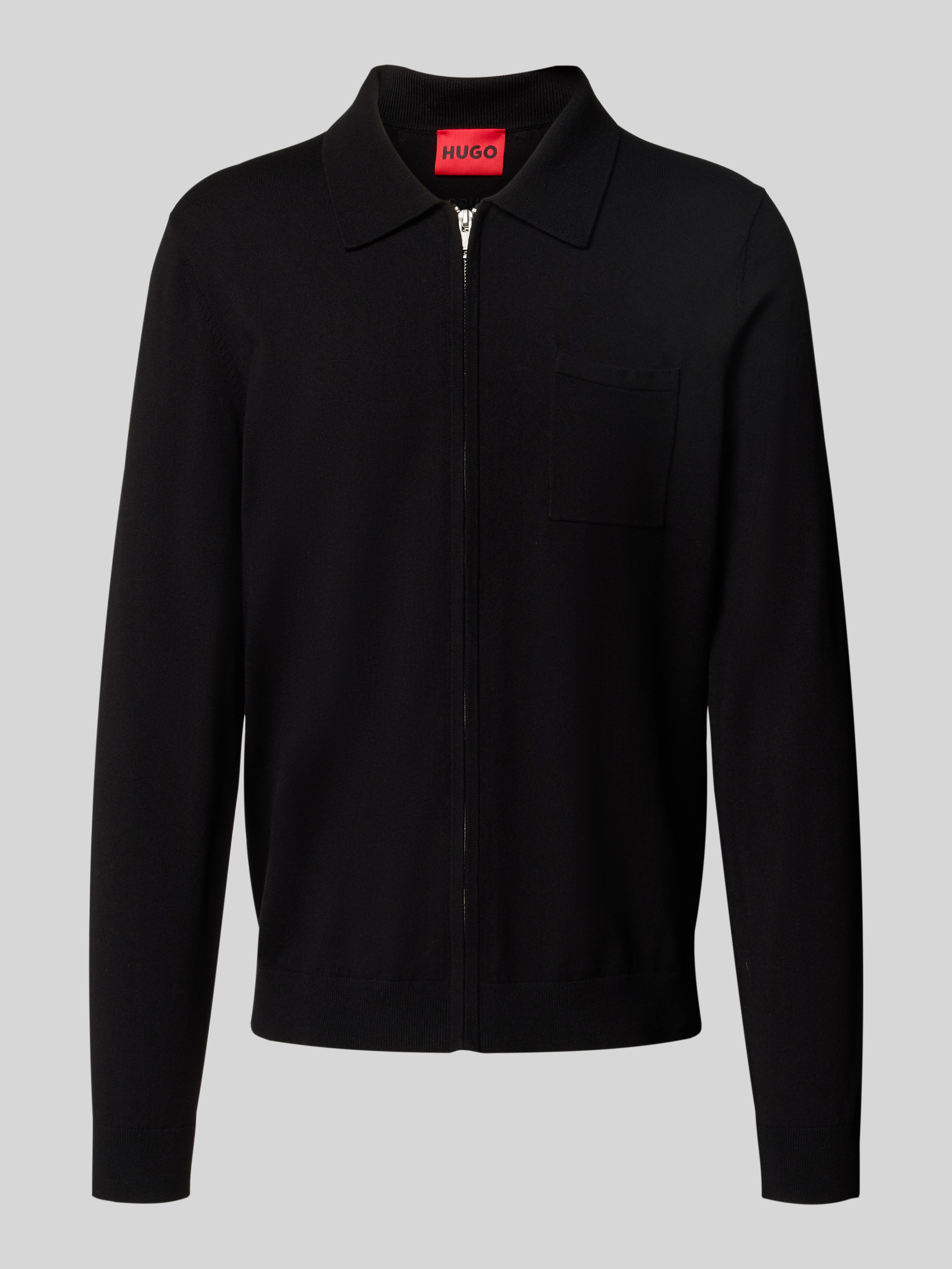 Die Regular Fit Strickjacke 'San Jean' von HUGO präsentiert sich in schlichter Eleganz und bietet durch den Viskose-Mix ein angenehmes Tragegefühl. Der Umlegekragen verleiht der Jacke eine klassische Note, während die Brusttasche praktische Funktionalität hinzufügt. Ideal für vielseitige Kombinationen im Alltag.