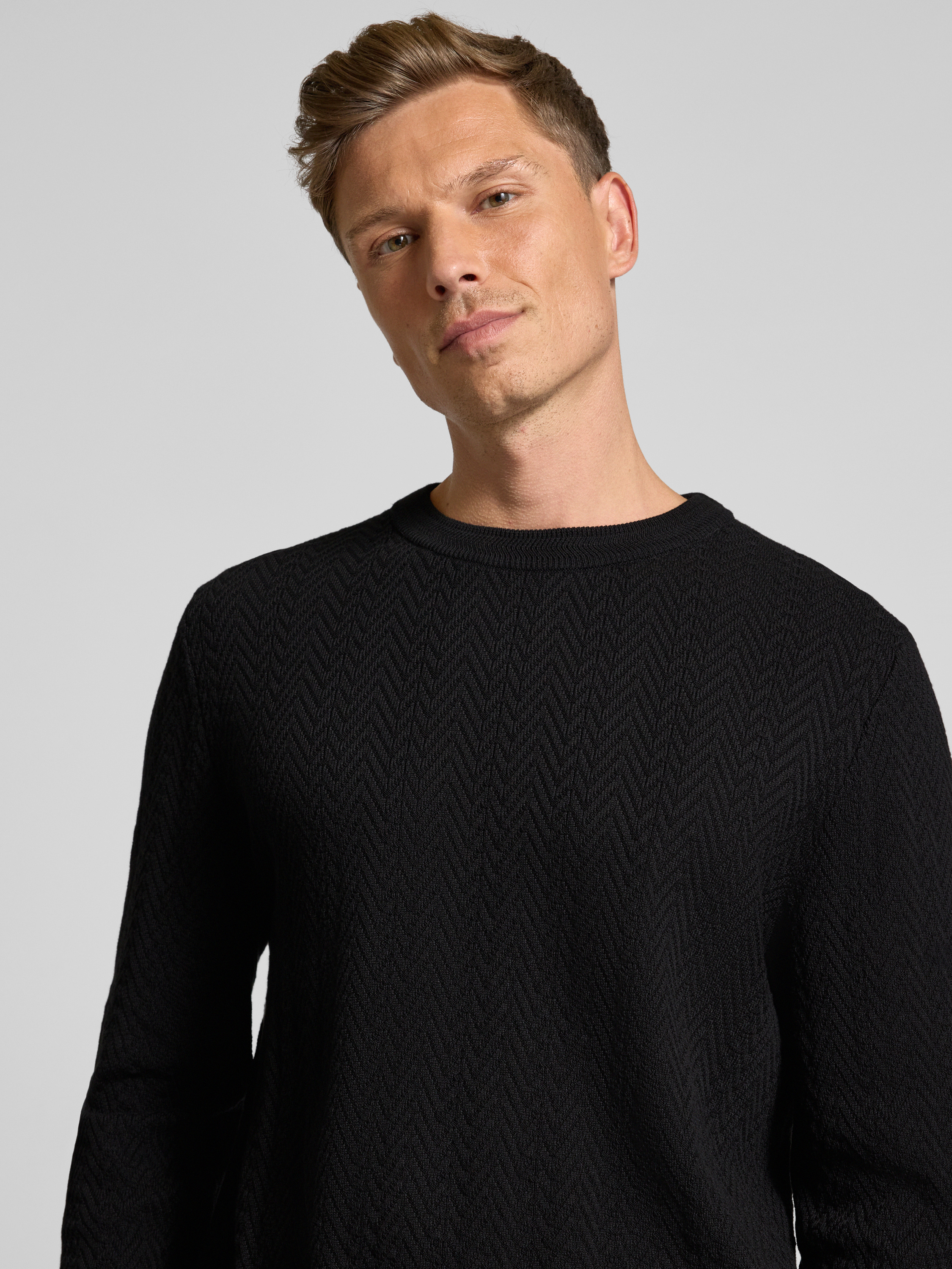Der Herrenpullover HUGO Simo fällt durch seine strukturierte Optik im Fischgrätmuster auf und sitzt angenehm locker dank seines Regular Fit. Reine Baumwolle sorgt für ein angenehmes Hautgefühl, während der klassische Rundhalsausschnitt vielseitige Kombinationen im Alltag ermöglicht. Dezentes Label Stitching rundet das Design ab.