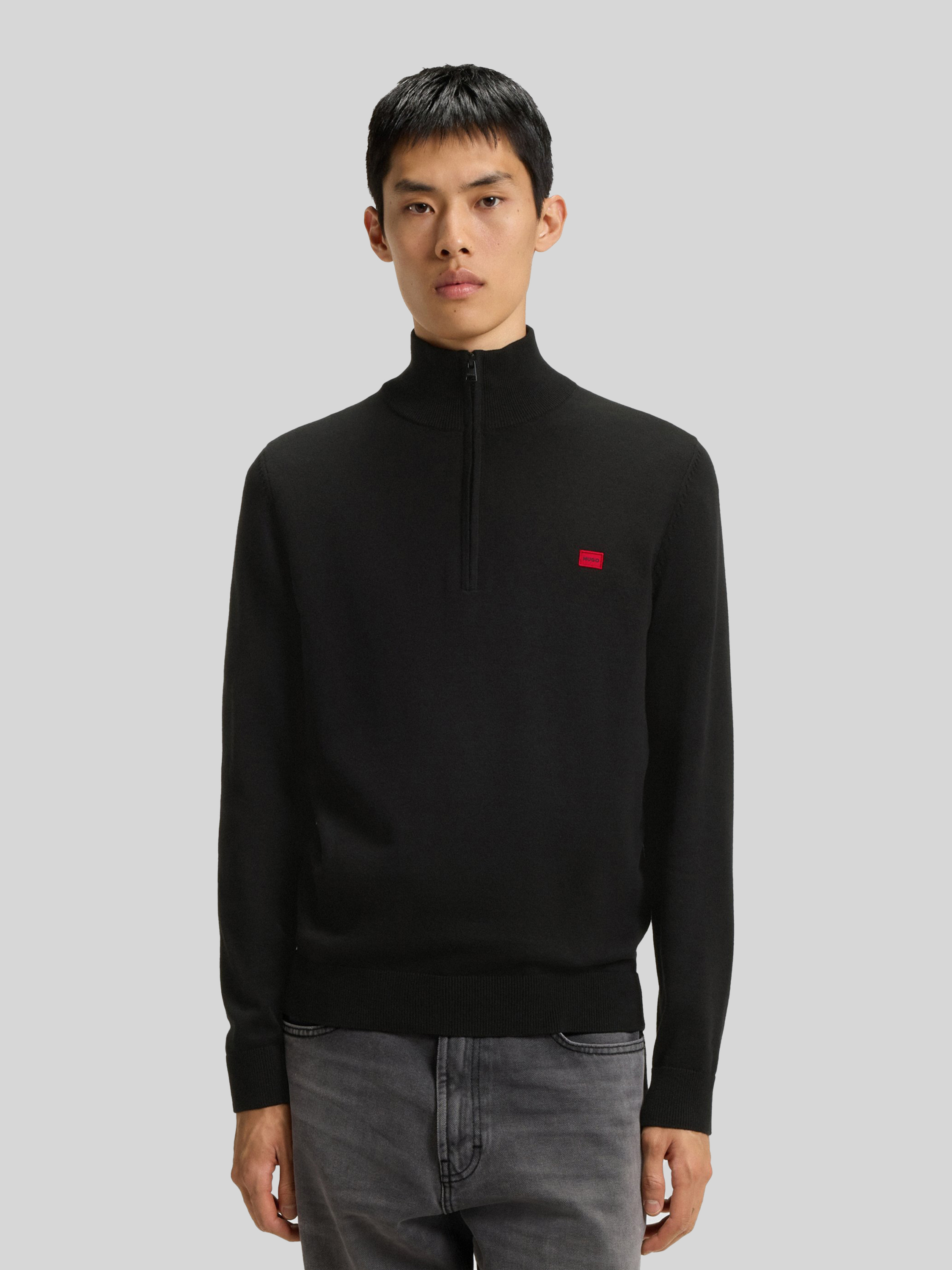 HUGORegular Fit Troyer aus reiner Baumwolle Modell 'SAN QUINTUS' in black