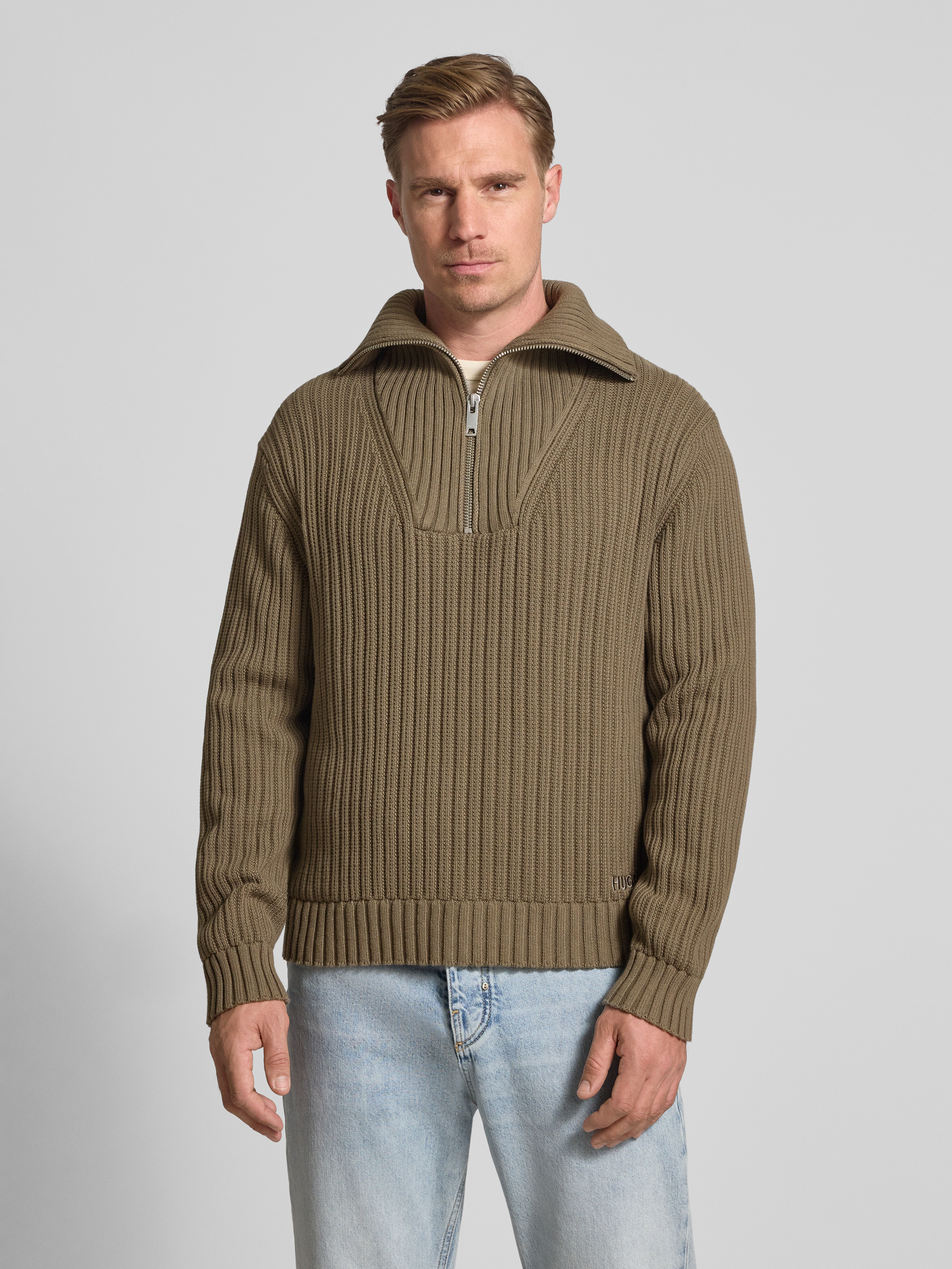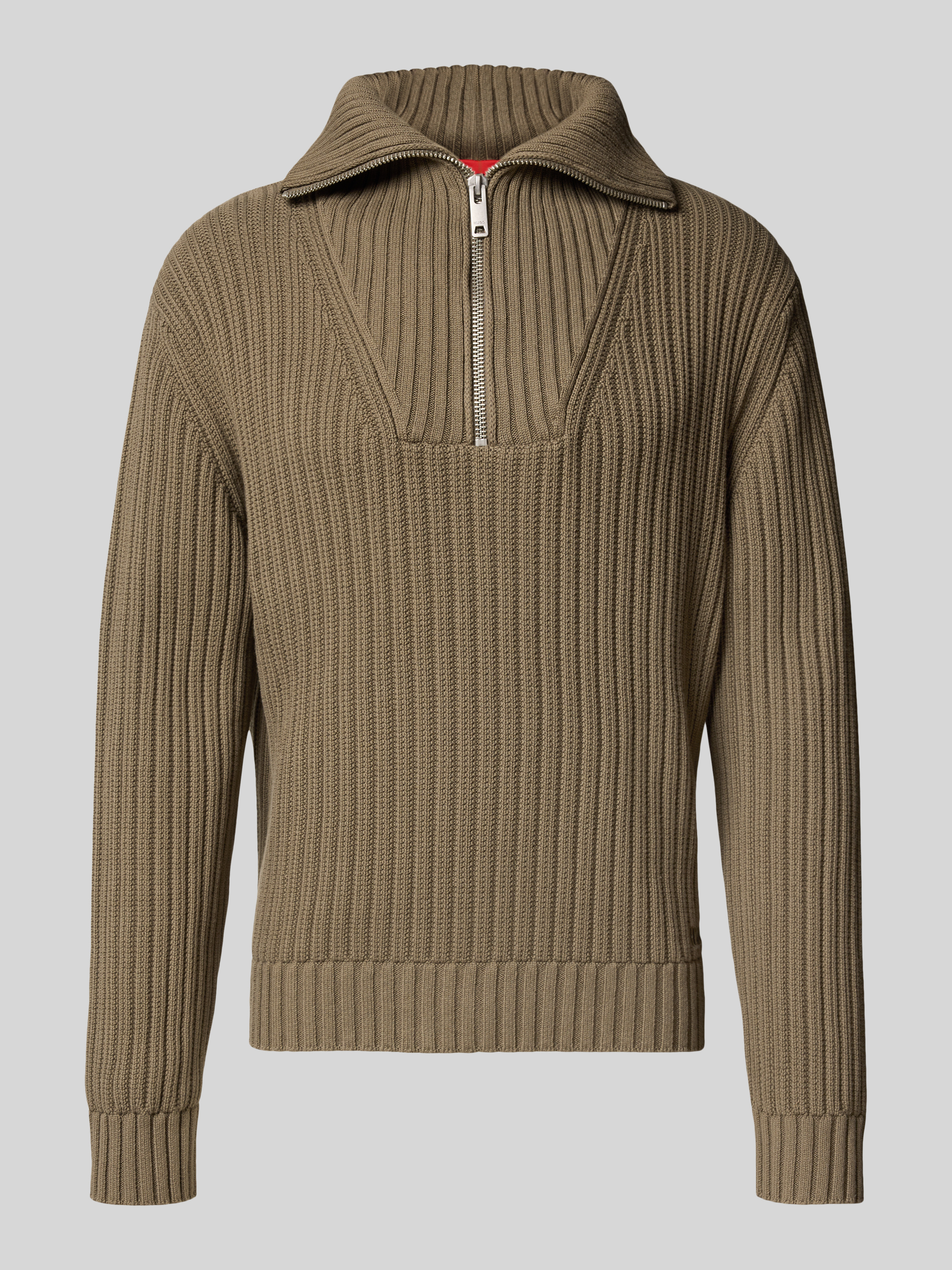 HUGORegular Fit Troyer aus reiner Baumwolle Modell 'SRIGG' in taupe