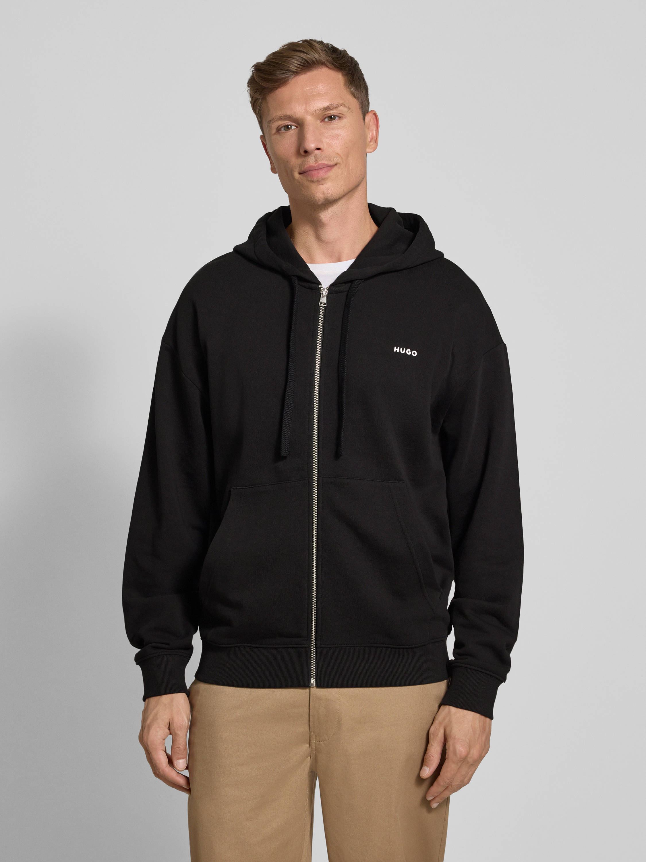 HUGORelaxed Fit Sweatjacke aus reiner Baumwolle Modell 'DAPOZIP' in black