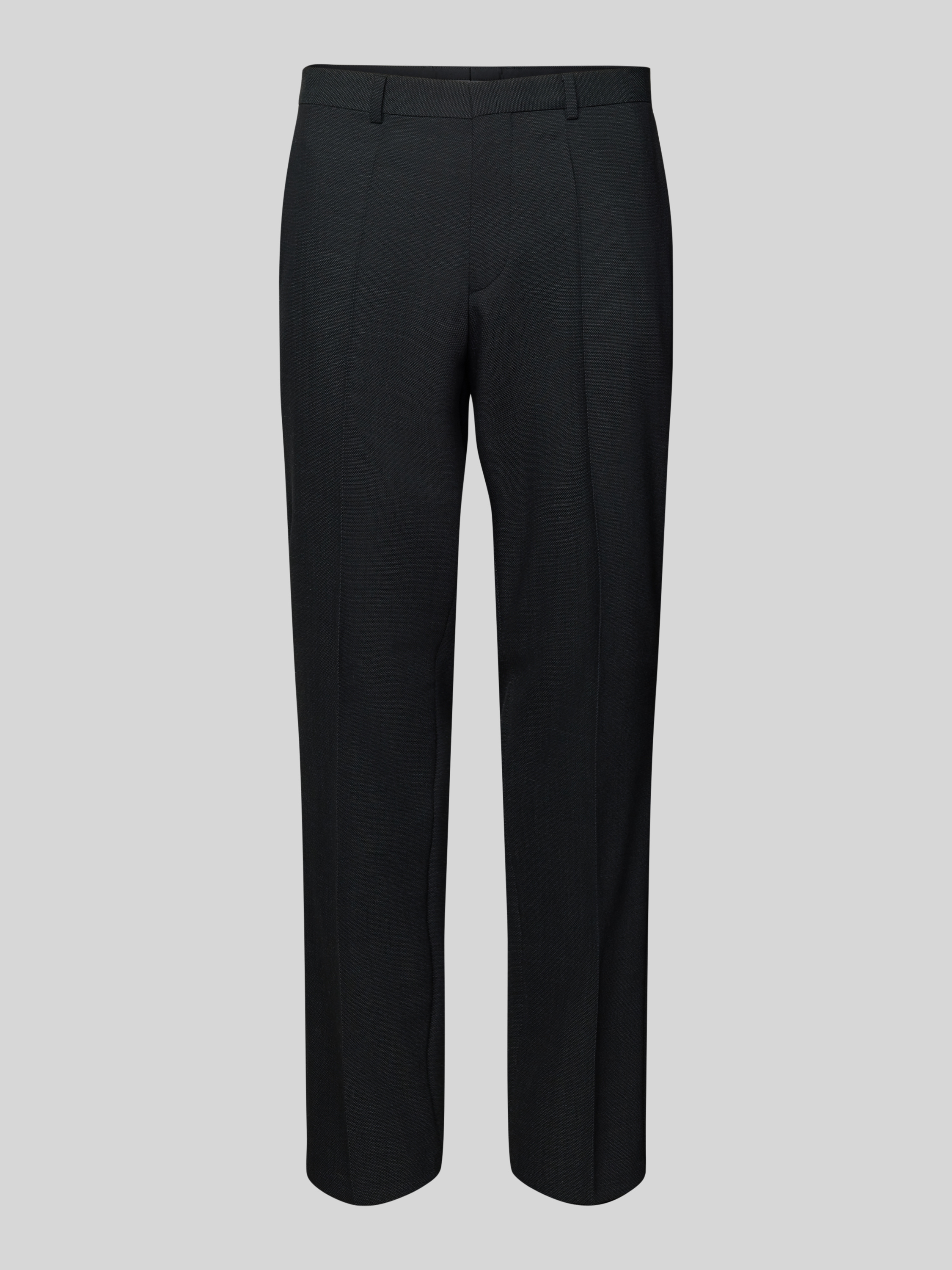 Die Herren Anzughose von HUGO, Modell 'Hesten', vereint einen modernen Slim Fit mit einem angenehmen Schurwoll-Anteil. Die feine Struktur und die Bundfalten sorgen für eine elegante Silhouette, während die praktischen Eingrifftaschen einen funktionalen Mehrwert bieten. Der Material-Mix garantiert ein komfortables Tragegefühl.