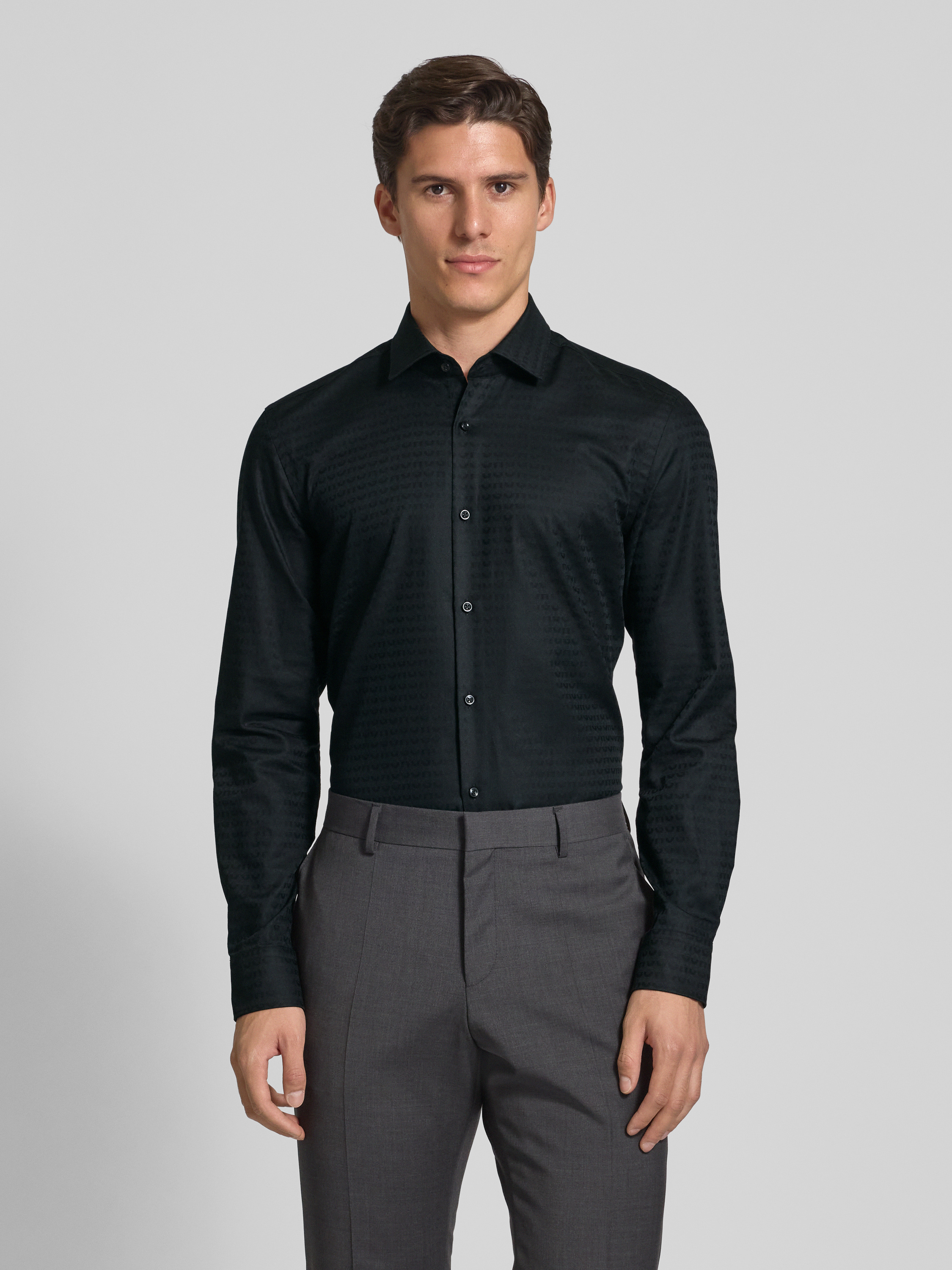 HUGOSlim Fit Business-Hemd mit Knopfleiste Modell 'Kenno' in black