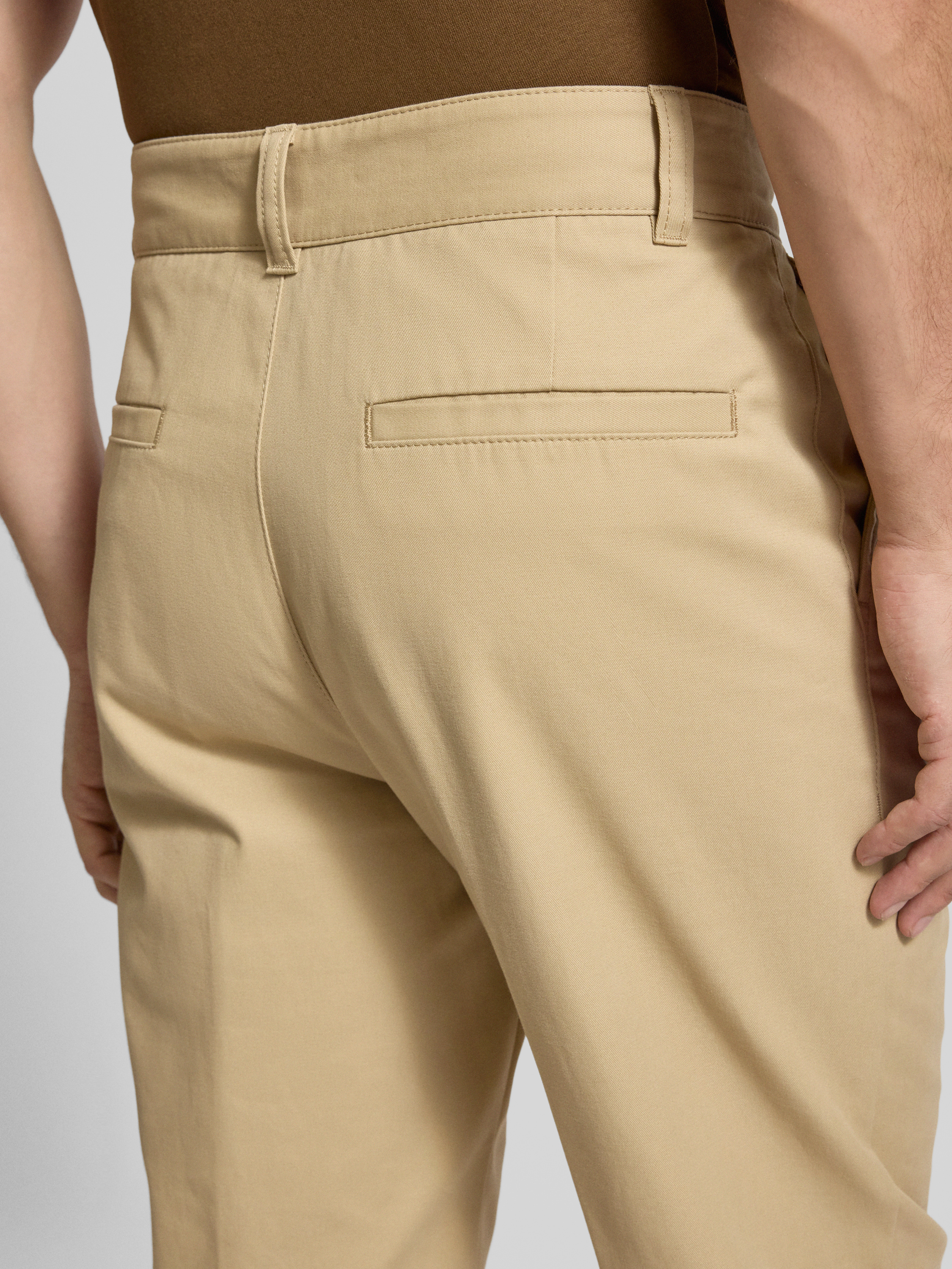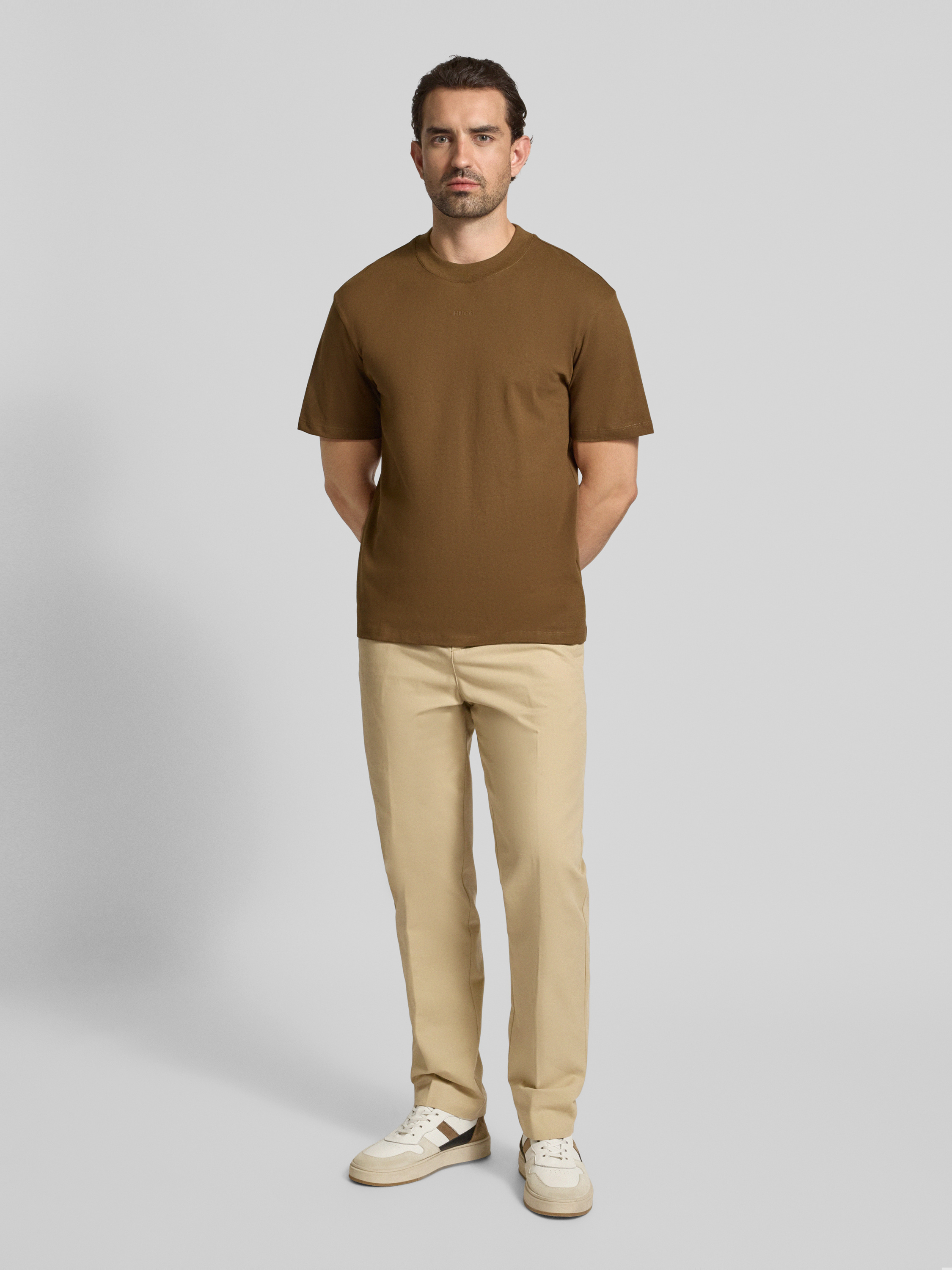 Die HUGO Slim Fit Chino 'Genar' aus reiner Baumwolle vereint zeitlose Eleganz mit einem angenehmen Tragegefühl. Durch die merzerisierte Twill-Verarbeitung fühlt sich der Stoff besonders weich an, während das weite Bein und die Bügelfalten einen modernen Look schaffen. Ideal für stilvolle Alltagslooks.
