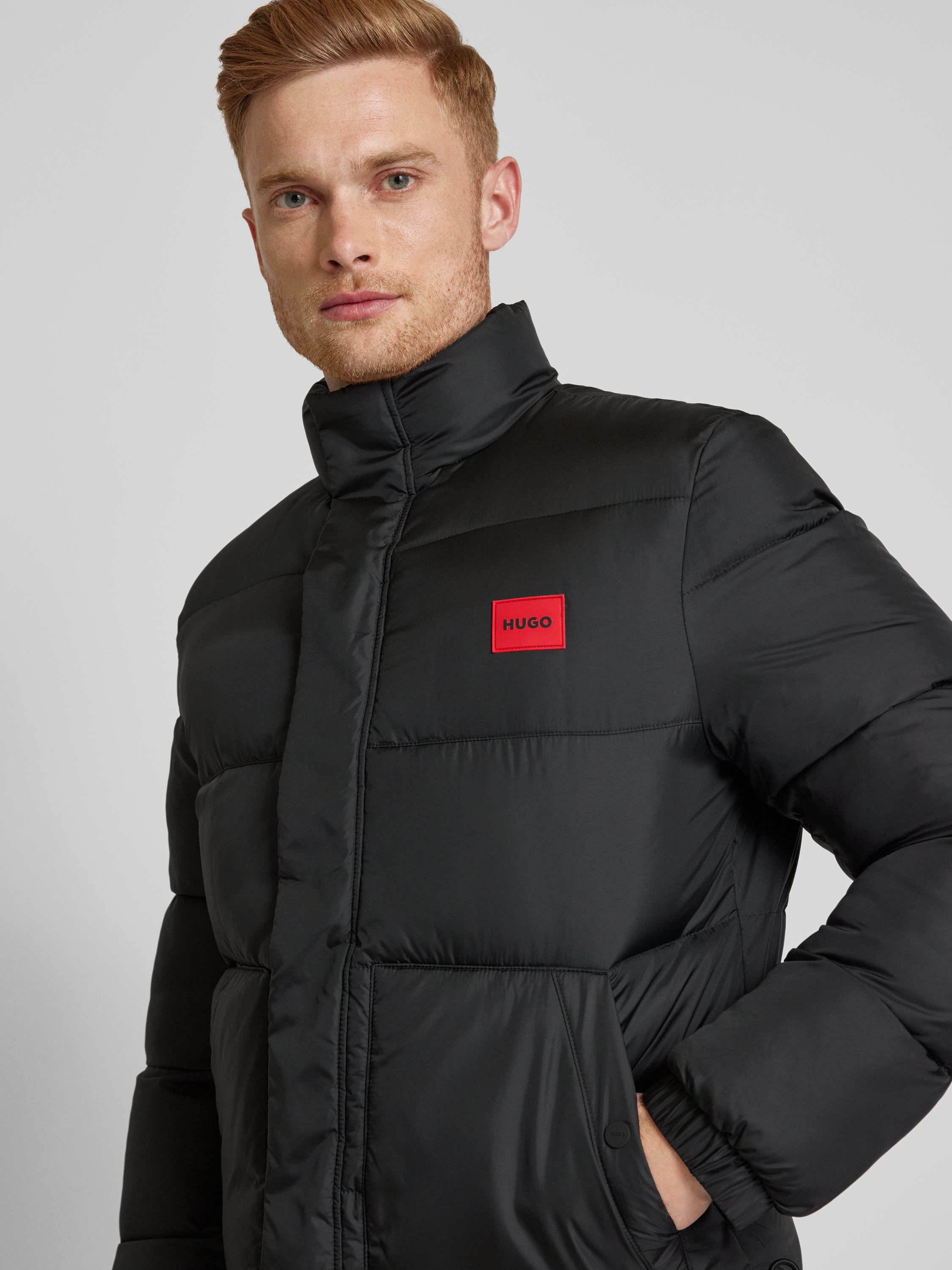Die HUGO Steppjacke im Modell 'Balto' überzeugt durch ihren geraden Schnitt und den stilvollen Stehkragen, der eine elegante Silhouette schafft. Praktische seitliche Eingrifftaschen bieten Stauraum, während die durchdachten Steppnähte Wärme und Komfort gewährleisten. Ideal für kühle Tage geeignet.