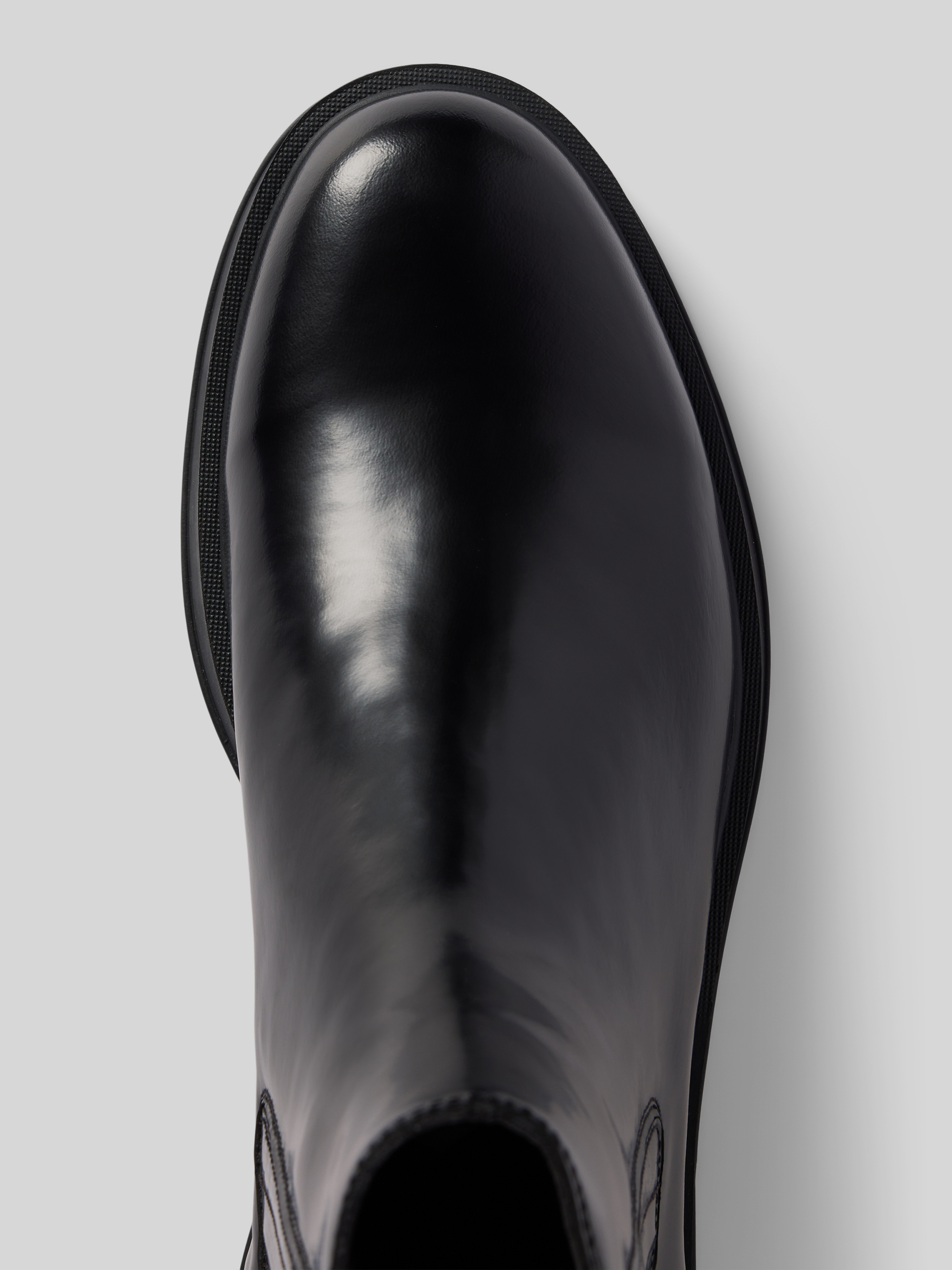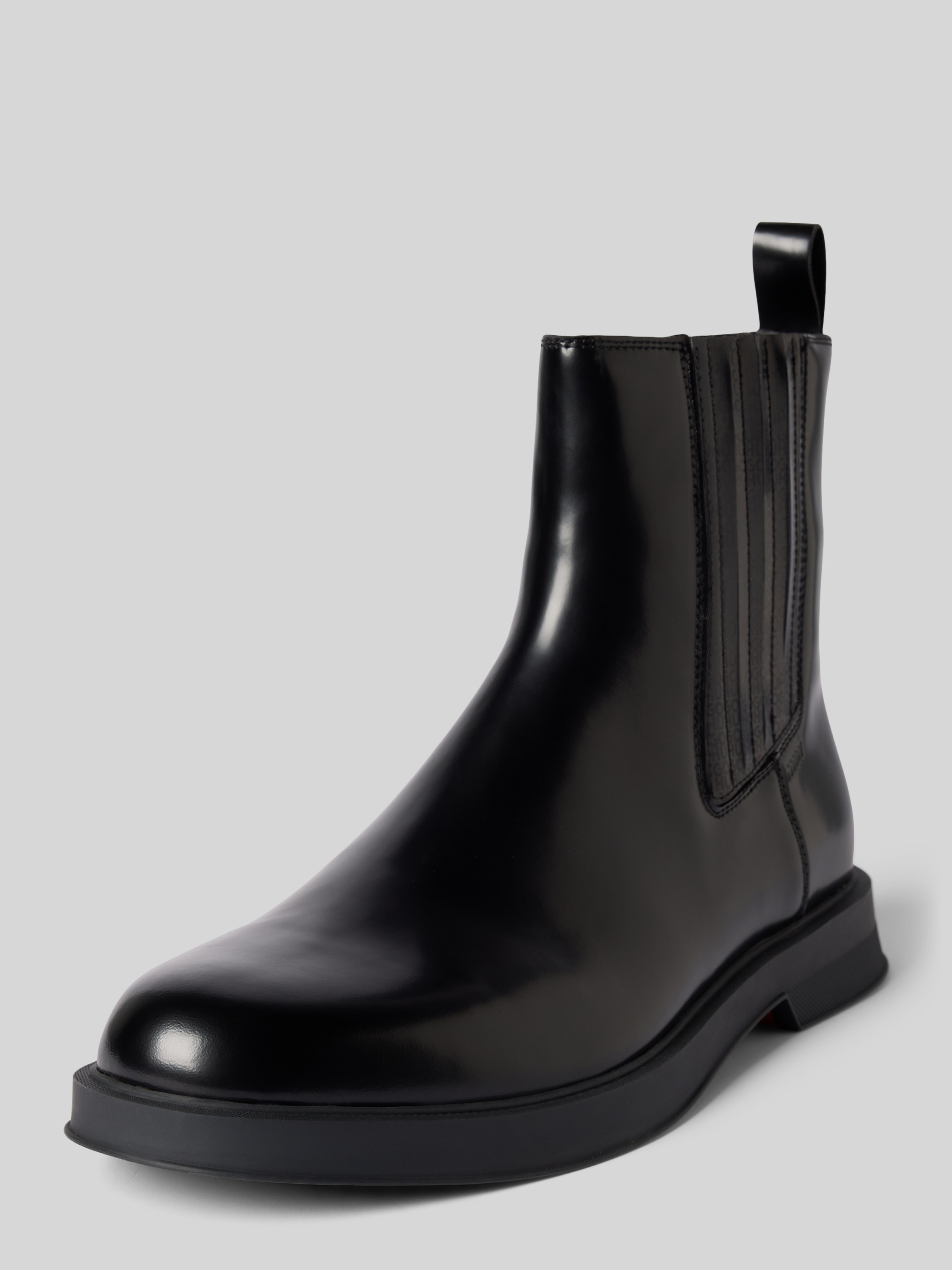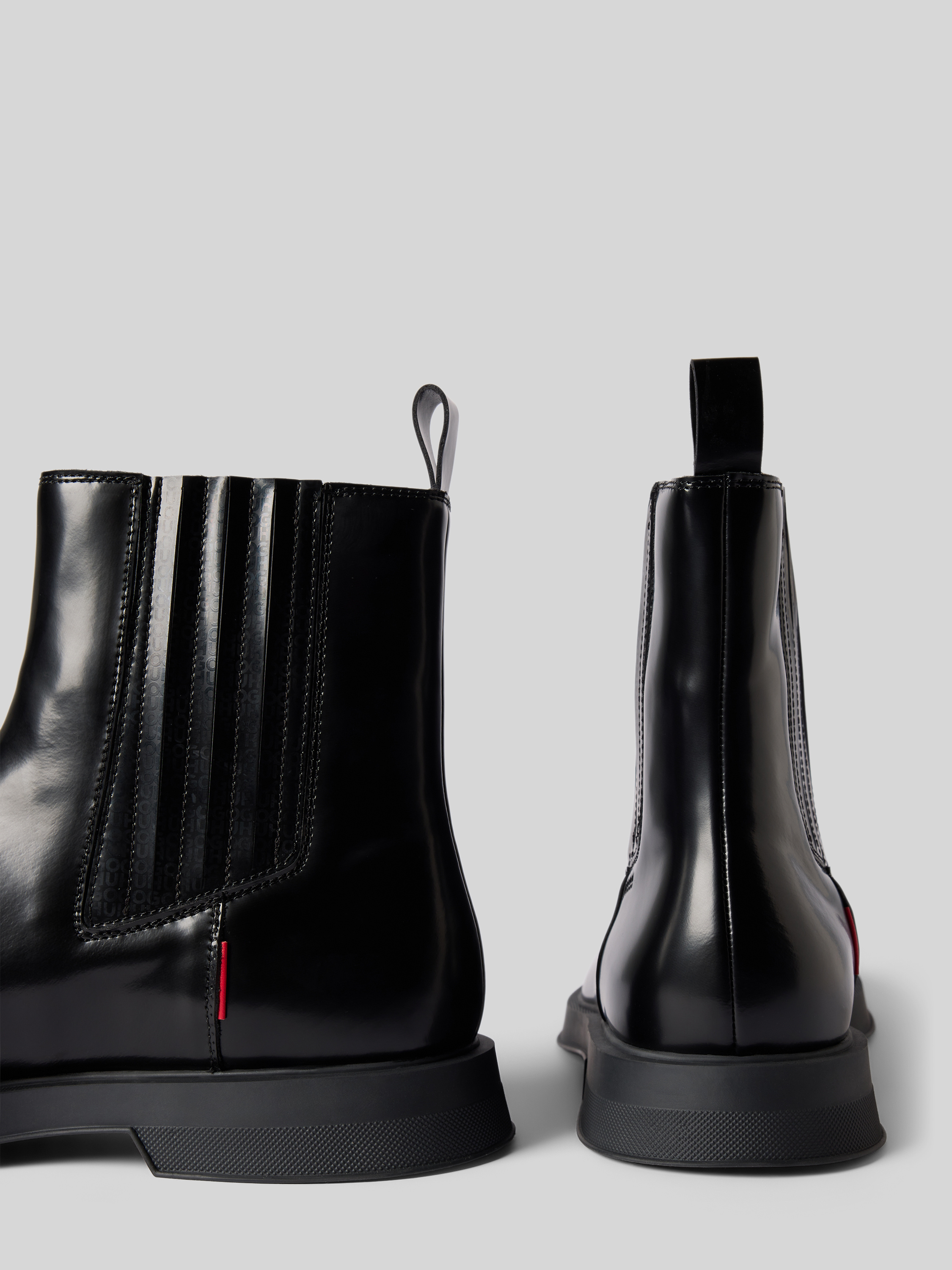 Der Herrenschuh Stiefel 'Lenner' von HUGO setzt auf hochwertiges, glänzendes Leder und eine abgerundete Form. Durch den Blockabsatz und die strukturierte Sohle entsteht ein angenehmes Tragegefühl, während der elastische Einsatz das Anziehen unkompliziert gestaltet. So eignet sich das Modell vielseitig für unterschiedliche Gelegenheiten.