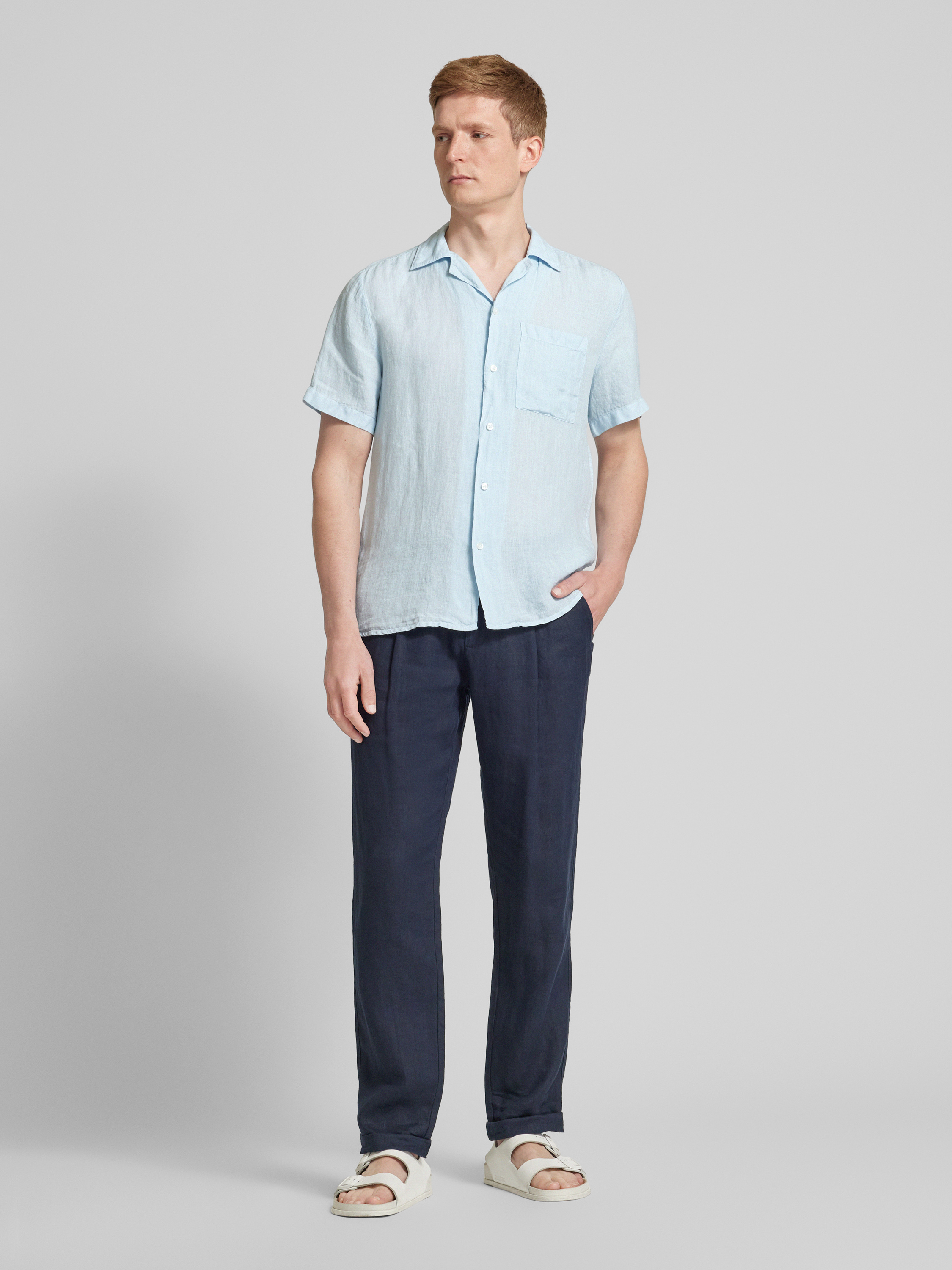 HUGOStraight Fit Freizeithemd aus Leinen Modell 'Ellino' in hellblau
