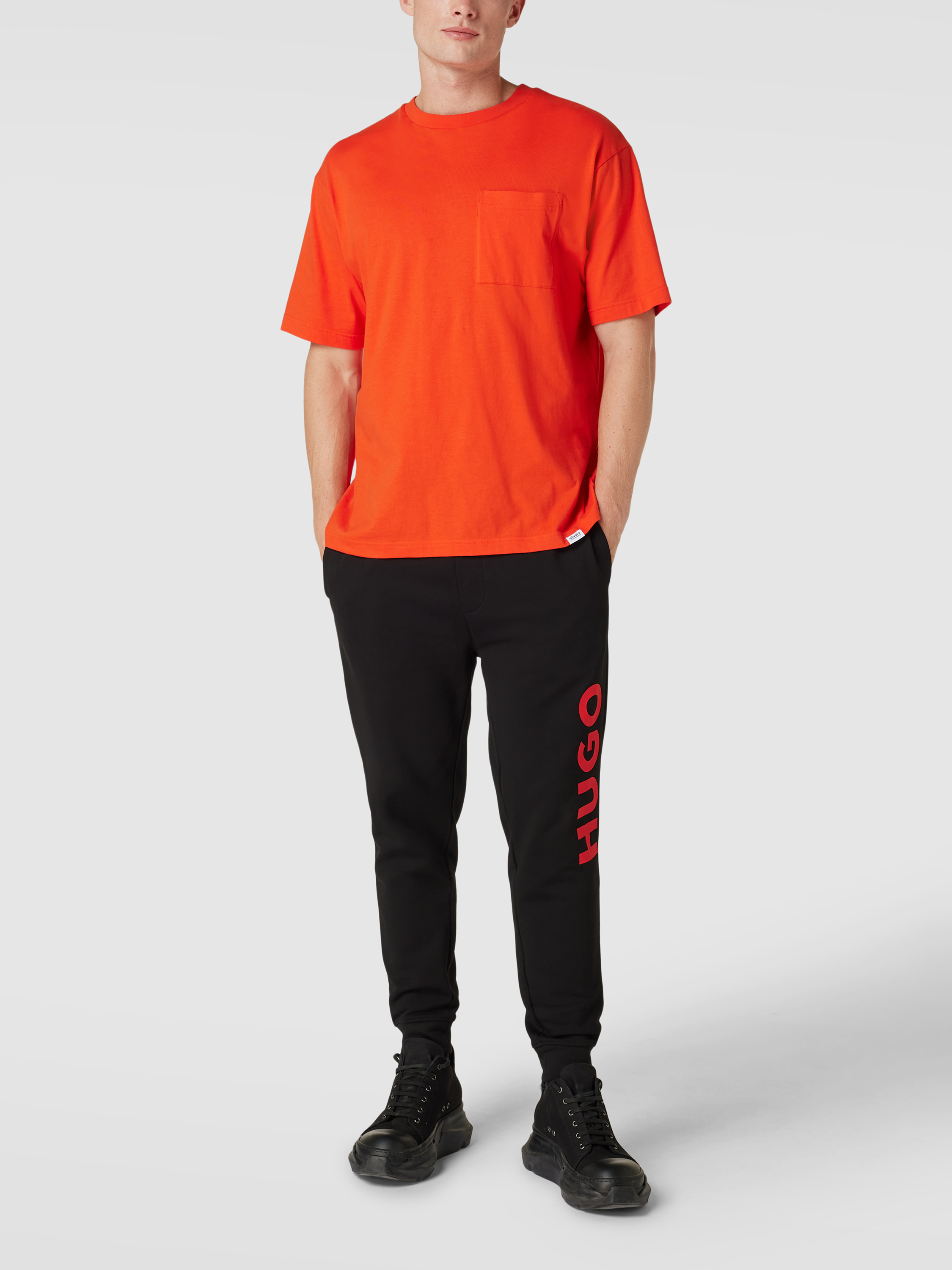 Die Sweatpants 'Dutschi' von HUGO punkten mit ihrer reinen Baumwolle, die für ein angenehmes Tragegefühl sorgt. Der gerade Schnitt und der elastische Bund mit Tunnelzug bieten eine komfortable Passform. Seitliche Eingrifftaschen und ein dezenter Label-Print runden das Design ab.