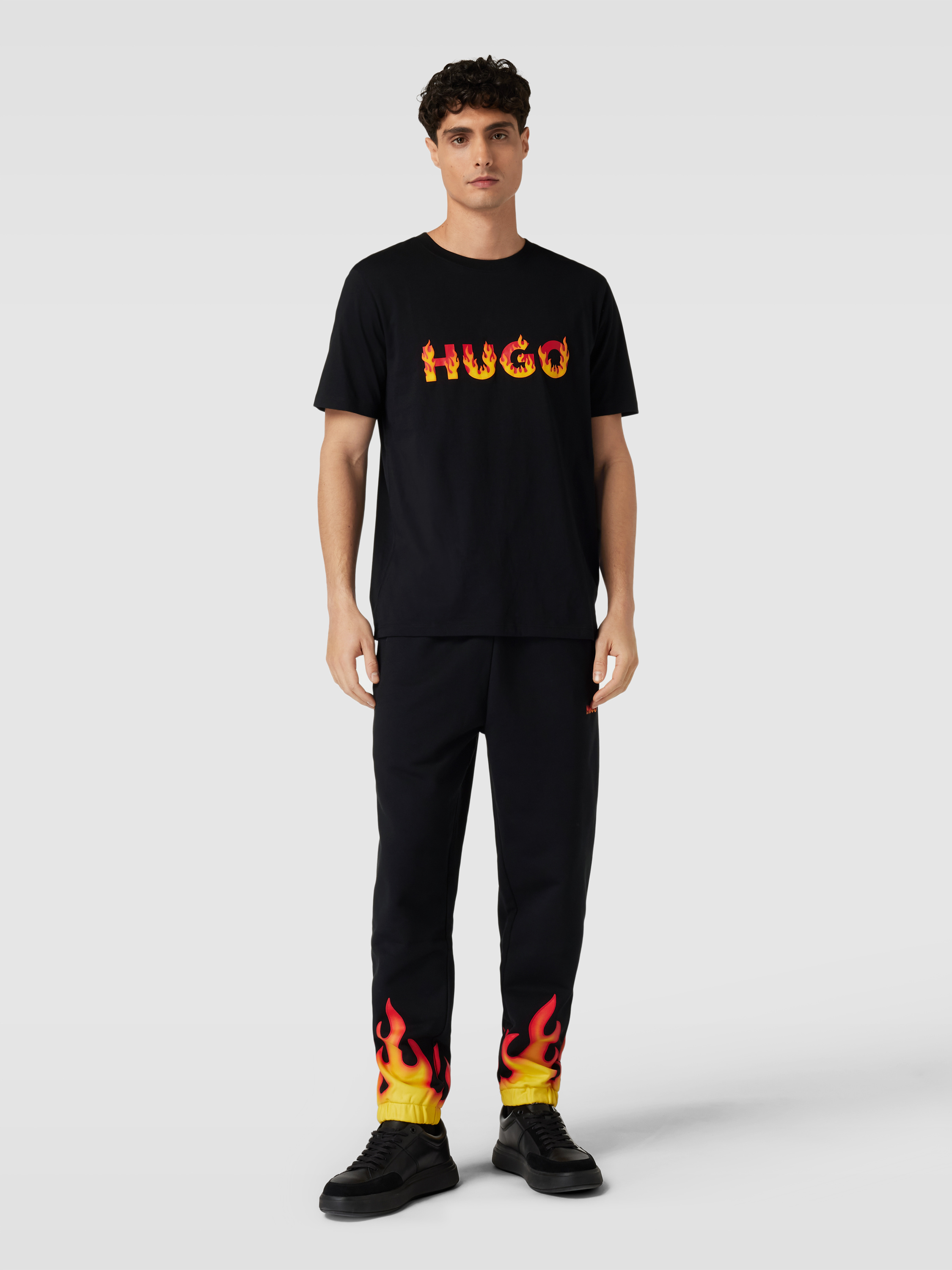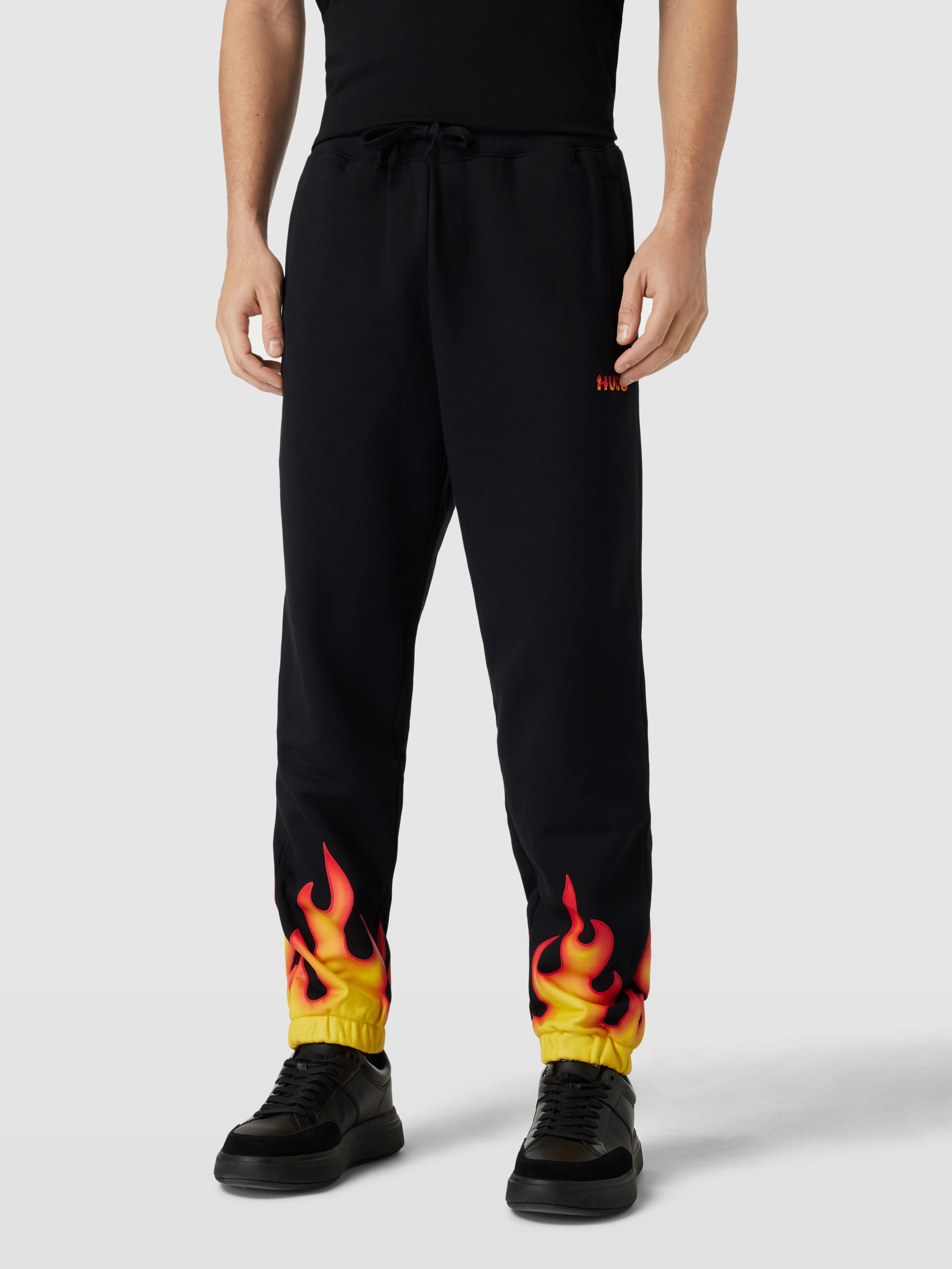 Die Sweatpants von HUGO, Modell 'Doblo', zeichnen sich durch ihren lockeren Schnitt und die Verwendung von reiner Baumwolle aus, was für ein angenehmes Tragegefühl sorgt. Das unifarbene Design wird durch einen dezenten Motiv-Print akzentuiert, während der elastische Bund mit Kordelzug und die praktischen Eingrifftaschen funktionale Details bieten. Ideal für entspannte Tage, an denen Komfort und Stil gleichermaßen wichtig sind.