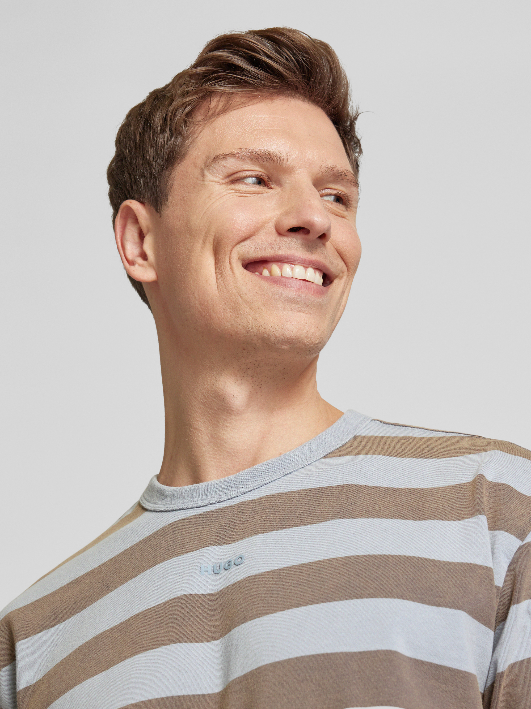 Das T-Shirt Modell 'Dockoe' von HUGO, gefertigt aus reiner Baumwolle, eignet sich durch seinen Regular Fit ideal für den täglichen Komfort. Der gerippte Rundhalsausschnitt verleiht dem Oberteil eine dezente Struktur, während der subtile Label-Print einen modernen Akzent setzt.