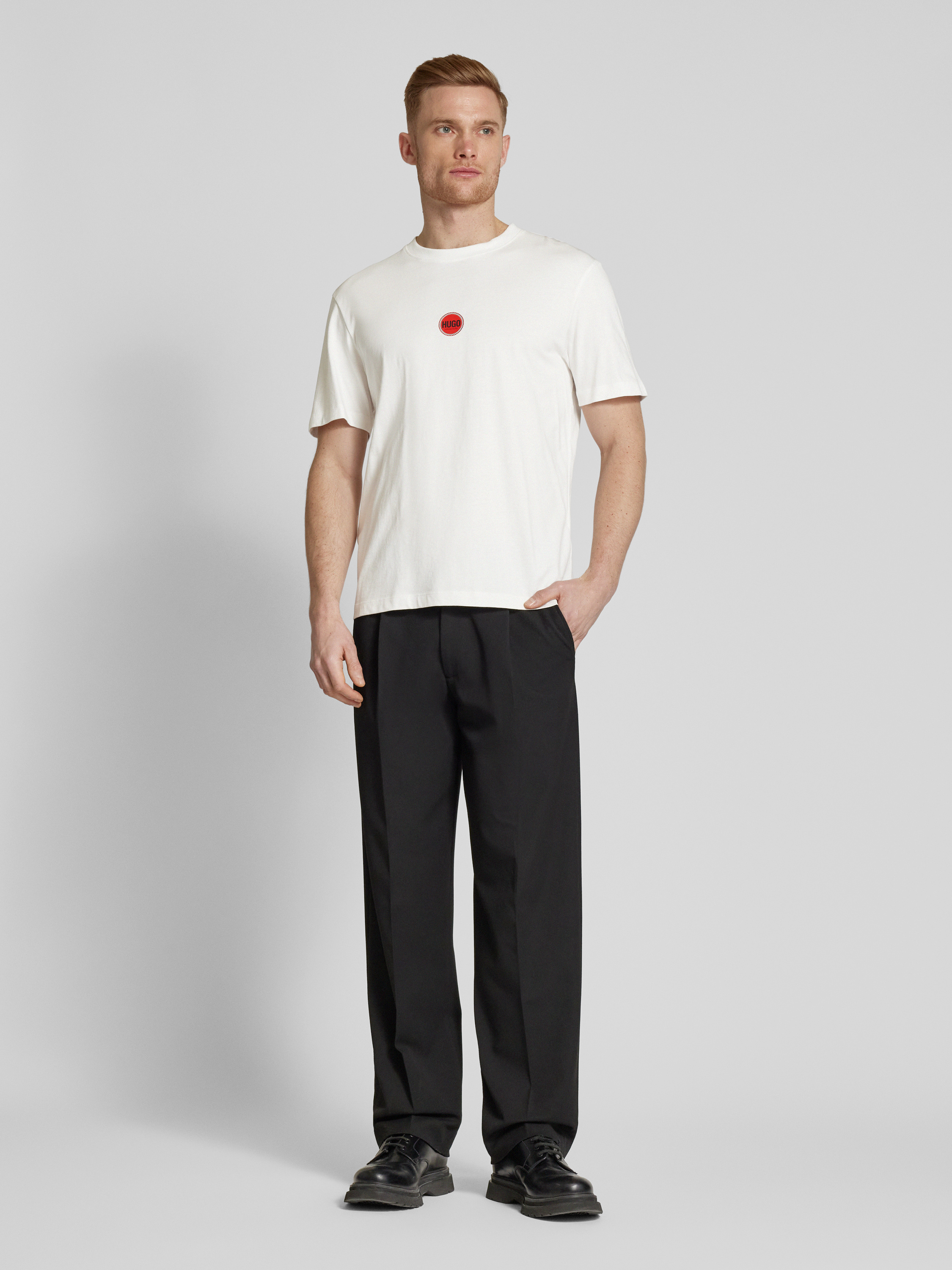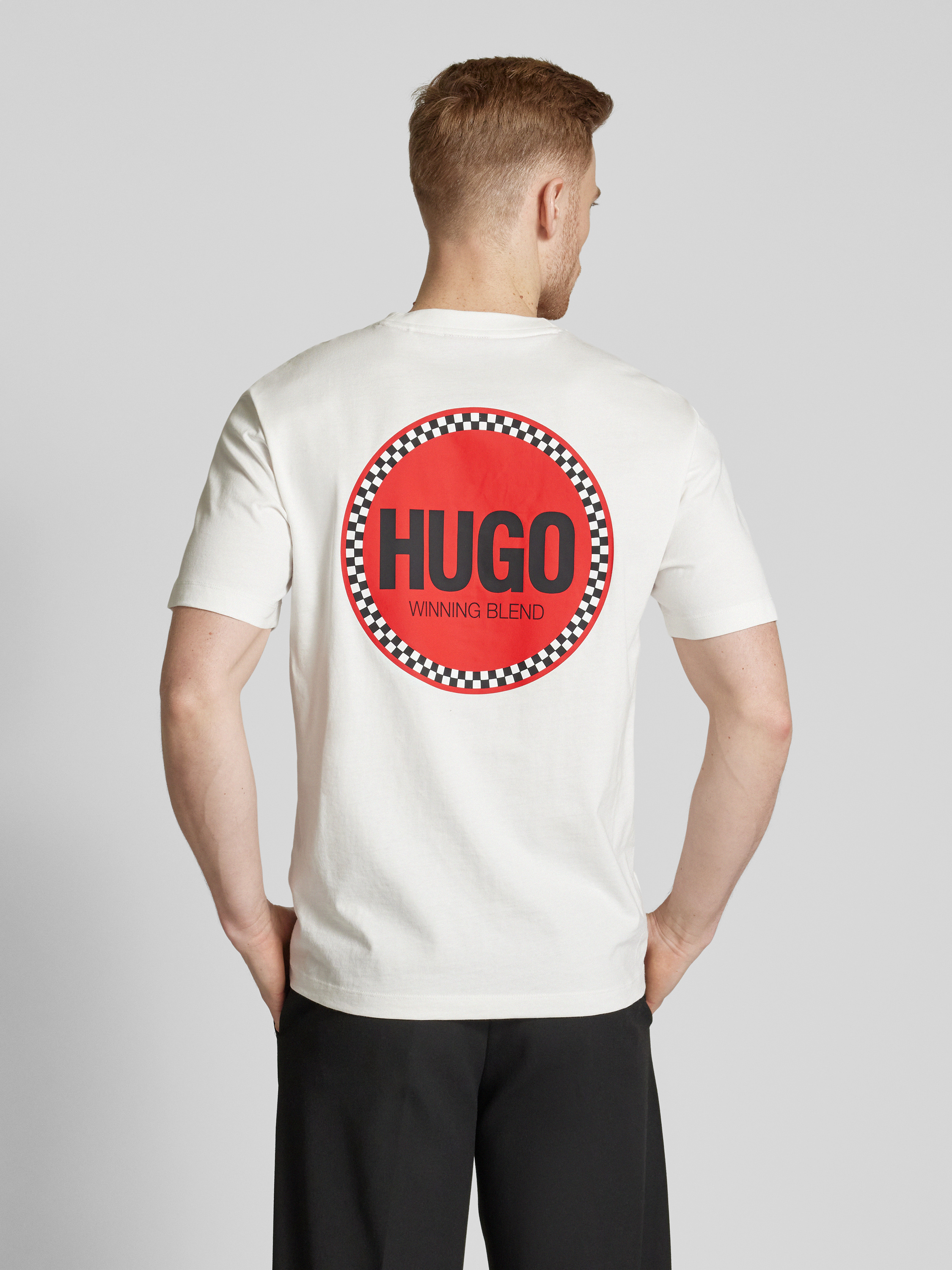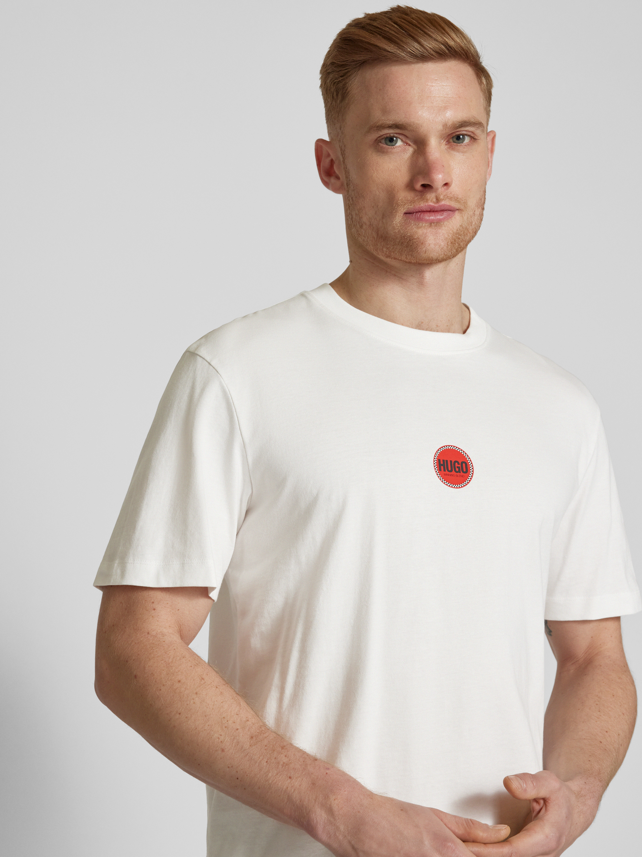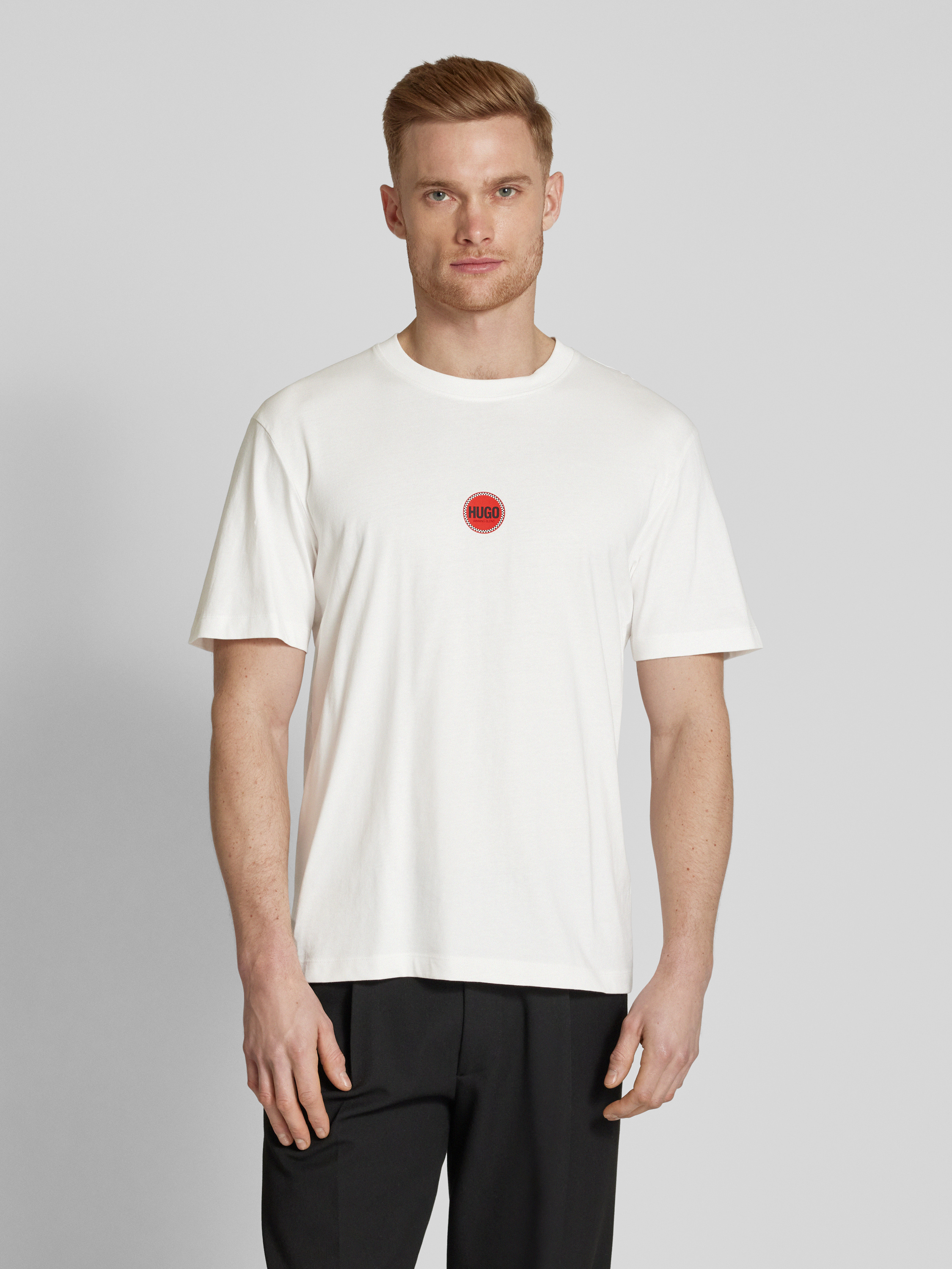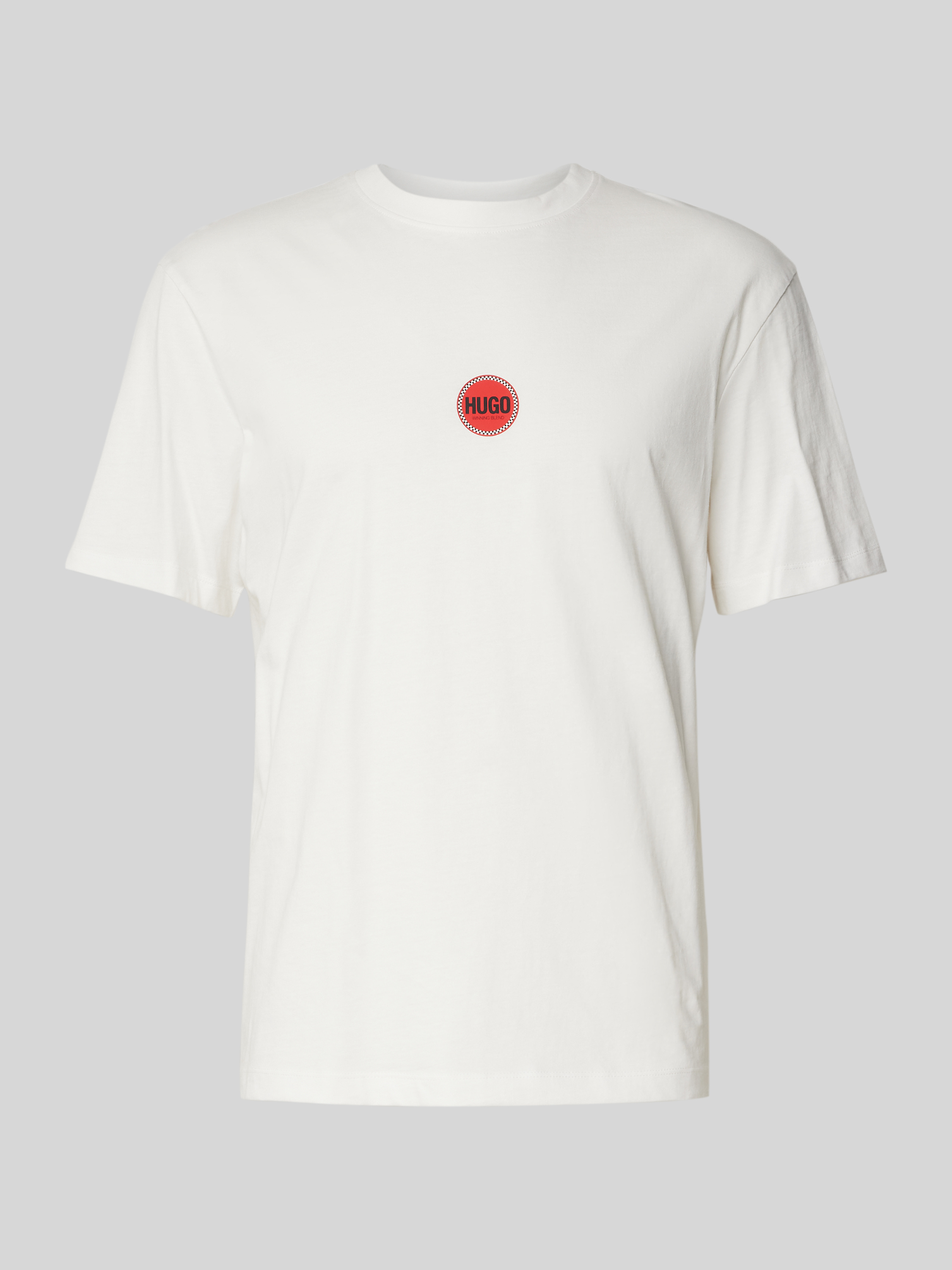 Das Herren T-Shirt von HUGO, Modell 'Derdcho', vereint mit seinem gerippten Rundhalsausschnitt und dem markanten Label-Print einen lässigen Stil. Gefertigt aus reiner Baumwolle, sorgt es für ein angenehmes Tragegefühl und eignet sich ideal für entspannte Freizeitaktivitäten. Der Regular Fit bietet dabei ausreichend Bewegungsfreiheit.
