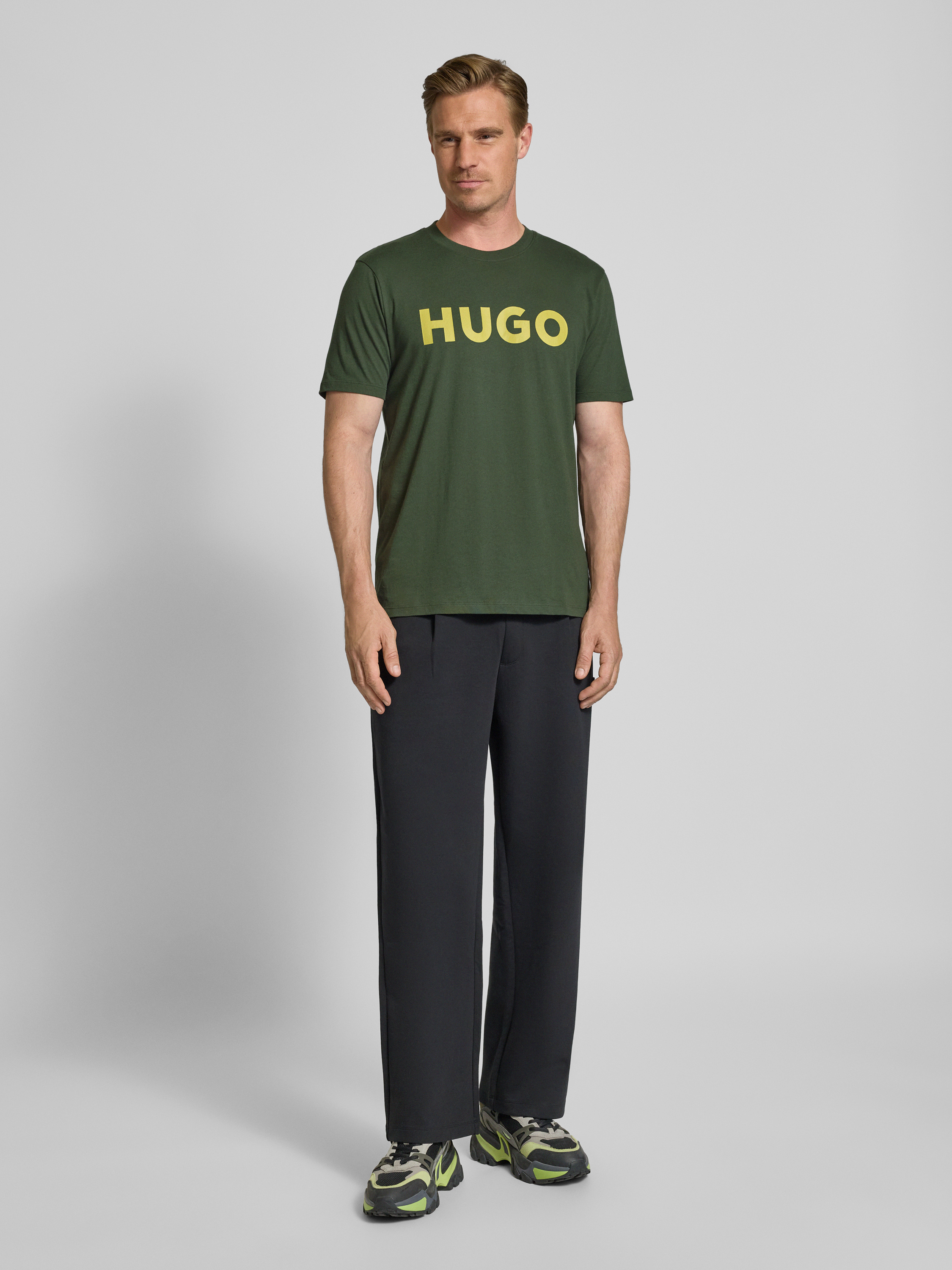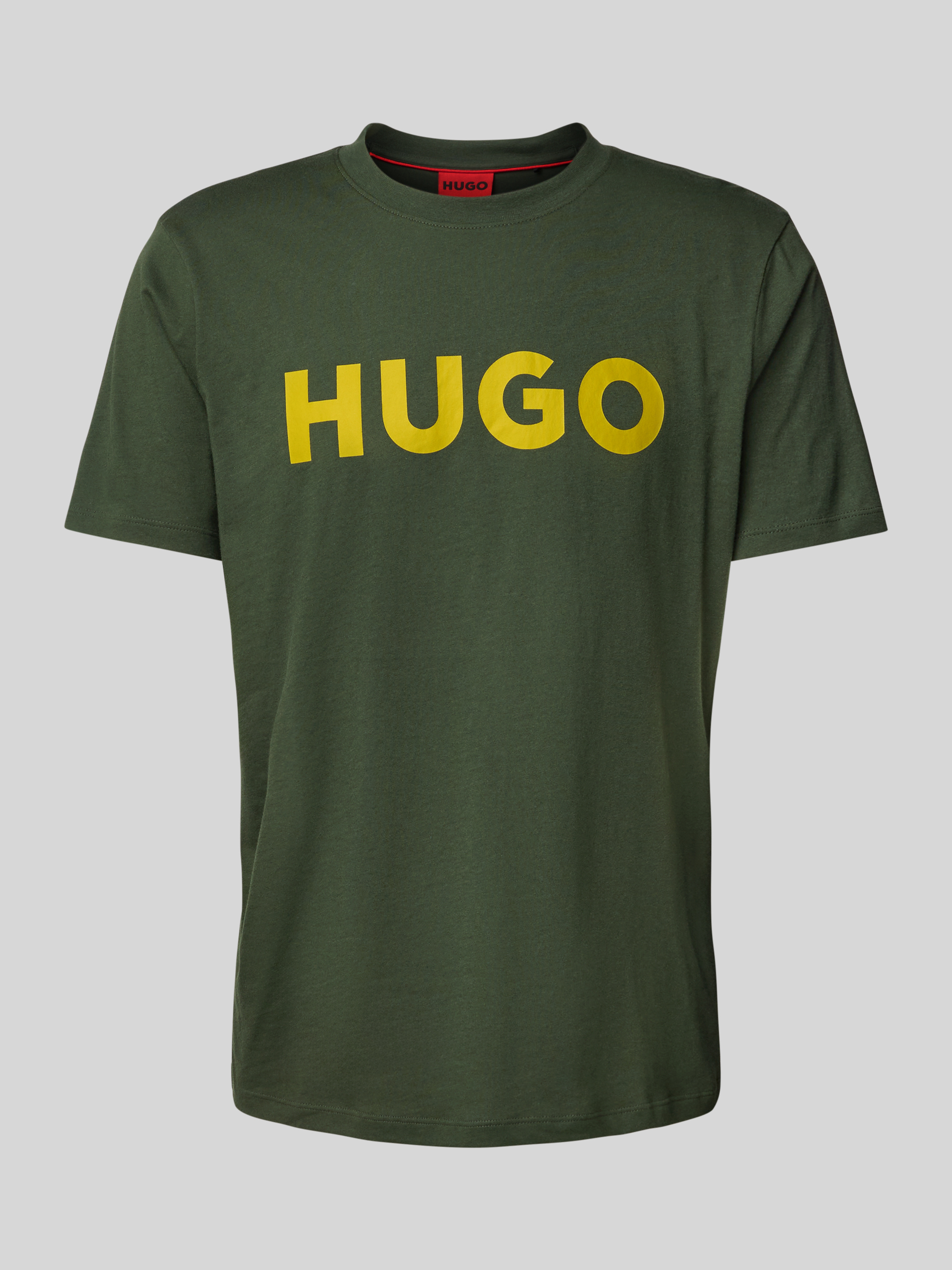 Das T-Shirt 'DULIVIO' von HUGO, gefertigt aus reiner Baumwolle, bietet mit seinem Regular Fit eine angenehme Passform. Der klassische Rundhalsausschnitt ergänzt den lässigen Stil, während der markante Label-Print auf der Brust dem Look einen modernen Akzent verleiht.