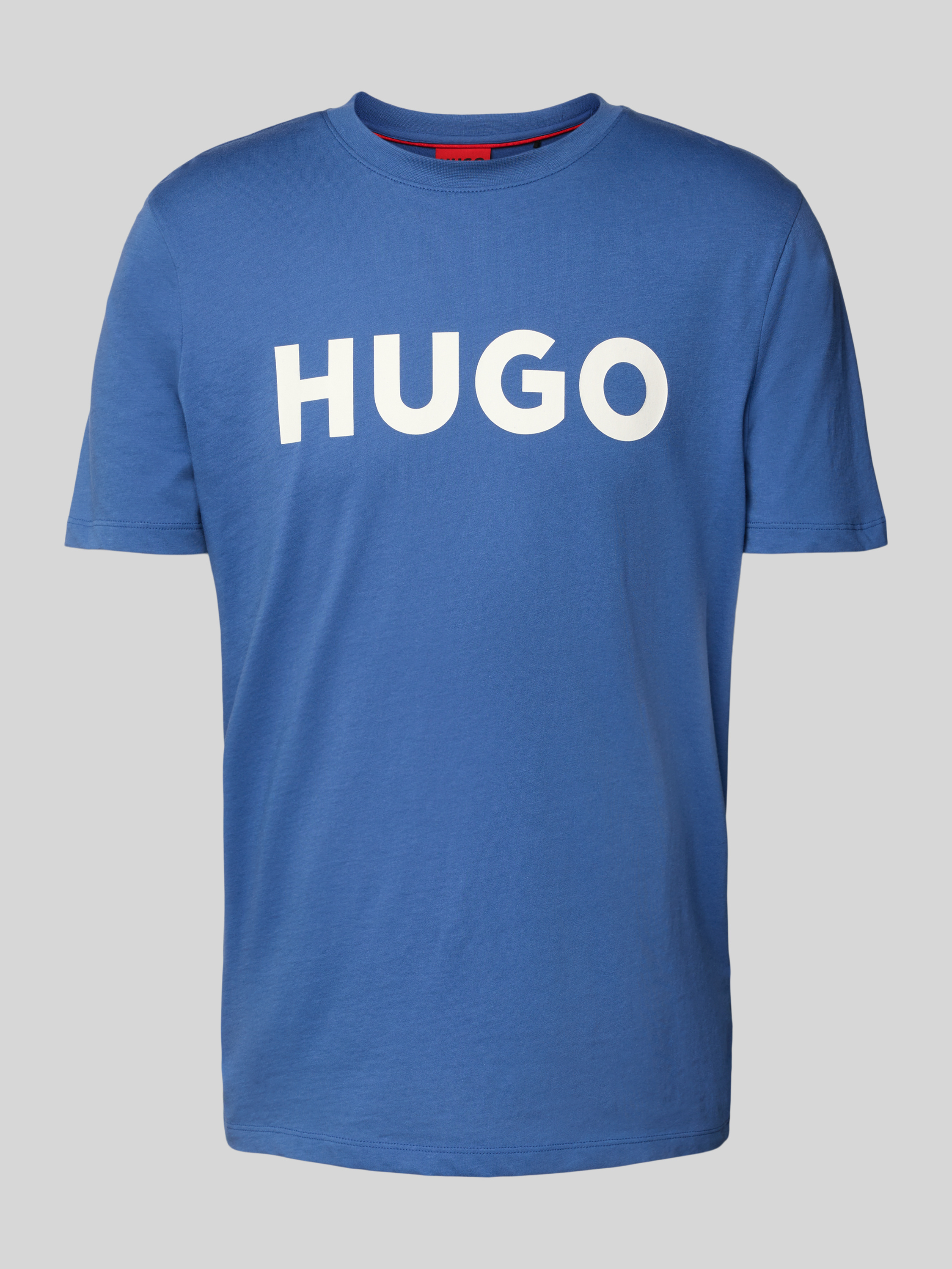 Das T-Shirt mit Label-Print von HUGO, Modell 'DULIVIO', aus reiner Baumwolle bietet einen angenehmen Tragekomfort. Mit seinem Regular Fit und dem gerippten Rundhalsausschnitt passt es sich mühelos verschiedenen Outfits an. Der dezente Label-Print verleiht jedem Look eine moderne Note.