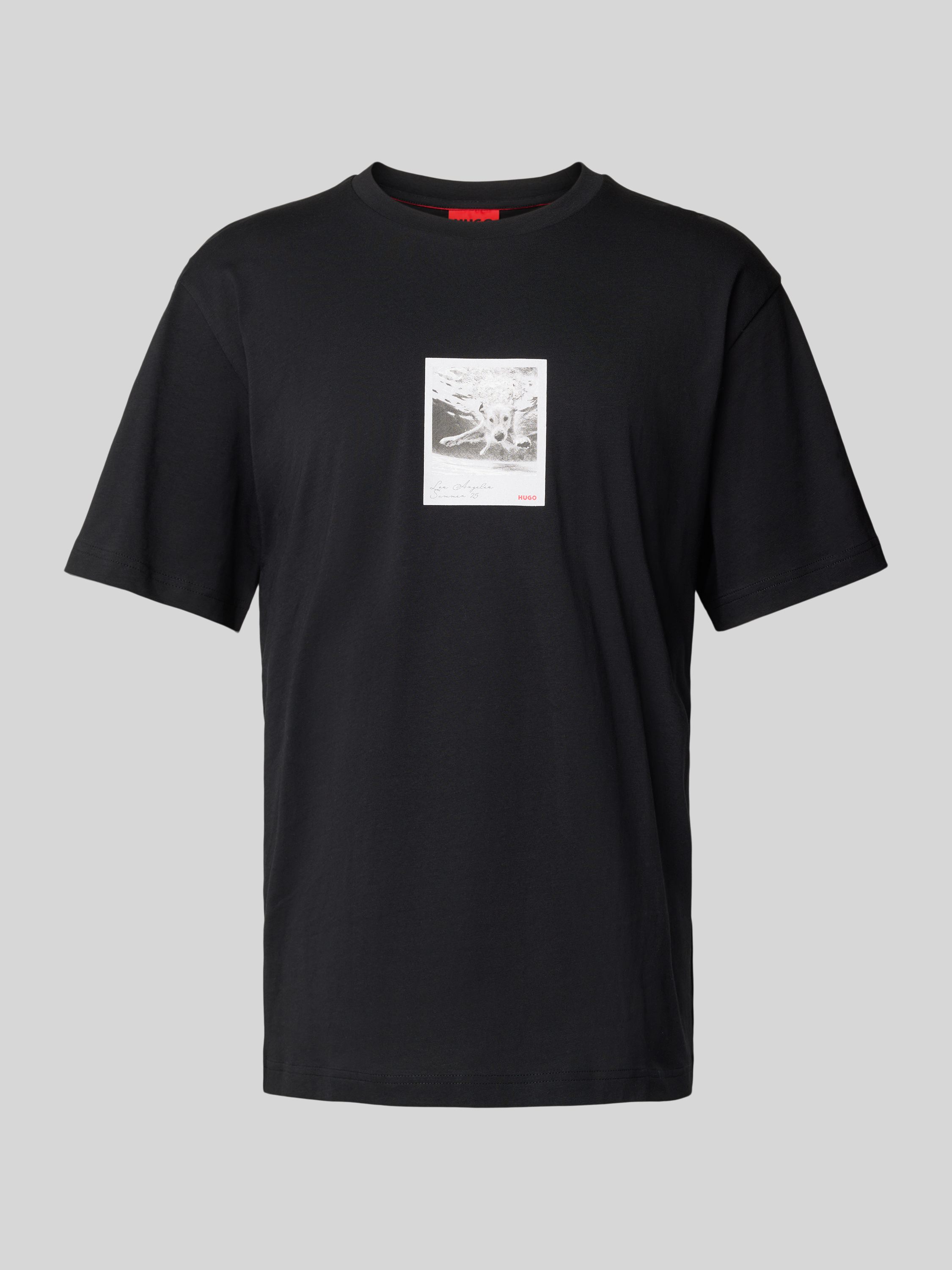 Das Herren T-Shirt 'Darthy' von HUGO kombiniert reine Baumwolle mit einem lässigen Regular Fit, was für angenehmen Tragekomfort sorgt. Der gerippte Rundhalsausschnitt und der auffällige Motiv-Print verleihen dem T-Shirt einen modernen und dennoch zeitlosen Look, der vielseitig einsetzbar ist.