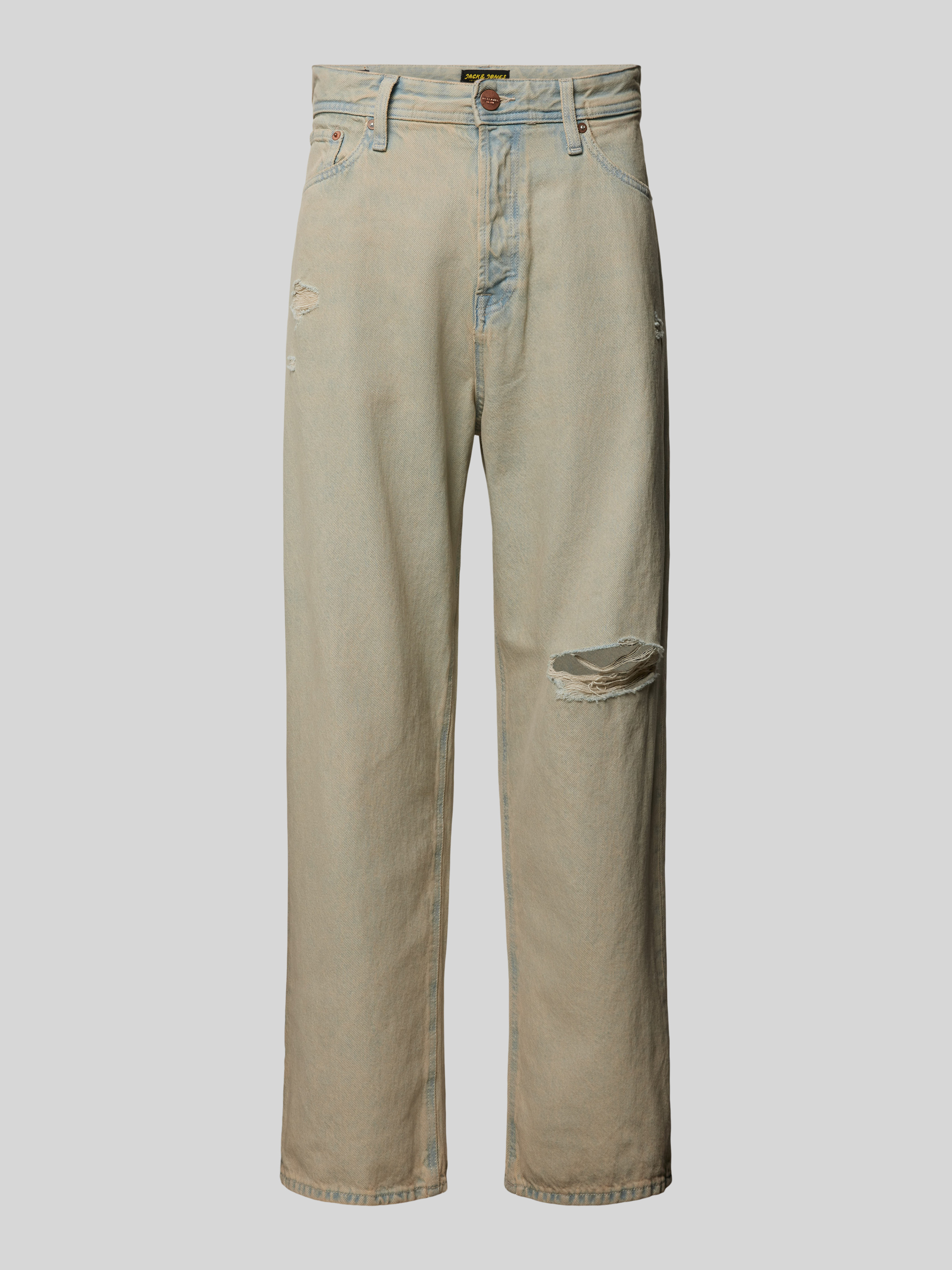 Die Baggy Fit Jeans im 5-Pocket-Design von JACK & JONES, Modell 'ALEX', bietet durch ihren lässigen Schnitt und die reine Baumwolle ein angenehmes Tragegefühl. Das unifarbene Design im Used-Look verleiht jedem Outfit eine entspannte Note. Vielseitig kombinierbar, eignet sie sich ideal für den Alltag.