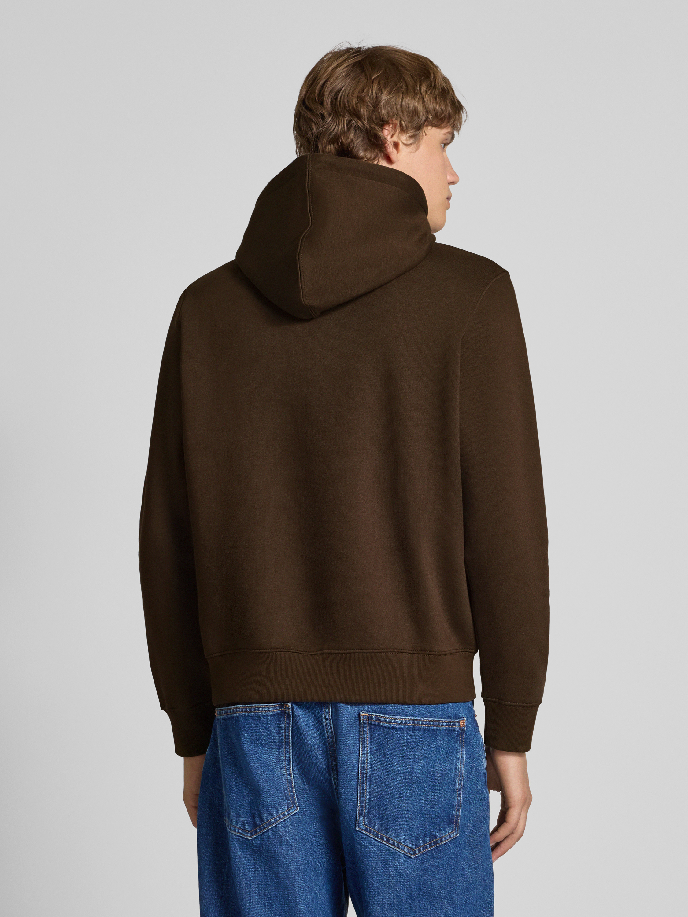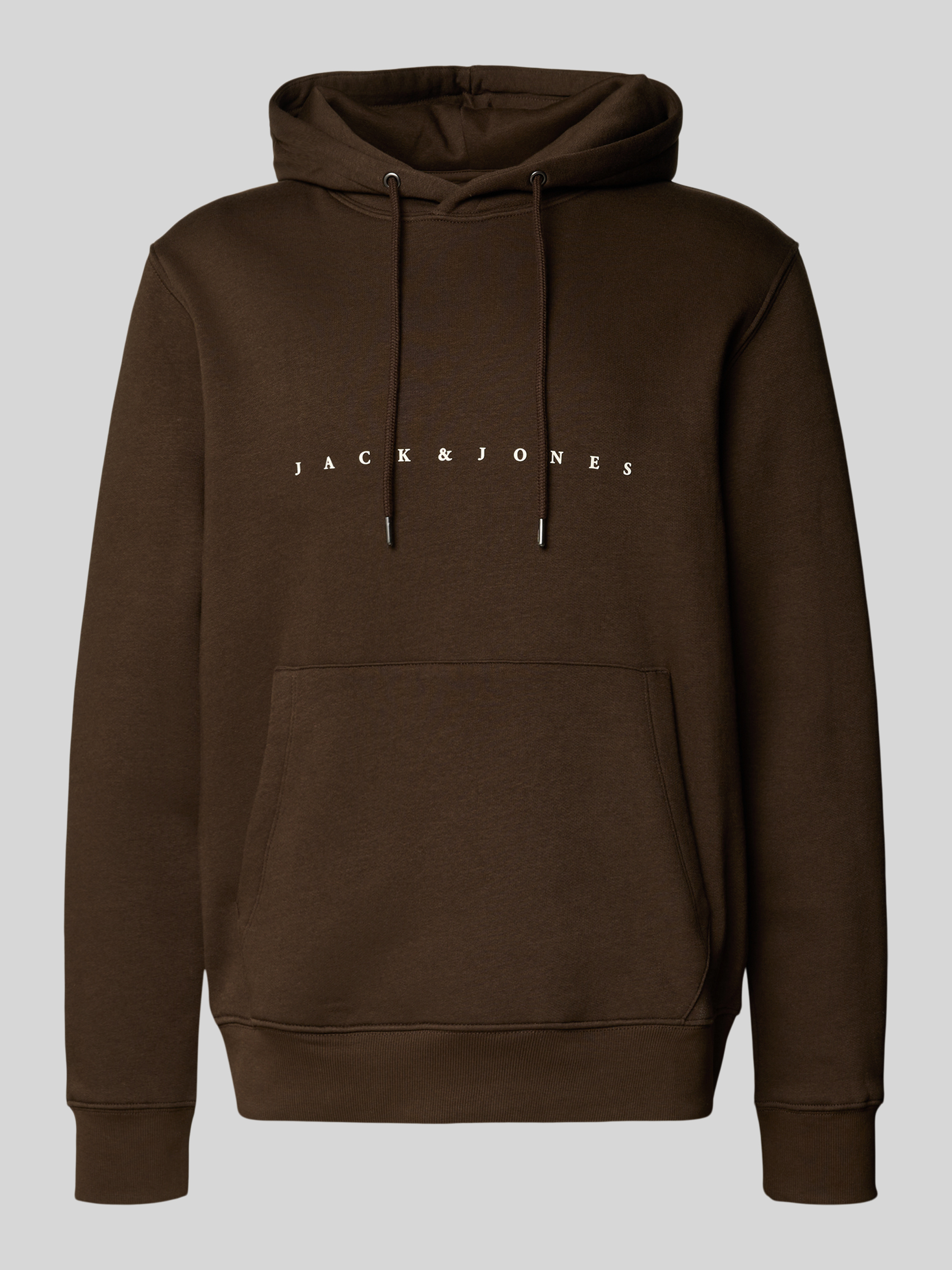 Der Herren Hoodie von Jack & Jones fällt durch seinen lockeren Schnitt angenehm lässig und sorgt mit der Kapuze samt Tunnelzug für zusätzlichen Komfort. Ein Baumwoll-Mix liegt weich auf der Haut, während die Känguru-Tasche praktisch im Alltag unterstützt. Der markante Label-Print rundet das Design ab.