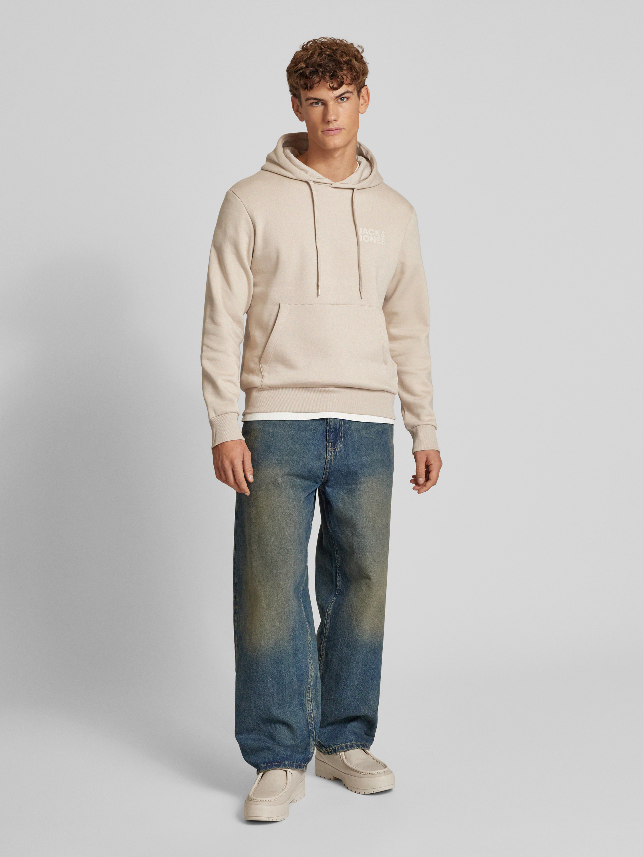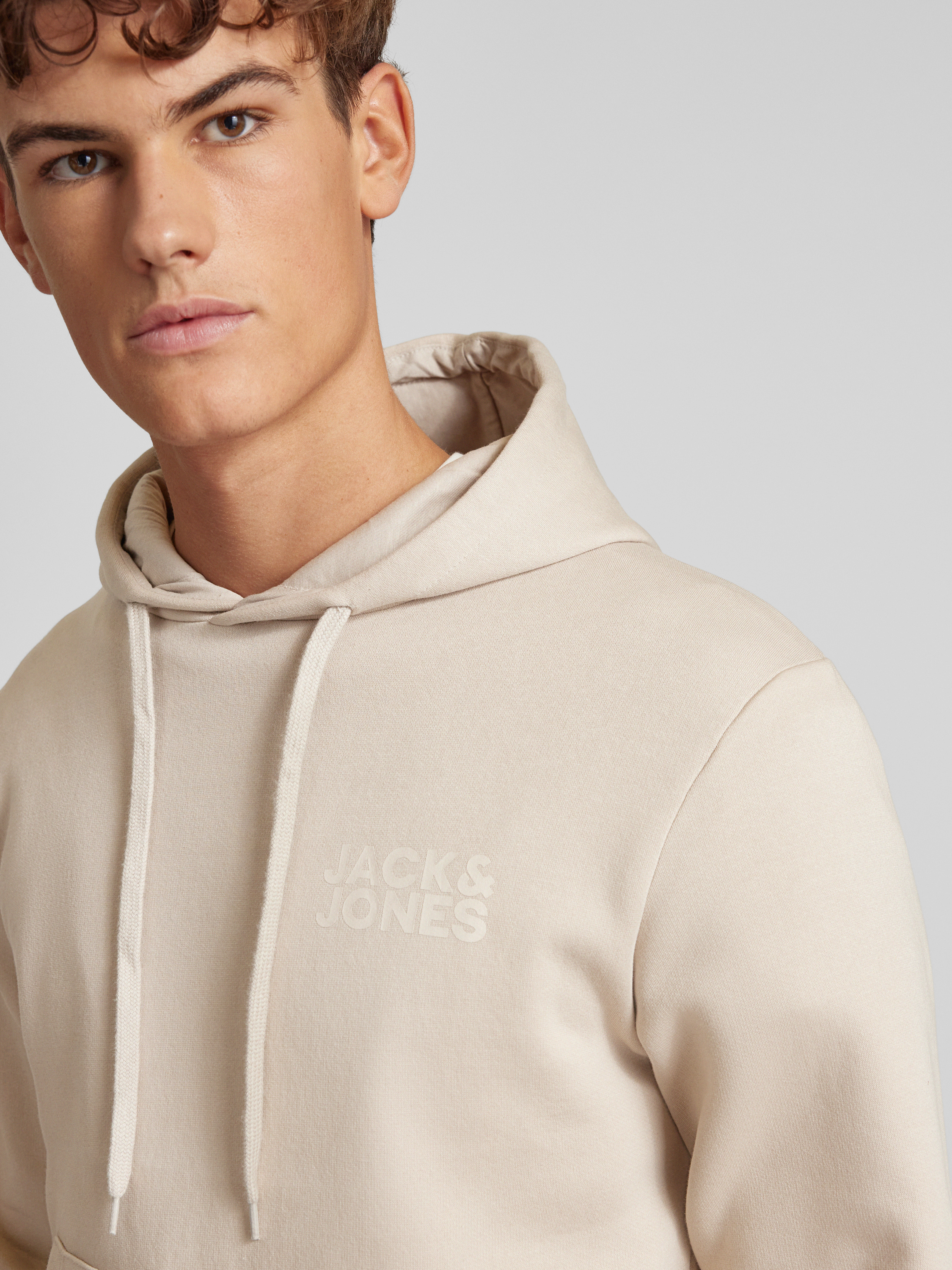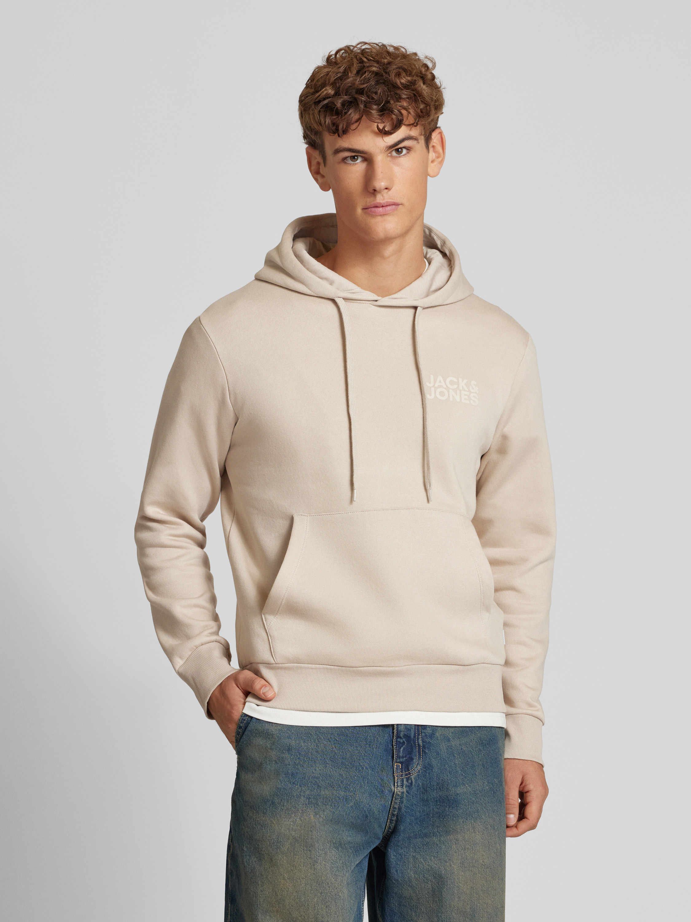 Der Herren Hoodie von JACK & JONES Modell 'ECORP' fällt durch einen geraden Schnitt auf und sorgt mit seiner weichen Baumwoll-Mischung für angenehmen Tragekomfort. Eine geräumige Känguru-Tasche ergänzt den sportlichen Charakter, während der Label-Print einen modernen Akzent setzt. Dank Kapuze und elastischer Abschlüsse eignet sich das Oberteil für entspannte Tage.