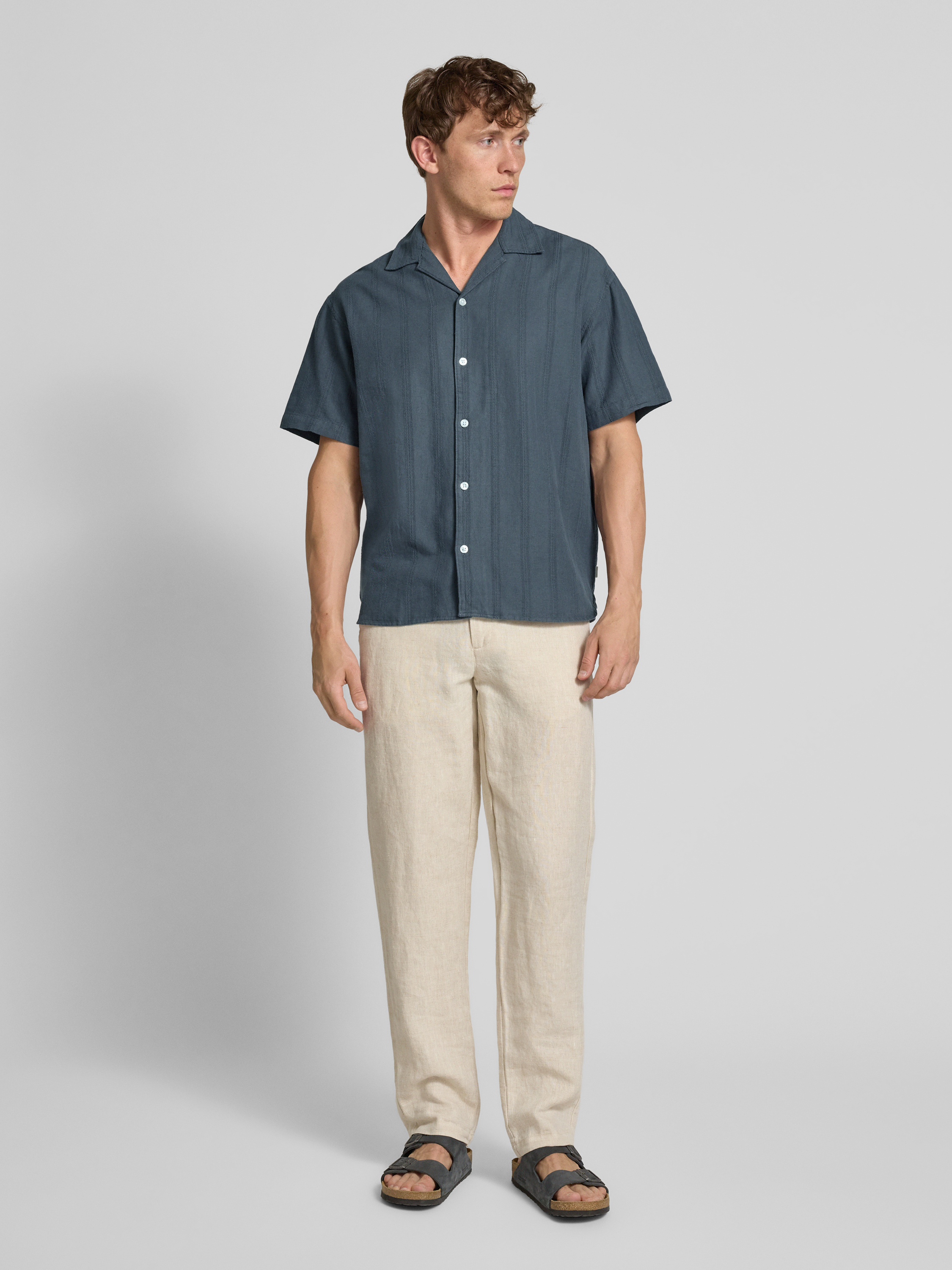 Das Herrenhemd von Jack & Jones Premium im Regular Fit verbindet einen Baumwoll-Mix mit Leinen-Anteil, wodurch es sich angenehm leicht auf der Haut anfühlt. Der Resortkragen und die kurzen Ärmel unterstreichen eine entspannte Passform, die sich vielseitig kombinieren lässt. Modell 'MONTANA' eignet sich besonders für warme Tage.